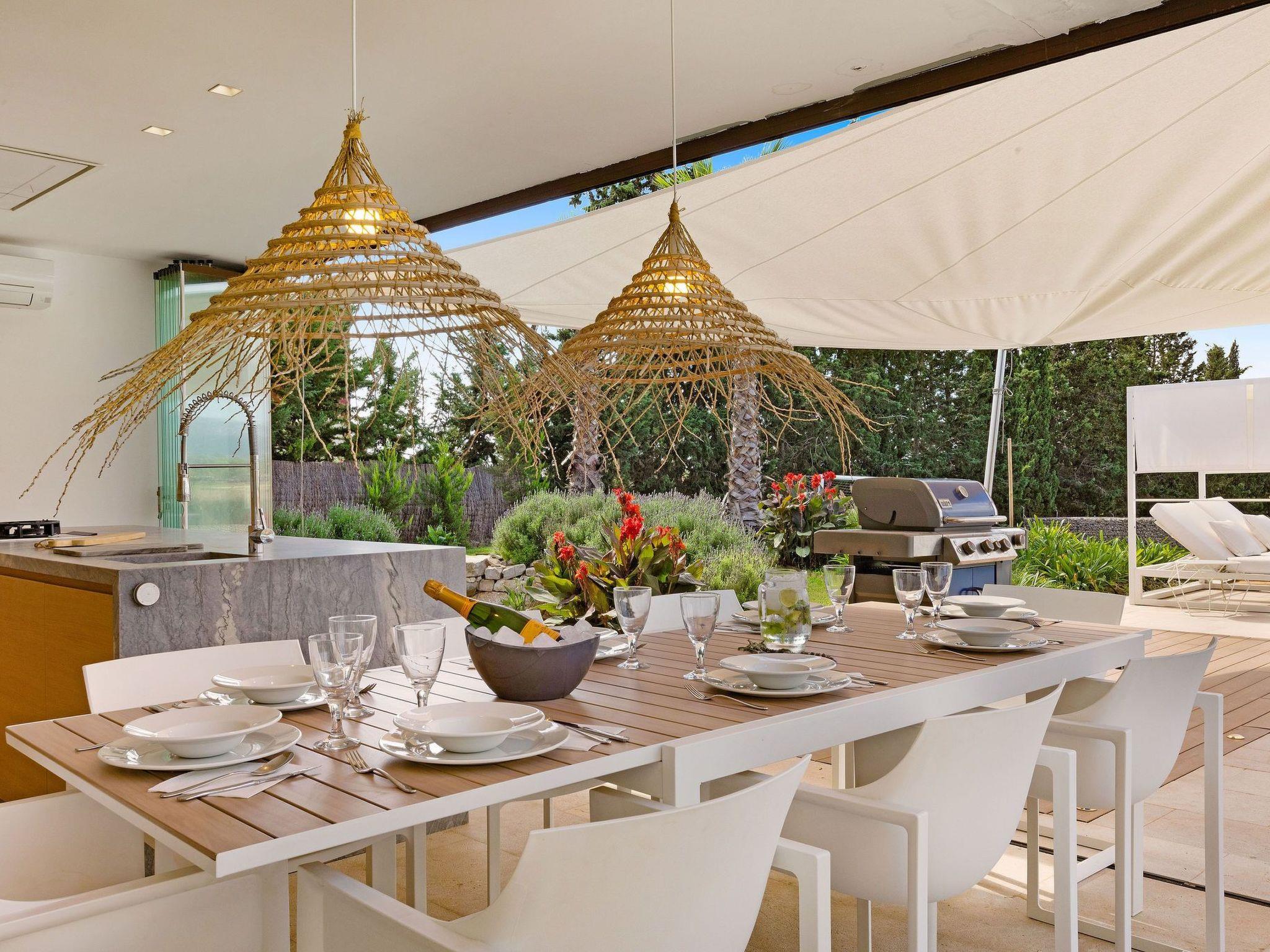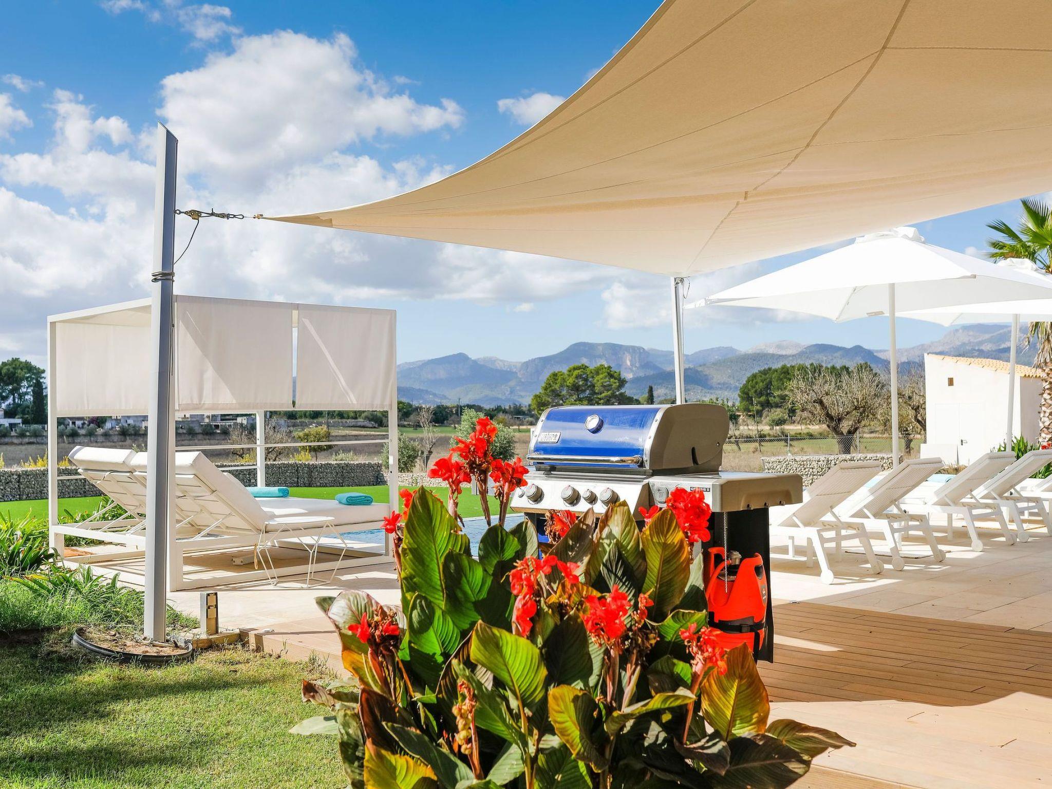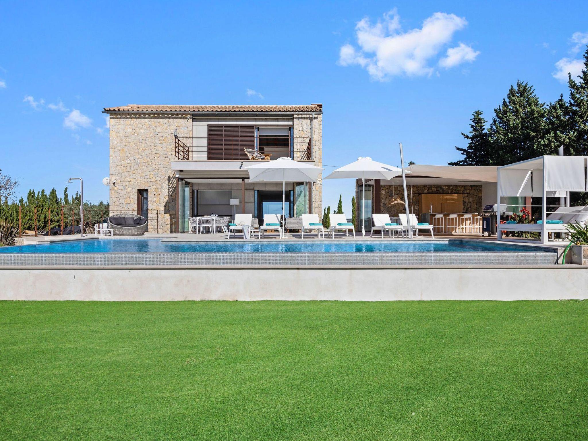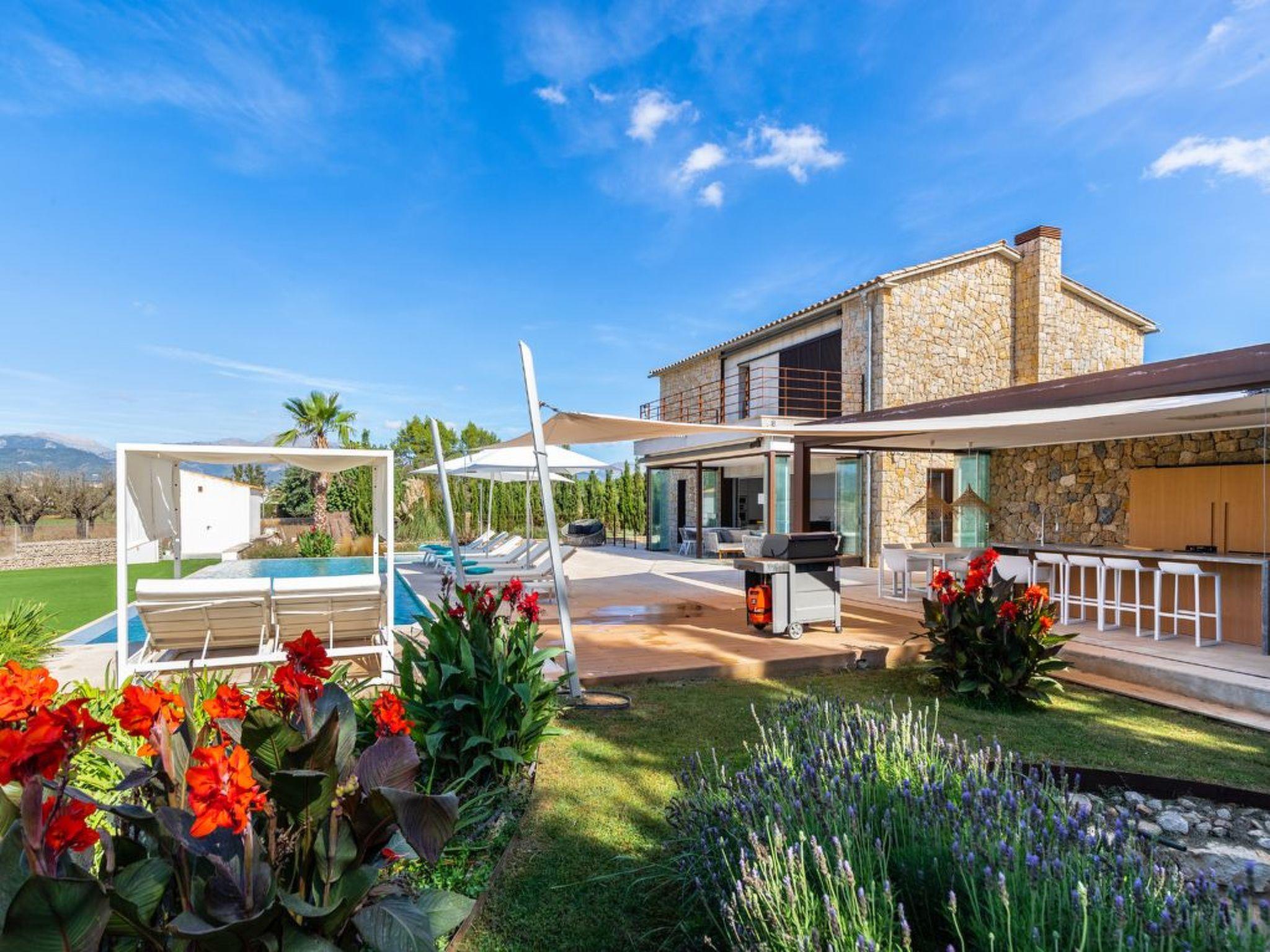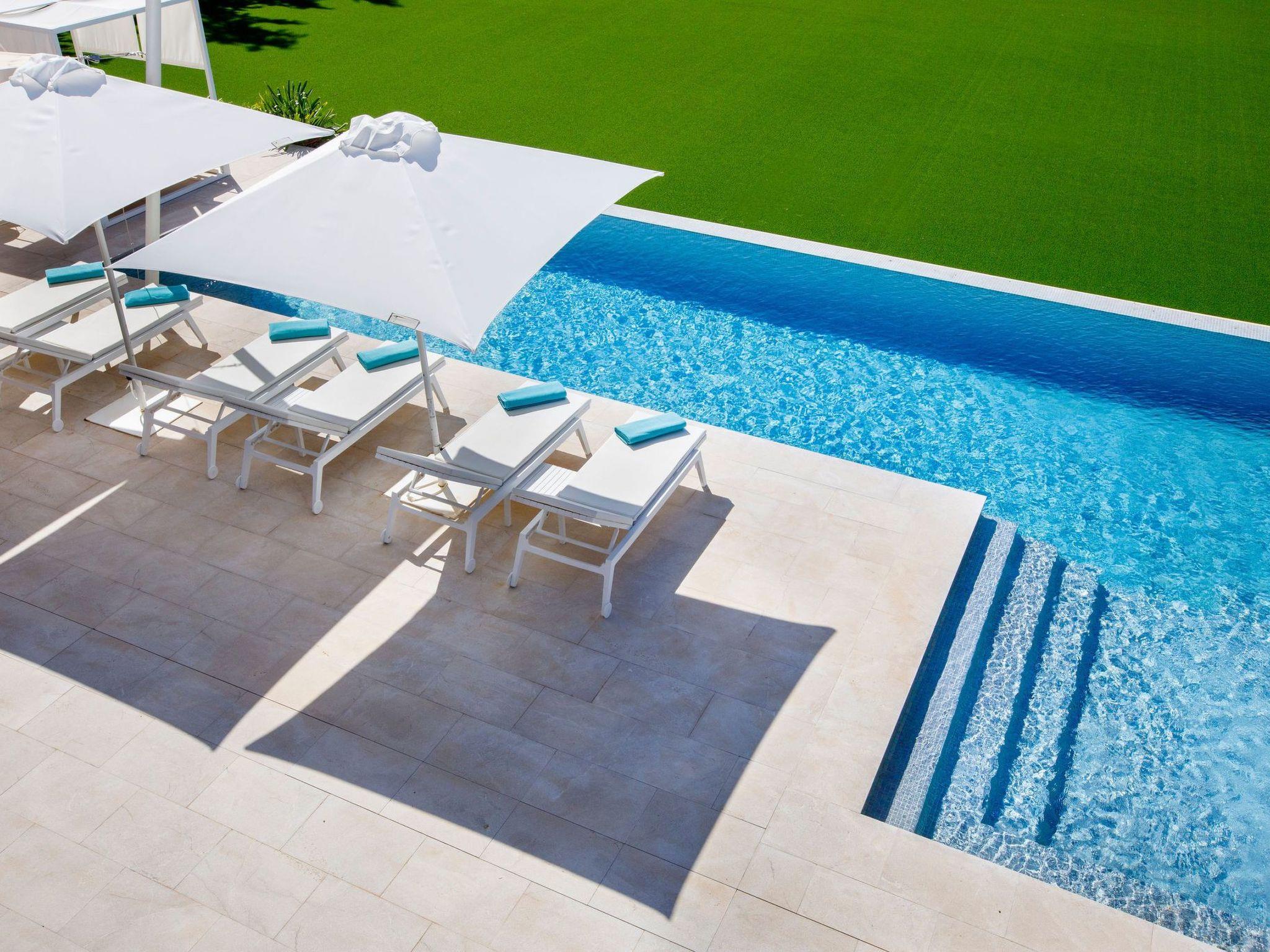 Im Außenbereich öffnet sich das Haus zu einer Welt der Freizeit und Entspannung. Die geräumige Terrasse lädt mit ihren luxuriösen Sonnenliegen, dem Chill-out-Bereich und dem Essbereich im Freien zum Genießen von Sonnentagen ein. Die Außenküche, die durch eine Bar und eine Grillbar ergänzt wird, verspricht unvergessliche Abende unter dem mallorquinischen Himmel. Der beheizte Swimmingpool und der Kinderfußballplatz sorgen für weitere Unterhaltung und Spaß während Ihres Aufenthalts.