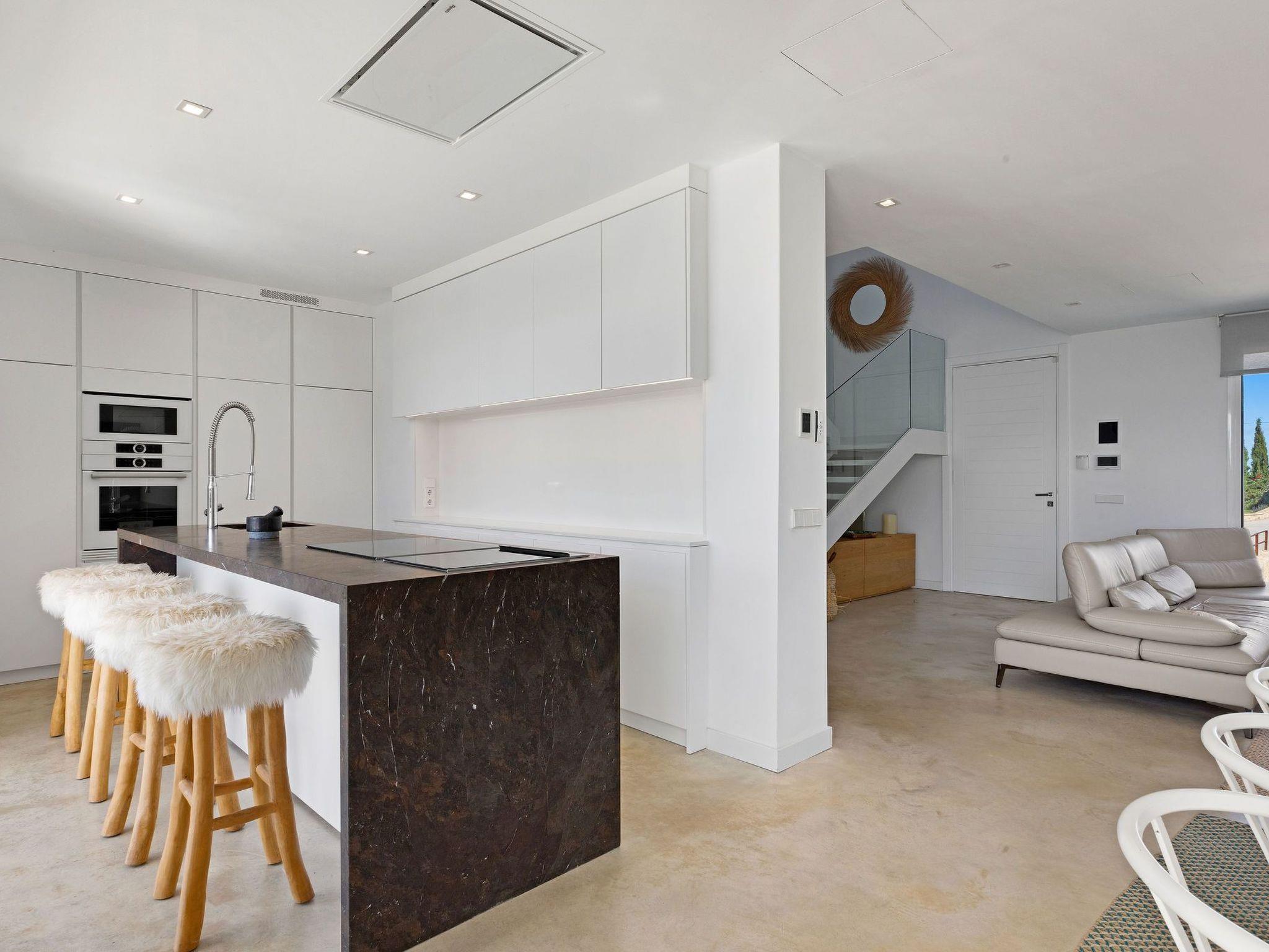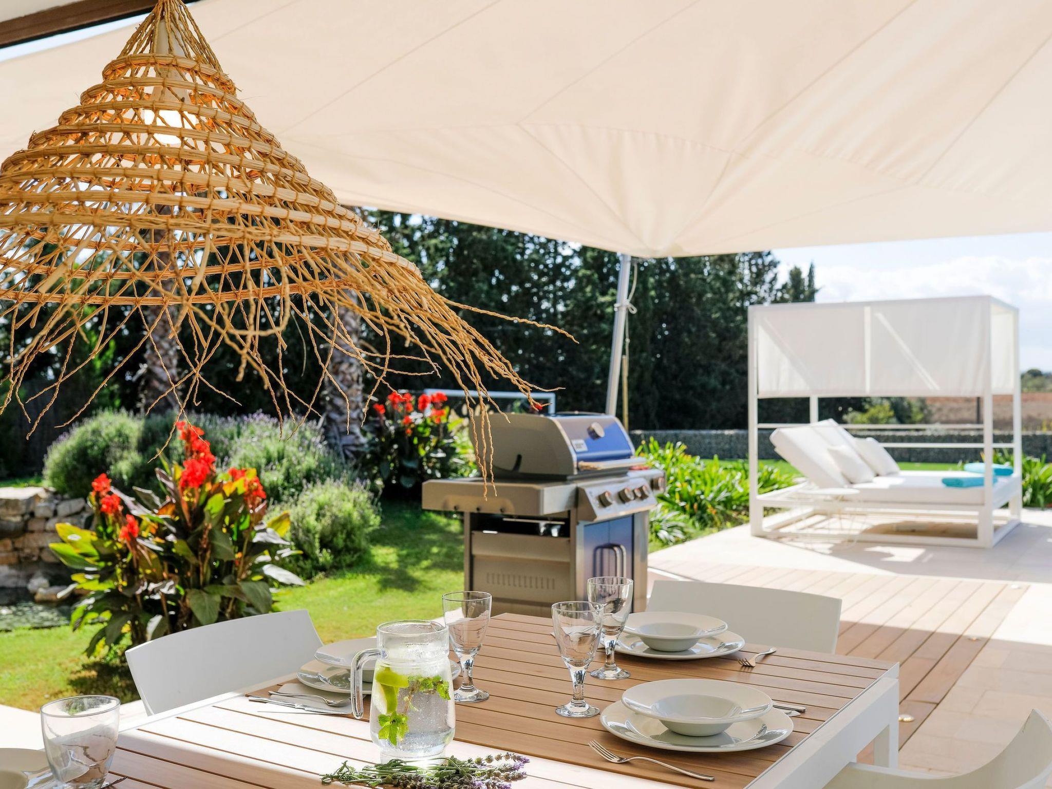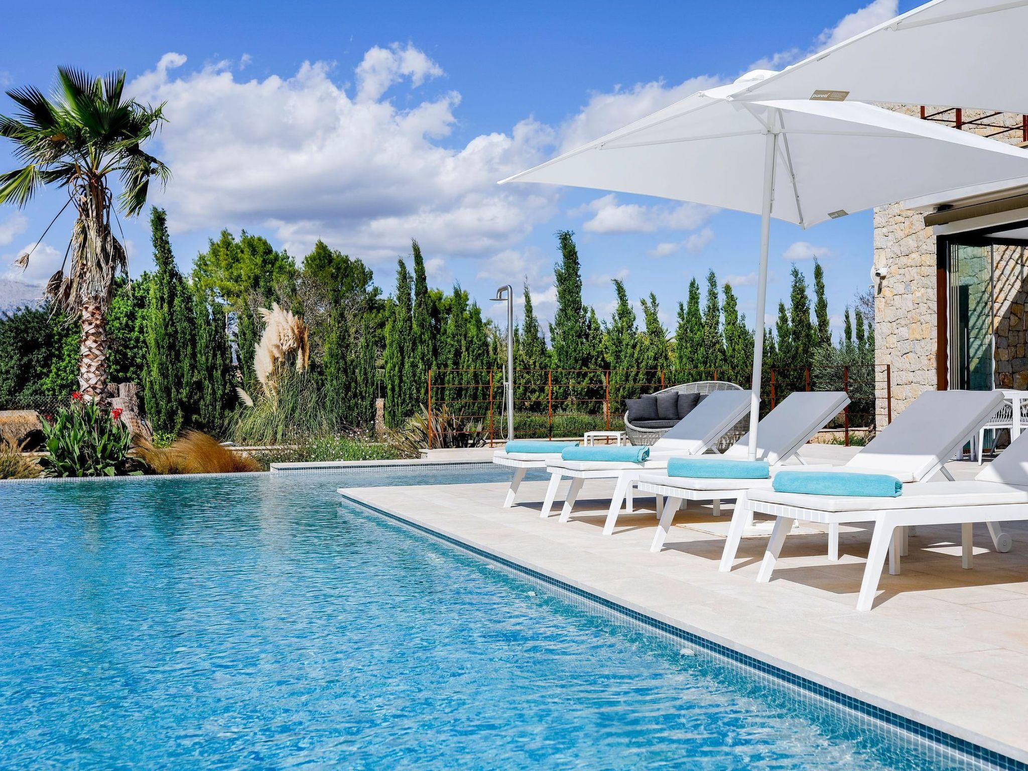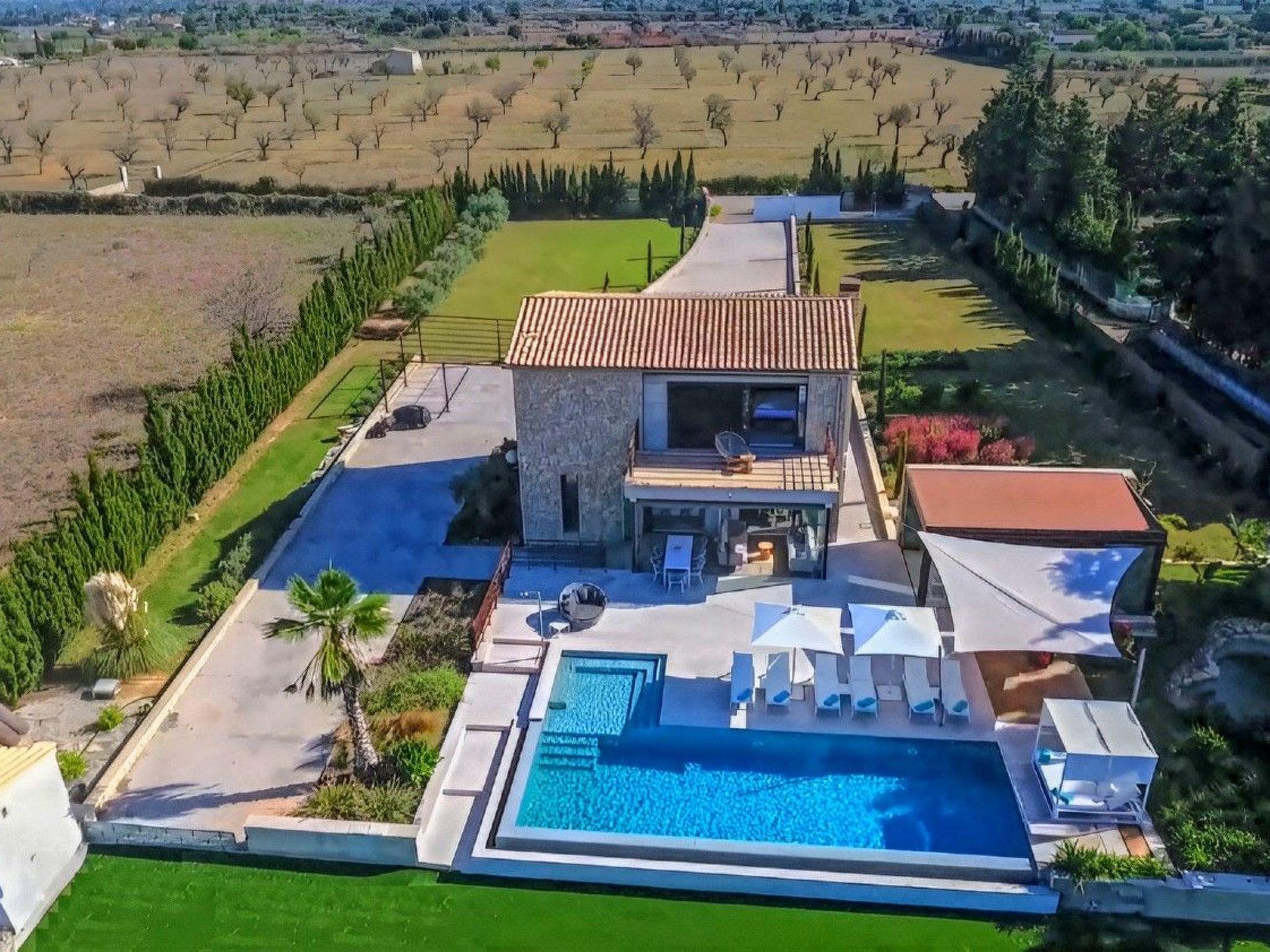 Im Inneren zeichnet sich die Finca durch ein elegantes und geräumiges Wohn-Esszimmer, eine voll ausgestattete Küche, die die Bedürfnisse eines jeden Hobbykochs befriedigt, und einen Fitnessraum, der Sie in Form hält, aus. Die 4 Doppelschlafzimmer sind Oasen der Entspannung, während die drei Bäder mit hochwertigen Rituals-Toilettenartikeln ausgestattet sind, die bei jeder Benutzung ein luxuriöses Wellness-Erlebnis garantieren.