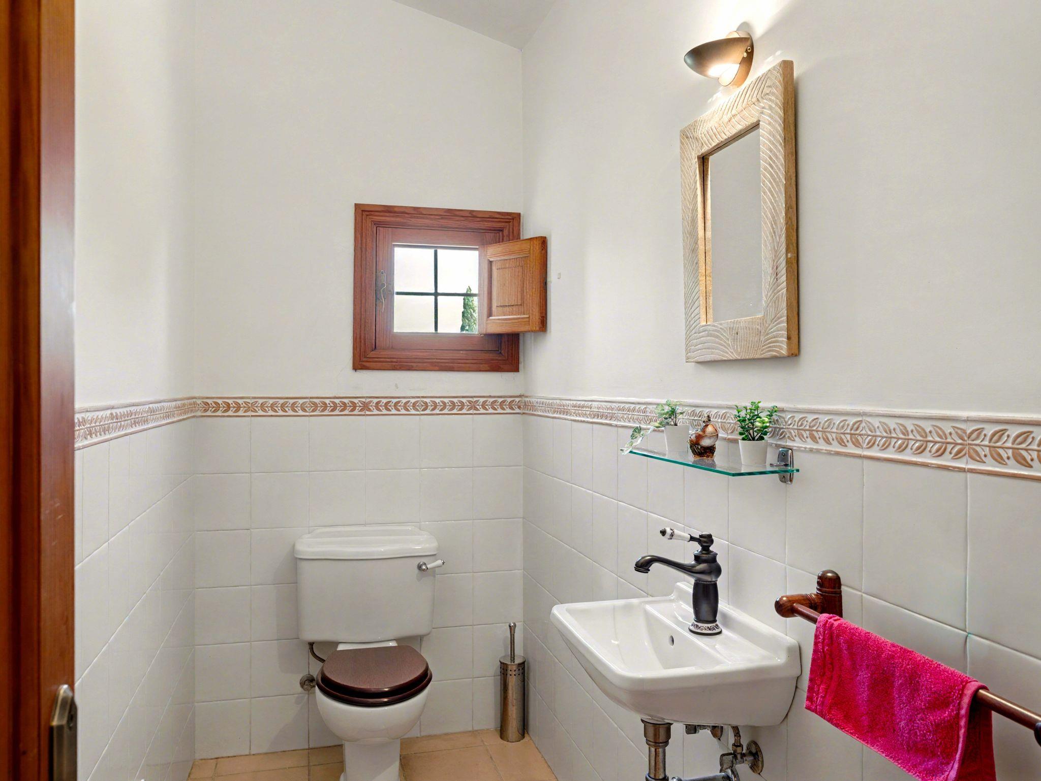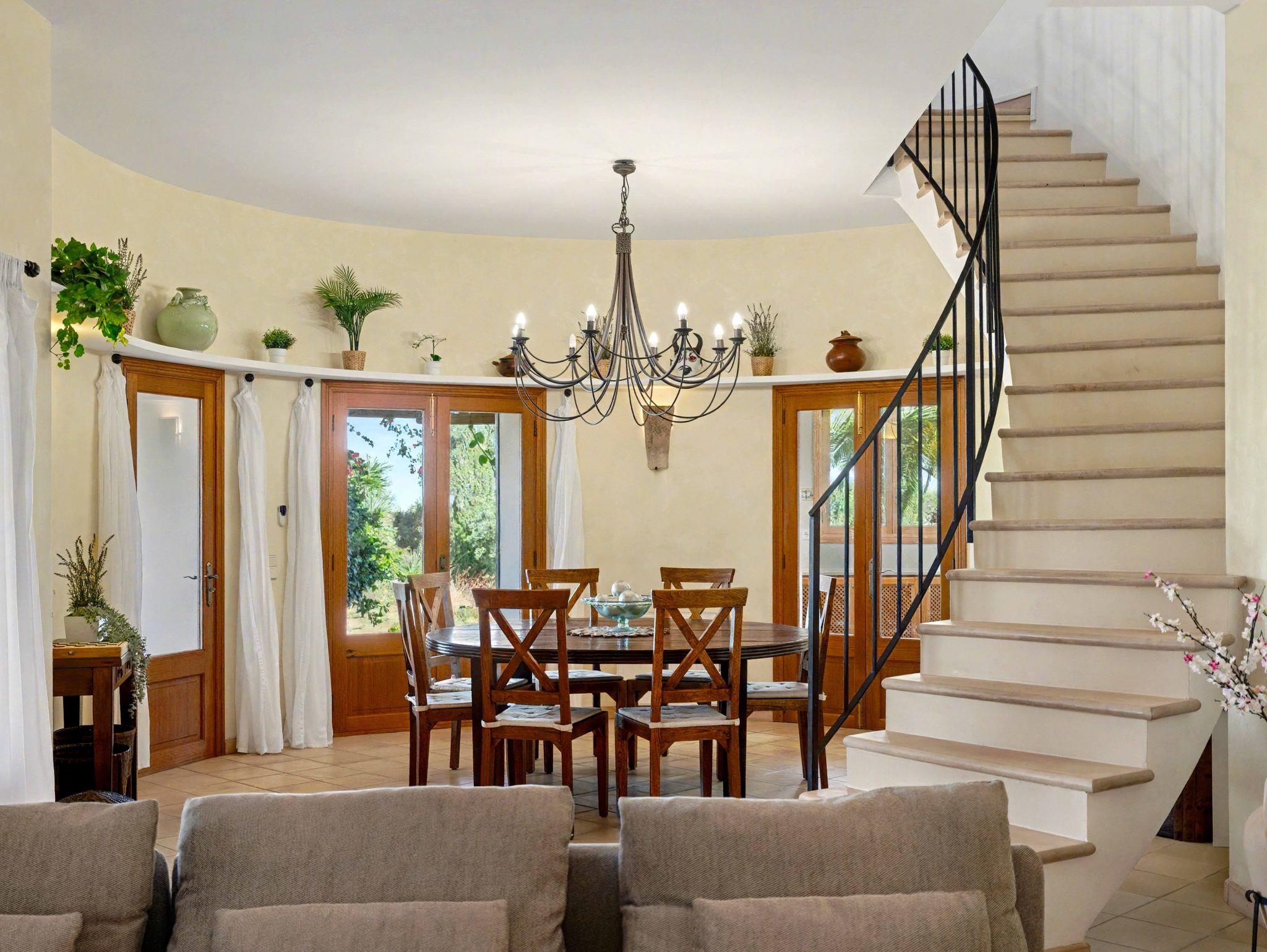 Ein besonderes Highlight ist der Turm, erreichbar über eine elegante Wendeltreppe. Dieser Raum eignet sich ideal als Leseecke oder ruhiges Homeoffice. Von der angrenzenden Dachterrasse genießen Sie einen traumhaften Panoramablick über die mallorquinische Landschaft.