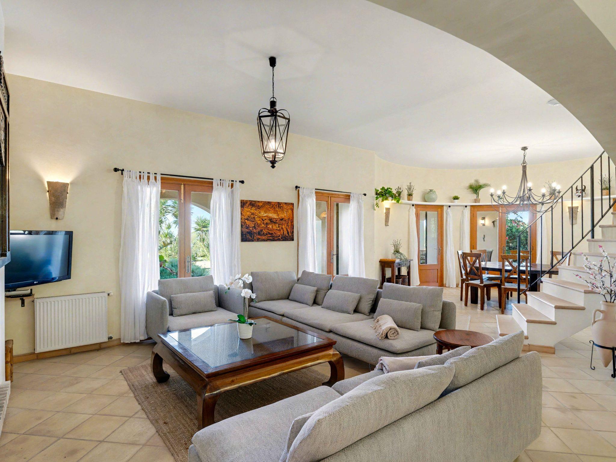Der liebevoll gestaltete Außenbereich ist ein echtes Highlight. Die große, flache Infinity-Poolanlage lädt zum Entspannen ein und wird von einer großzügigen Terrasse mit Natursteinmauer umrahmt. Direkt am Haus befindet sich eine überdachte Terrasse mit gemütlichem Essbereich und mobiler Gasgrill, ideal für gemeinsame Mahlzeiten im Freien. Von hier genießen Sie den Blick auf den gepflegten mediterranen Garten und die umliegende Landschaft ? perfekt für romantische Abende bei Kerzenschein.