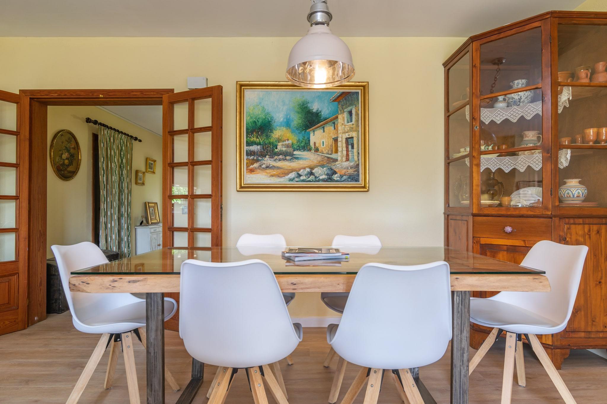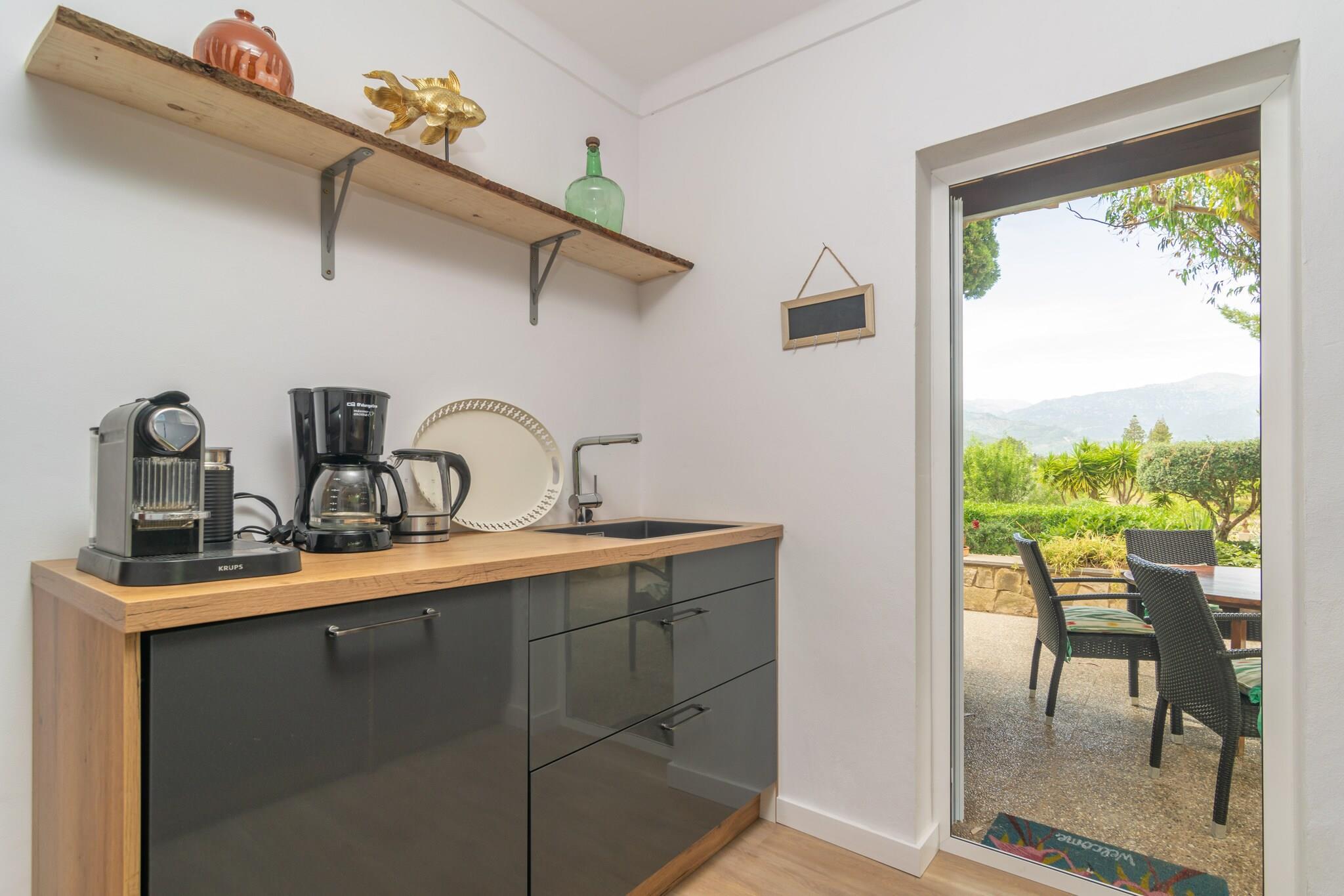 Dieses fantastische Haus begeistert mit traumhaften Außenbereichen, welche Ihnen einen spektakulären Ausblick auf die Bergwelt bei Inca ermöglichen. Nachdem Sie sich im 8 x 4 Meter langen und 1 – 2 Meter tiefen Chlorwasserpool erfrischt haben, stehen Ihnen 6 Sonnenliegen zum Sonnenbaden und Entspannen zur Verfügung. Der beste Ort für einen Aperitiv, oder einem Mittag- bzw. Abendessen unter freiem Himmel, bieten Ihnen die möblierte Terrasse und Veranda. Speziell Liebhaber der Grillkunst werden den Barbecue Bereich lieben. Das Grundstück ist eingezäunt und befindet sich in unmittelbarer Nachbarschaft. Der Wohnbereich ist sehr einfach und funktional gestaltet. Der große Wohn- und Essbereich ist mit einer Klimaanlage und einem Kamin ausgestattet und damit ein Ort, wo Sie entspannt Satelliten TV sehen oder ein spannendes Buch lesen können. Die Küche hat einen Induktionsherd. Die Waschmaschine beherbergt eine Waschmaschine, Bügelbrett und Bügeleisen. Es gibt zwei Schlafzimmer, welche beide jeweils mit zwei separaten Betten, Klimaanlage und einem Kleiderschrank ausgestattet sind. In einem der Zimmer befinden sich zudem ein Pelletofen und ein Badezimmer en-suite mit Dusche. Das zweite Badezimmer des Hauses verfügt über eine Badewanne. Zusätzlich finden sich hier noch ein Hochstuhl, ein Babybettchen, 3 Radiatoren, sowie 3 Ventilatoren. Die Villa befindet sich 1 km von Inca entfernt, einer kleinen Stadt in der Mitte der Insel, welche vor allem auf Grund Ihres Charmes, der angenehmen Ruhe, sowie mit einer Vielzahl an verschiedensten Restaurants und Einkaufsmöglichkeiten punkten kann. In den Genuss eines typisch mallorquinischen Gerichts kommen Sie am Besten in einen der bekannten „Cellers“, einem authentisch traditionellen mallorquinischen Restaurant, welche sich im Ortskern von Inca befinden. Jeden Donnerstag Früh findet in Inca der seit 7 Jahrhunderten ununterbrochene Wochenmarkt statt. Der nächstgelegene Strand befindet sich in Puerto de Alcúdia, welcher 28 km bzw. 20 Minuten mit dem Auto entfernt ist. Eventuelle Nebenkosten müssen beim Anbieter nachgefragt werden. Haustiere sind verboten. Partys oder ähnliche Veranstaltungen sind nicht gestattet. Es gibt Freiluftparkplätze für 5 Autos. Entfernungen Strand: 28 km - Puerto de Alcúdia Flughafen: 38 km - Son Sant Joan Golfplatz: 24.4 km - Golf de Pollença Ortsmitte: 2 km - Inca Bahnhof: 4 km - Inca Bushaltestelle: 4 km - Inca Fähre: 29.1 km - Puerto de Alcúdia Krankenhaus: 3.8 km - Hospital Comarcal de Inca Touristen Lizenz: ETV/4530Einheitsregister: ESFCTU00000701100015398900000000000000000000ETV/45304Bei der Anreise muss die Ecotasa (Touristensteuer der Balearen) bar bezahlt werden. Der zu zahlende Betrag beträgt zwischen 0.55EURO pro Nacht und Gast in der Nebensaison und 2.2EURO pro Nacht und Gast in der Hochsaison. Ab dem 9. Tag reduziert sich die Steuer um die Hälfte. Personen unter 16 Jahren sind davon ausgenommen.