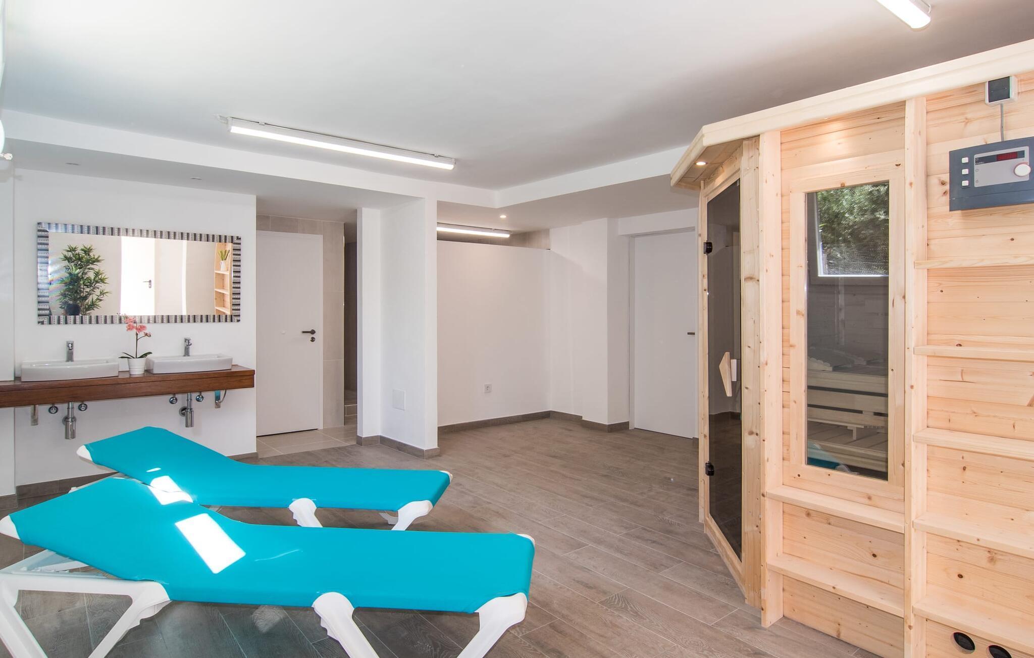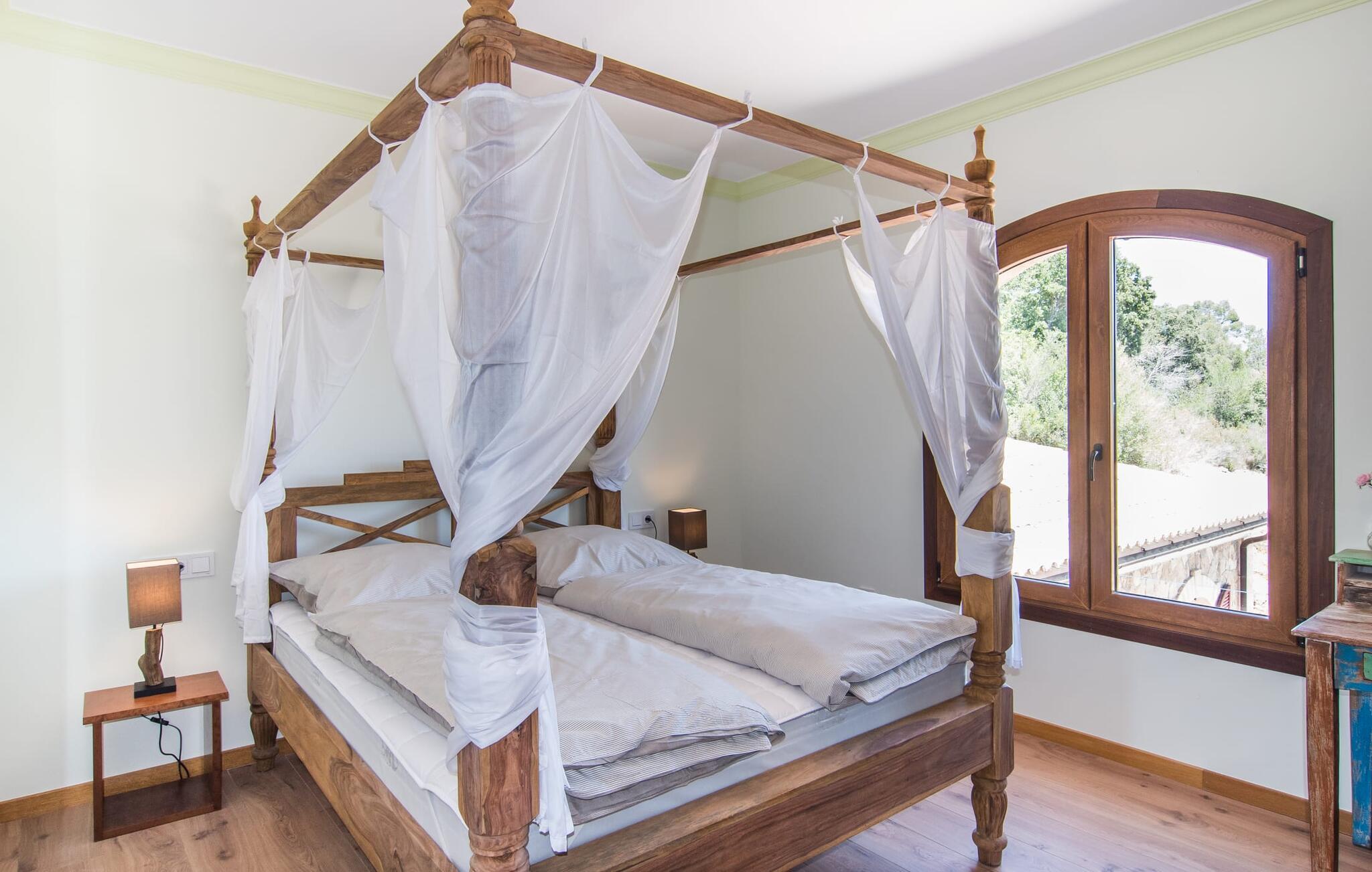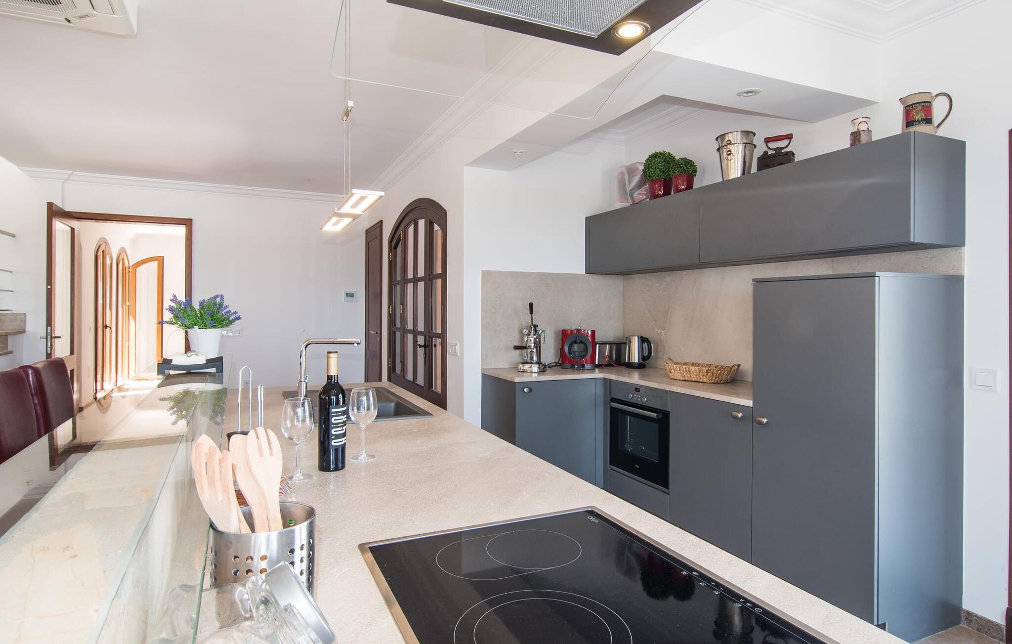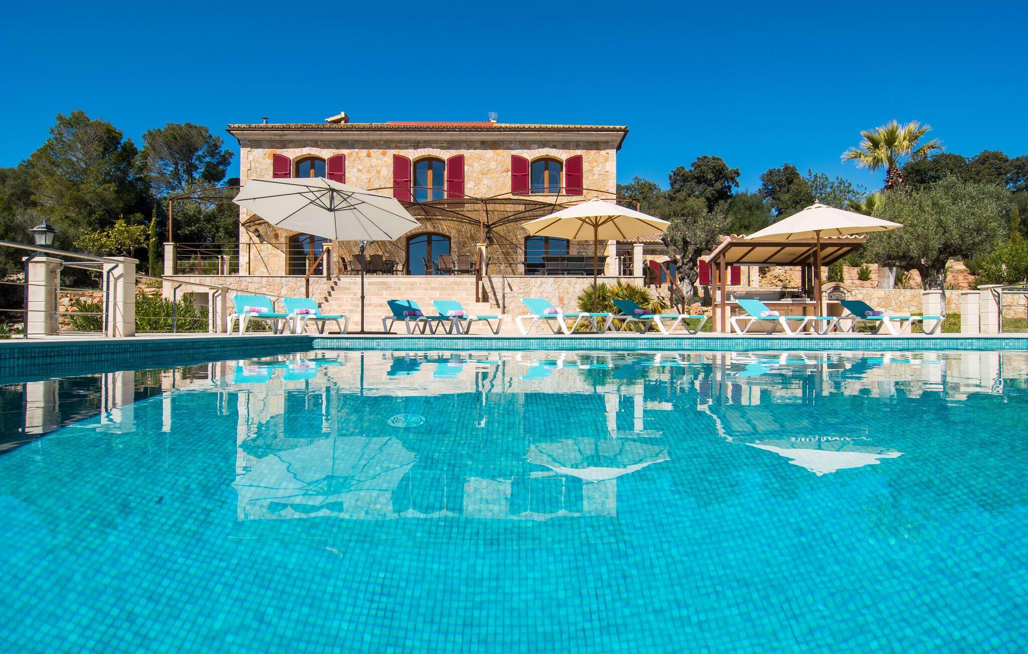 Sobald Sie angekommen sind, spendet die überdachte Terrasse mit einem außergewöhnlichen Blick auf den Pool Schatten beim täglichen Zusammensitzen und beim Grillen – und in der Außenküche steht sogar ein Pizzaofen bereit! Von der wunderschönen Villa gelangen Sie über ein paar Schritte direkt zum azurblauen Pool mit Panoramablick, der Sie bereits unter der mallorquinischen Sonne erwartet. Rund um den Pool laden bequeme Sonnenliegen und ein hochwertiges Tagesbett im Freien zum Mittagsschläfchen oder zum Lesen Ihres Lieblingsbuchs ein.