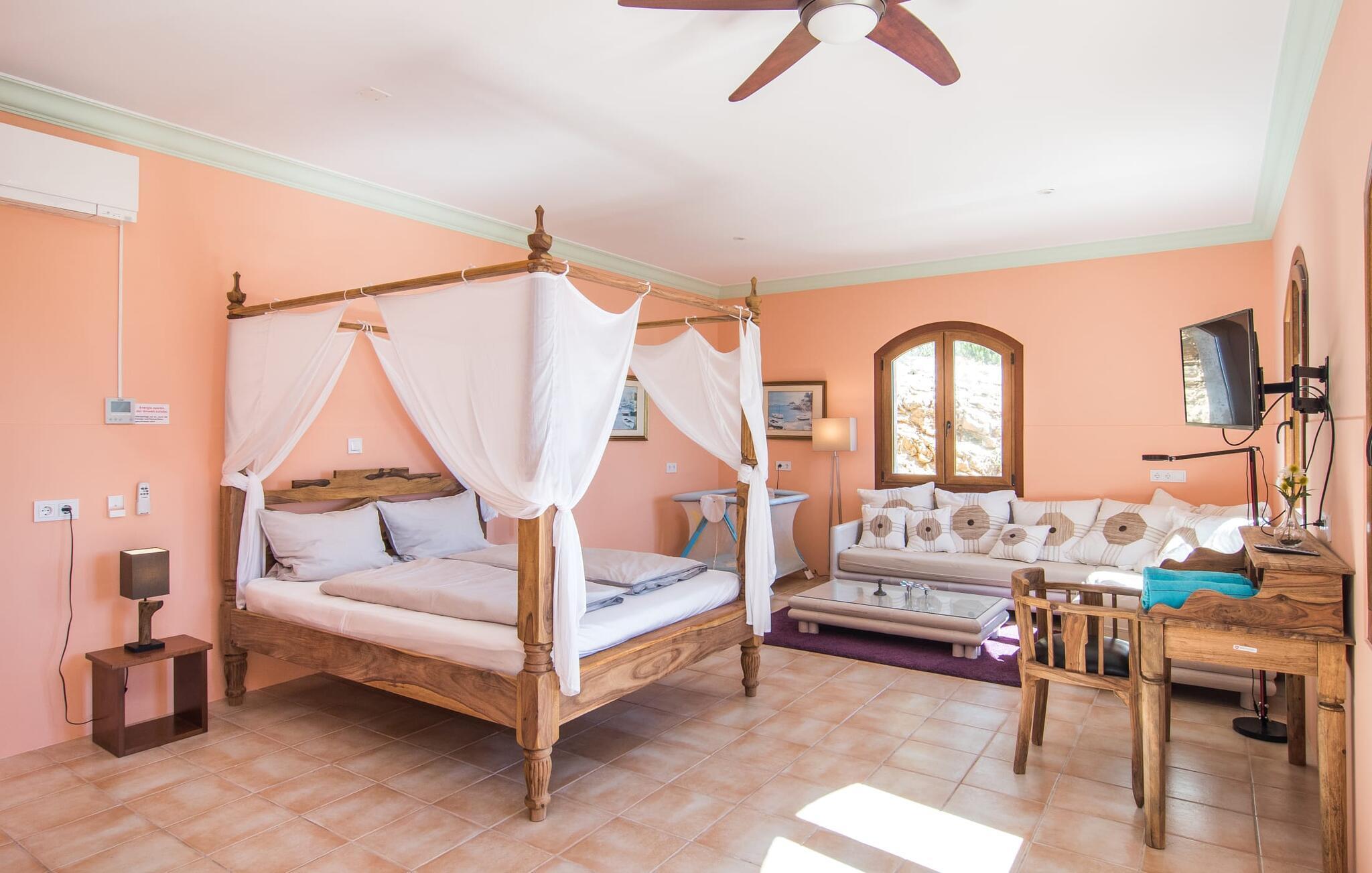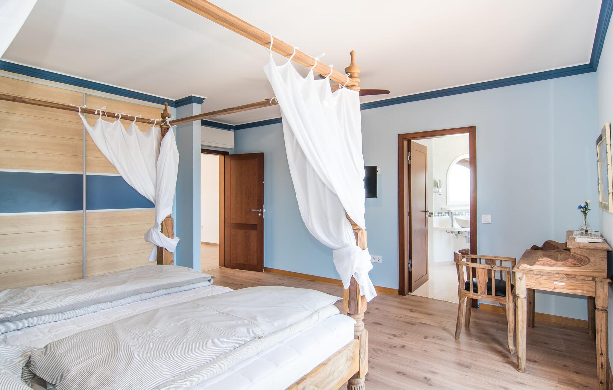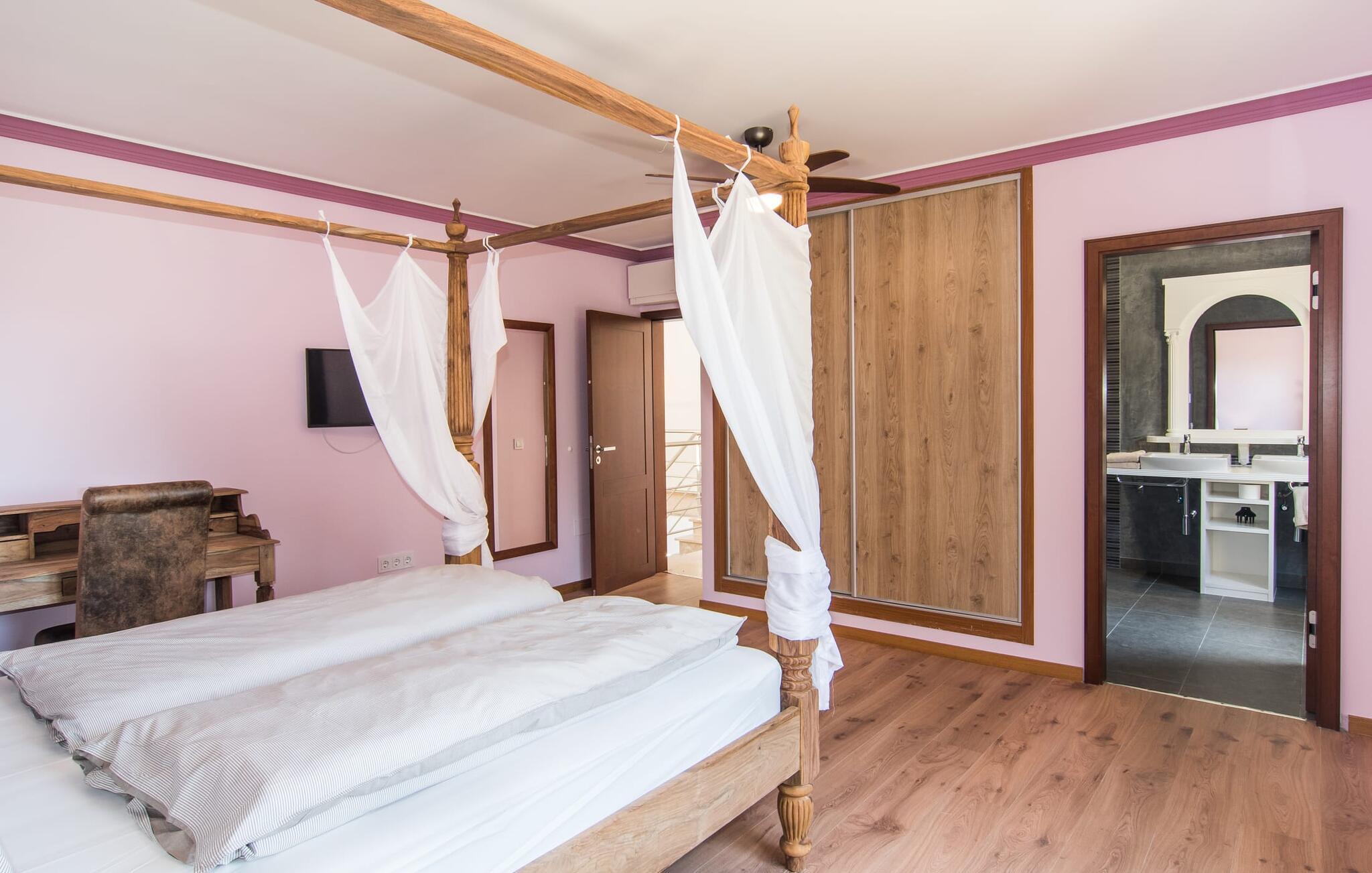 Majestätischer Wohnraum auf unglaublichen 600 m². Die großen Fenster, teilweise ausgestattet mit wunderschönen roten Fensterläden, dienen als Sicht- und Sonnenschutz und zieren die detailreiche Außenfassade. Die harmonisch abgestimmte Farbpalette von Sand- bis Rottönen zieht sich durch das elegante Interieur der Villa. Im Obergeschoss befinden sich fünf helle und klimatisierte Schlafoasen mit jeweils einem Doppelbett. Edle Stoffe umhüllen Ihren himmlischen Schlafbereich und garantieren süße Träume und erholsamen Schlaf. Neben TV, Deckenventilatoren und luxuriösen Badezimmern genießen Sie gehobenen Komfort der Extraklasse. Das sechste Schlafzimmer mit einem luxuriösen Doppelbett (1,40 x 1,90 m) und einem direkt angrenzenden Badezimmer befindet sich im Erdgeschoss. Jedes Schlafzimmer verfügt über ausreichend Stauraum für Ihre Sachen und Ihre Wertsachen können Sie im Safe sicher verstauen. Das prächtige und erstklassige Wohn-Esszimmer bildet das Herzstück der Traumvilla. Hier trifft man sich und trifft sich als große Gruppe oder Familie zu heiteren Momenten. Der rustikale Chic der luxuriösen, hochwertigen Ledersofa- und Sessellandschaft ist ein Beweis für vollendeten Geschmack mit garantierter Wohlfühlatmosphäre. Die Kalt-Warm-Klimaanlage garantiert eine perfekte Raumtemperatur. Die offene Luxusküche mit Kochinsel bietet eine Bühne für Showkochen. Jeder kann seinen Platz auf den eleganten Barhockern oder am langen Esstisch frei wählen. Die Villa „Inka“ hält noch weitere Extras für Sie bereit: Das absolute Highlight ist das separate moderne Billardzimmer. Du liebst etwas mehr Action? Jedes Spiel am Kickertisch sorgt für gute Laune und jede Menge Spaß. Wer sich gerne mit Fitnessgeräten fit hält, kann dies im Fitnessraum tun.