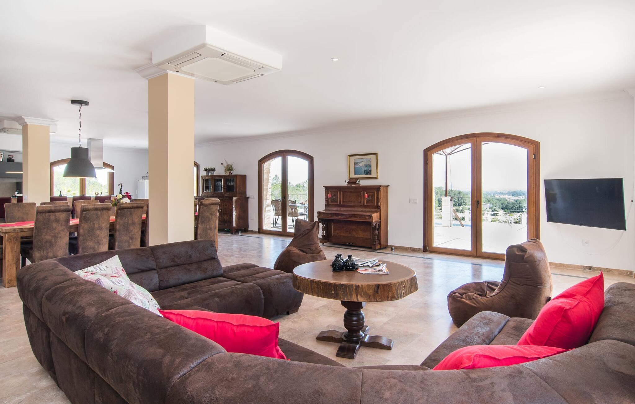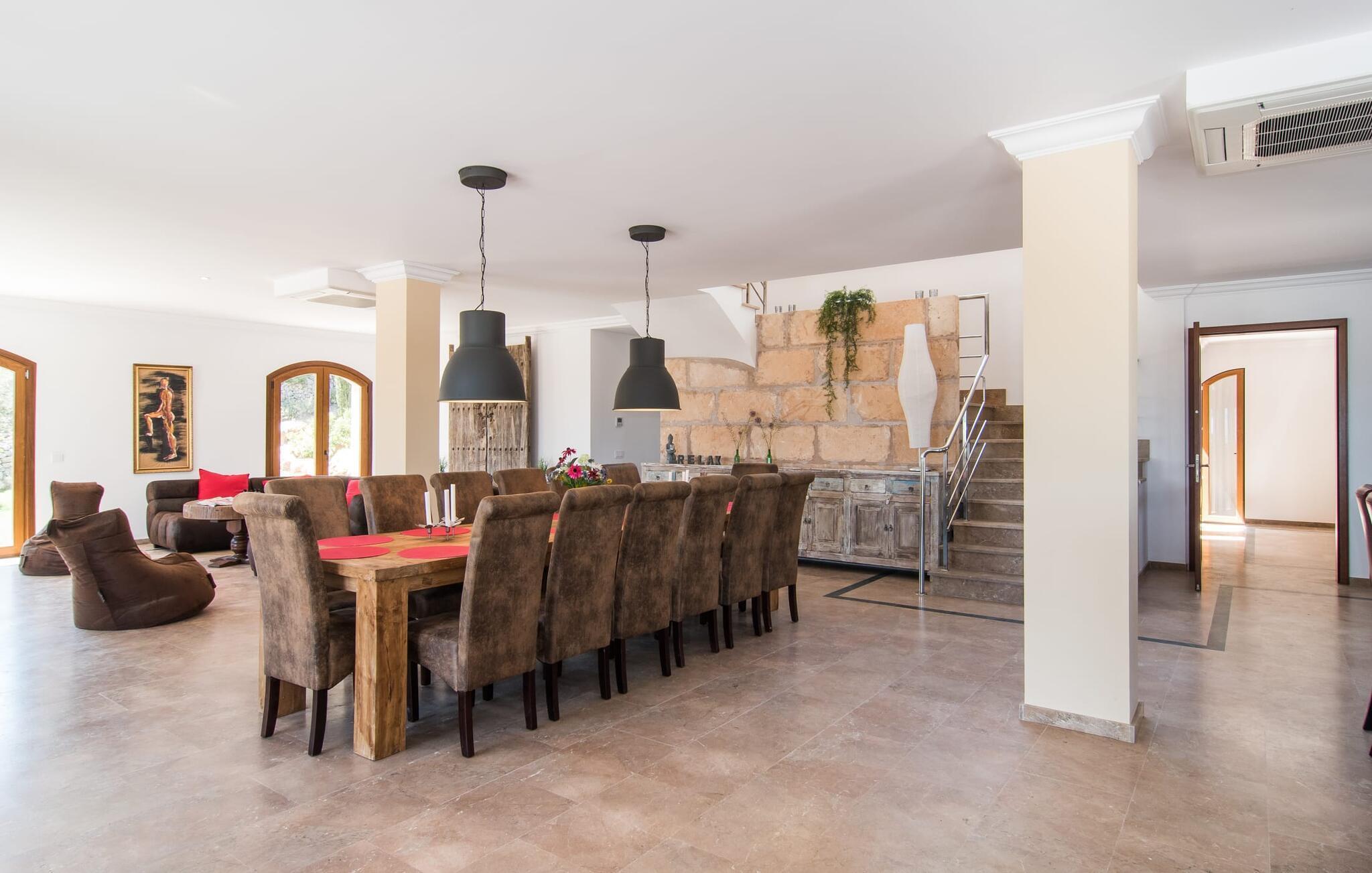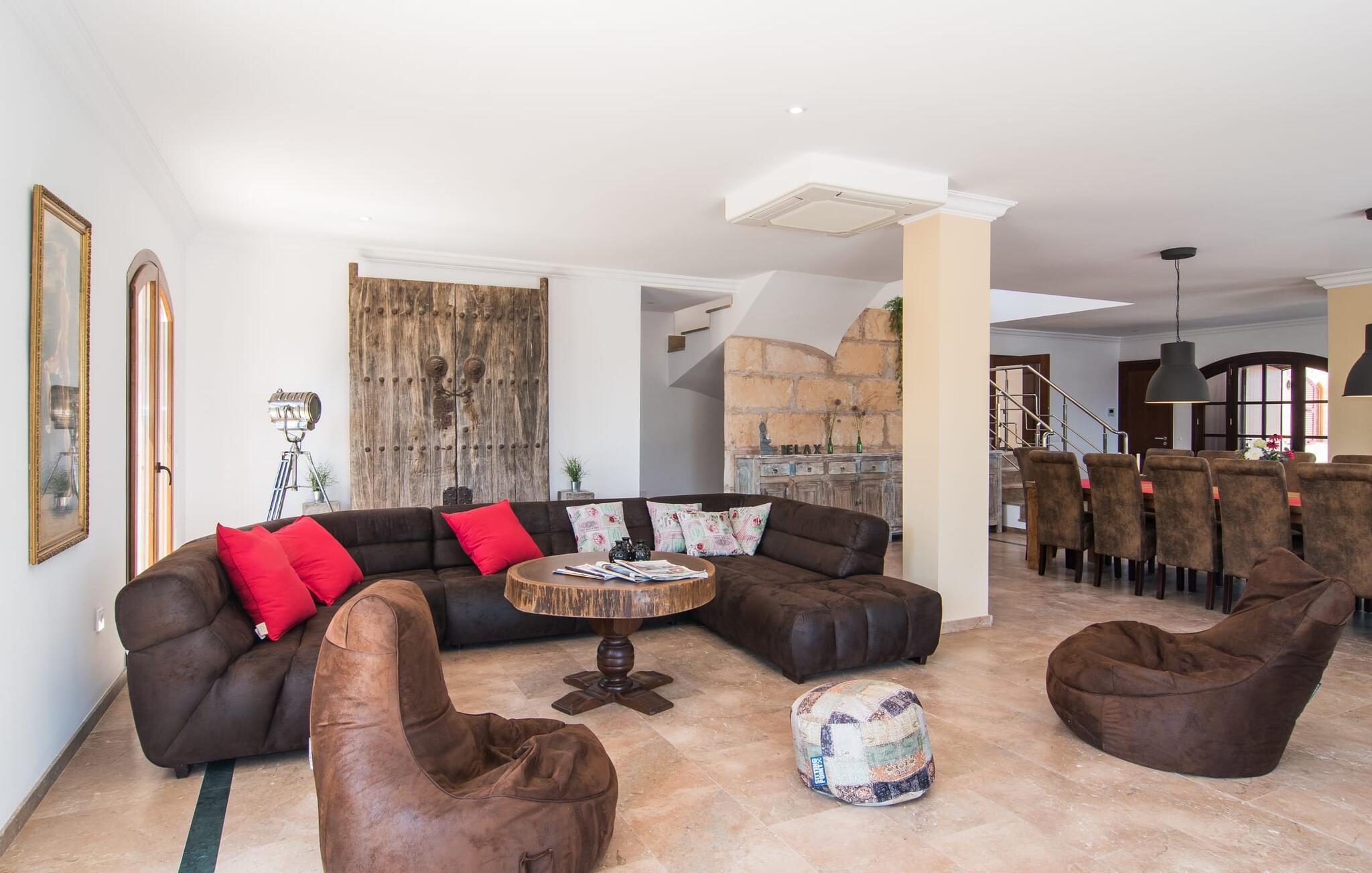 Dienstags kann man über die nahegelegene Landstraße, die je nach Windverhältnissen gut zu hören ist, zum Wochenmarkt im beschaulichen Städtchen Porreres fahren. Hier finden Sie alles: sonnengereiftes Obst und Gemüse, guten Wein, aber auch Haushaltswaren und Kleidung. Erleben Sie das geschäftige Treiben des Marktes in den kleinen Gassen und genießen Sie die herzliche Gastfreundschaft der Einheimischen in den vielen Restaurants und Cafés. Sehenswerte Touristenattraktionen sind die im 17. Jahrhundert erbaute Pfarrkirche Senyora de Cosolació und das etwa 4 km entfernte Kloster Santuari di Monti-Sion. Sie können das Kloster zu Fuß oder mit dem Auto erreichen. Dort können Sie einen unvergesslichen Blick auf die Insel erhaschen. Und auch für alle Meereshungrigen haben wir etwas im Angebot – nämlich eine Empfehlung für einen ausgedehnten Strandausflug. Sie werden schnell Abhilfe schaffen: Viele schöne Strände erreichen Sie in ca. 10 Minuten. 20 Minuten mit dem Auto. Die traumhafte Villa „Inka“ mit Pool liegt im Süden Mallorcas – im beschaulichen Gemeindebezirk Porreres. Das Anwesen erstreckt sich über satte 28.000 m² mit Panoramablick auf die idyllische Landschaft. Über die Landstraße gelangen Sie direkt zum Wochenmarkt von Porreres, Supermärkte sind in unmittelbarer Nähe und die schönsten Strände dieser beliebten Insel erreichen Sie in ca. 10 Minuten. 20 Minuten mit dem Auto.