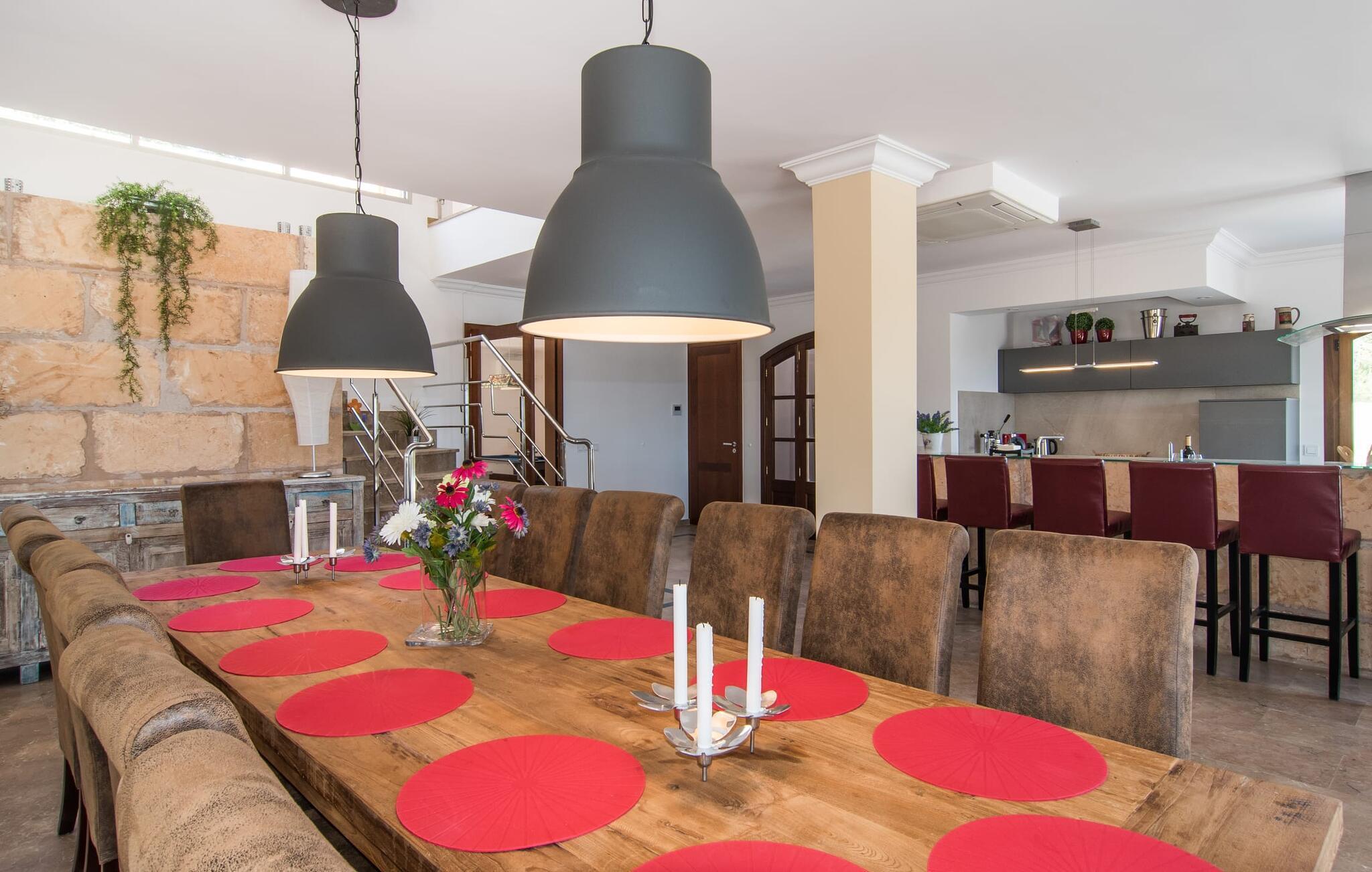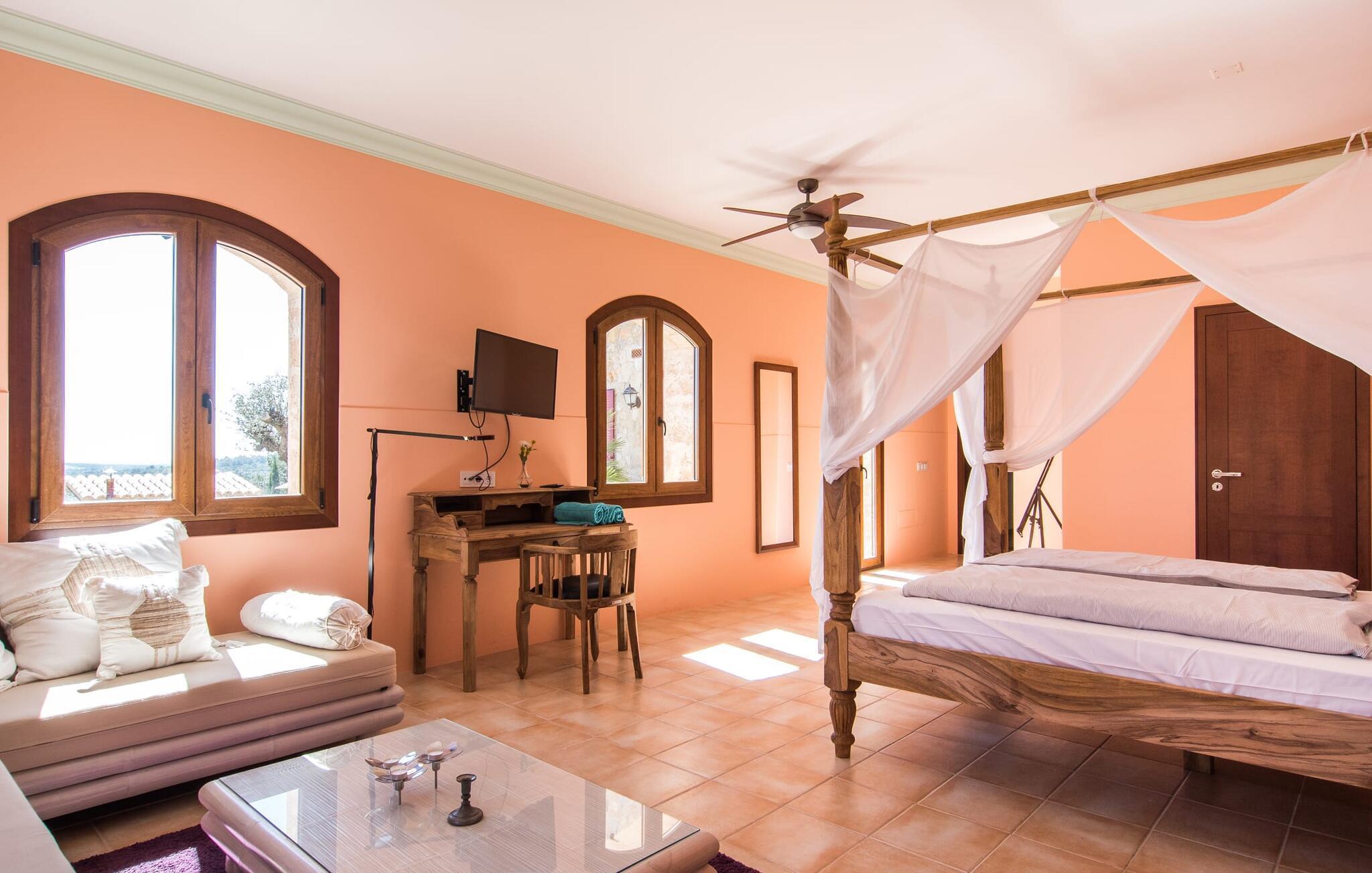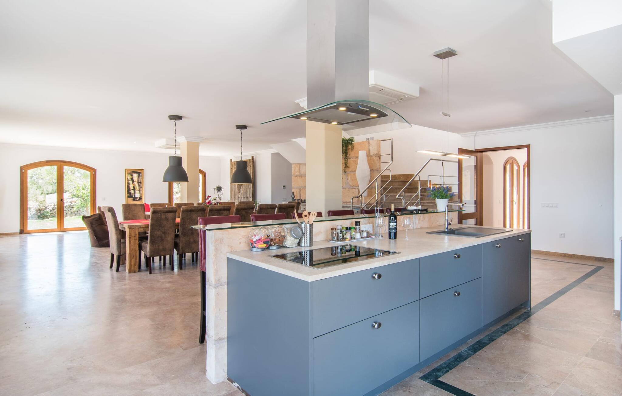 Dienstags kann man über die nahegelegene Landstraße, die je nach Windverhältnissen gut zu hören ist, zum Wochenmarkt im beschaulichen Städtchen Porreres fahren. Hier finden Sie alles: sonnengereiftes Obst und Gemüse, guten Wein, aber auch Haushaltswaren und Kleidung. Erleben Sie das geschäftige Treiben des Marktes in den kleinen Gassen und genießen Sie die herzliche Gastfreundschaft der Einheimischen in den vielen Restaurants und Cafés. Sehenswerte Touristenattraktionen sind die im 17. Jahrhundert erbaute Pfarrkirche Senyora de Cosolació und das etwa 4 km entfernte Kloster Santuari di Monti-Sion. Sie können das Kloster zu Fuß oder mit dem Auto erreichen. Dort können Sie einen unvergesslichen Blick auf die Insel erhaschen. Und auch für alle Meereshungrigen haben wir etwas im Angebot – nämlich eine Empfehlung für einen ausgedehnten Strandausflug. Sie werden schnell Abhilfe schaffen: Viele schöne Strände erreichen Sie in ca. 10 Minuten. 20 Minuten mit dem Auto. Die traumhafte Villa „Inka“ mit Pool liegt im Süden Mallorcas – im beschaulichen Gemeindebezirk Porreres. Das Anwesen erstreckt sich über satte 28.000 m² mit Panoramablick auf die idyllische Landschaft. Über die Landstraße gelangen Sie direkt zum Wochenmarkt von Porreres, Supermärkte sind in unmittelbarer Nähe und die schönsten Strände dieser beliebten Insel erreichen Sie in ca. 10 Minuten. 20 Minuten mit dem Auto.
