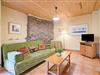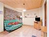 Eingangshalle(über gemeinsamen Eingang), Wohnzimmer(Doppelschlafcouch, TV), offene Küche(Kochherd, Backofen, Mikrowelle, Kühl-/Gefrierkombination), Schlafzimmer(Französisches Bett), Badezimmer(Dusche, Waschbecken, Toilette, Bidet), Heizung(Zentral), Parkplatz, Kinderbett, Bügelbrett, Bügeleisen