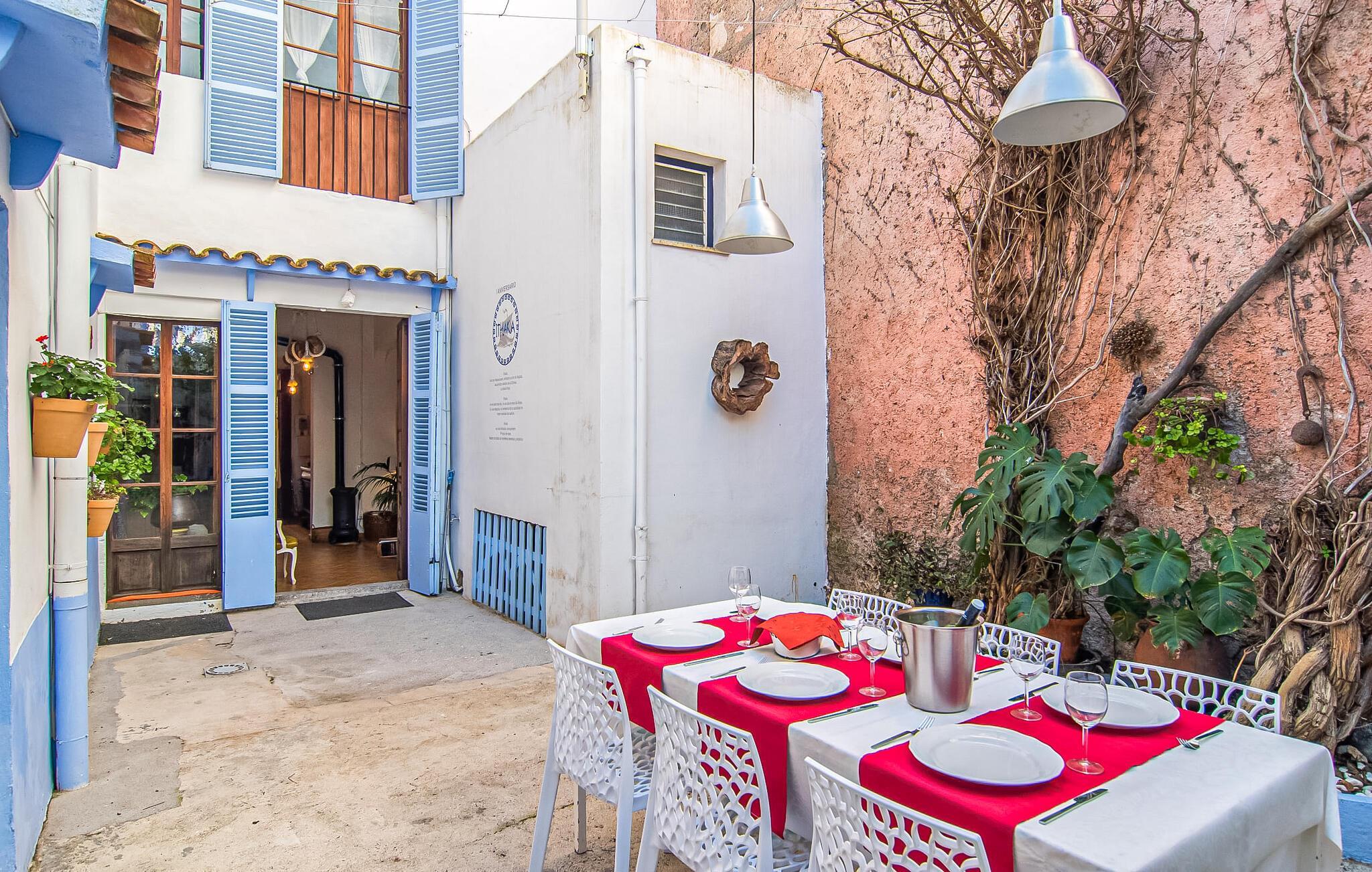 Wenn Sie ein Faible für charaktervolle Städte haben, wird Sie die mittelalterliche Stadt Artà schnell verzaubern. Dieses Stadthaus liegt inmitten der legendären Gassen, die den unverwechselbaren Charme dieses Ortes ausmachen. Und gleichzeitig erwartet Sie ein kleiner, liebevoll angelegter Garten mit knorrigen Bäumen und an den Ästen hängenden Windspielen, die die sanfte Inselbrise in eine wunderbare Melodie verwandeln. Es gibt ausreichend Sitzmöglichkeiten, um die friedliche Atmosphäre dieses besonderen Ortes zu genießen. Bruchsteinmauern, die an ein verwunschenes Kloster erinnern, umgeben den Garten und vermitteln ein Gefühl der Geborgenheit, das sich auch beim Betreten des mediterranen Innenhofs einstellt. Dafür sind die kräftigen Blau- und Weißtöne sowie die warme Beleuchtung verantwortlich – ein perfekter Wohlfühlbereich, um abends die Erlebnisse des Tages noch einmal Revue passieren zu lassen. Eine Treppe führt hinauf zu einer Terrasse, von der Sie eine bemerkenswerte Aussicht genießen können.