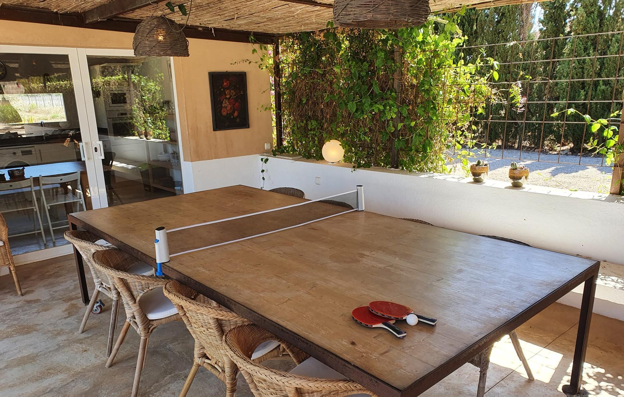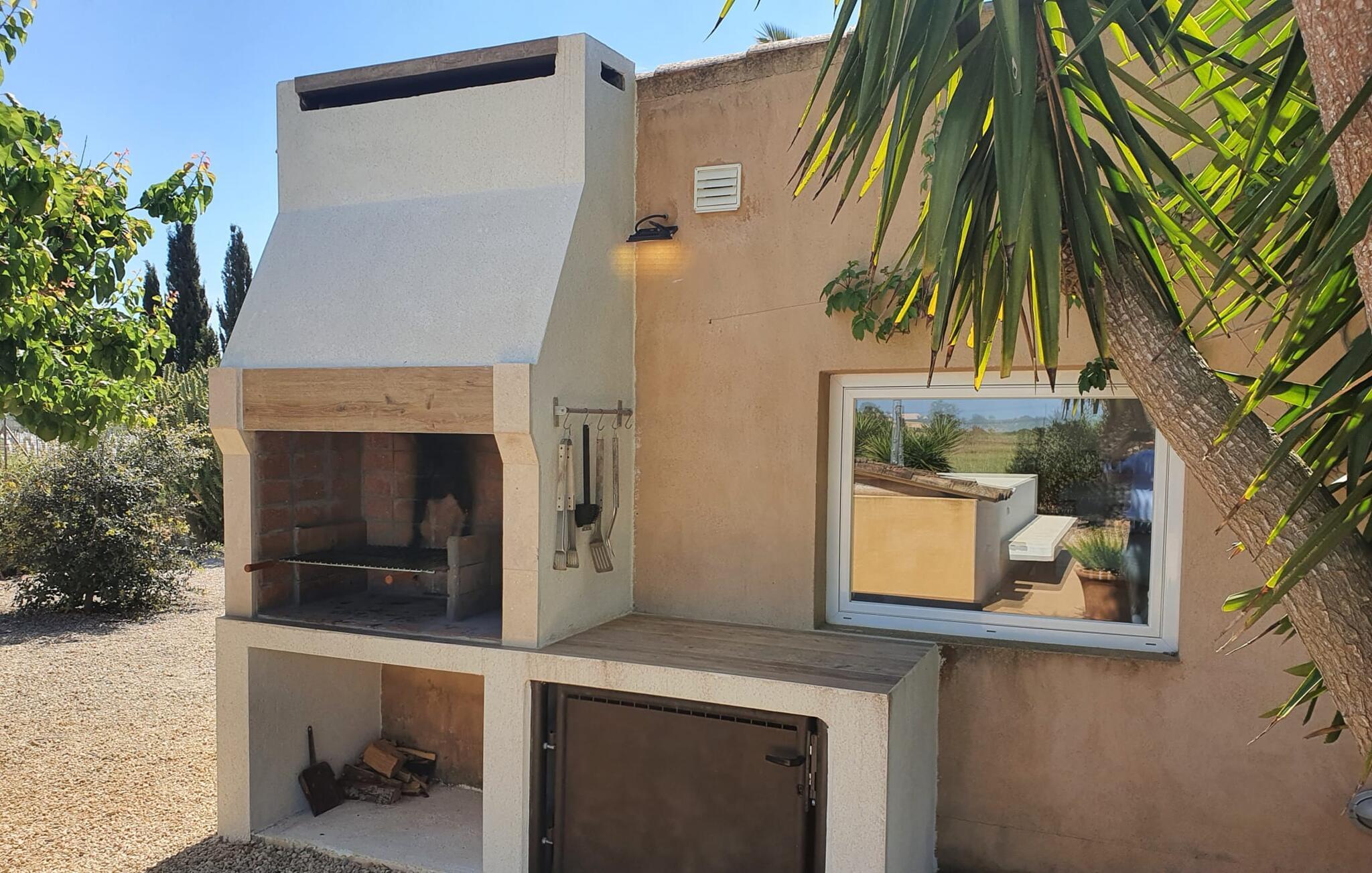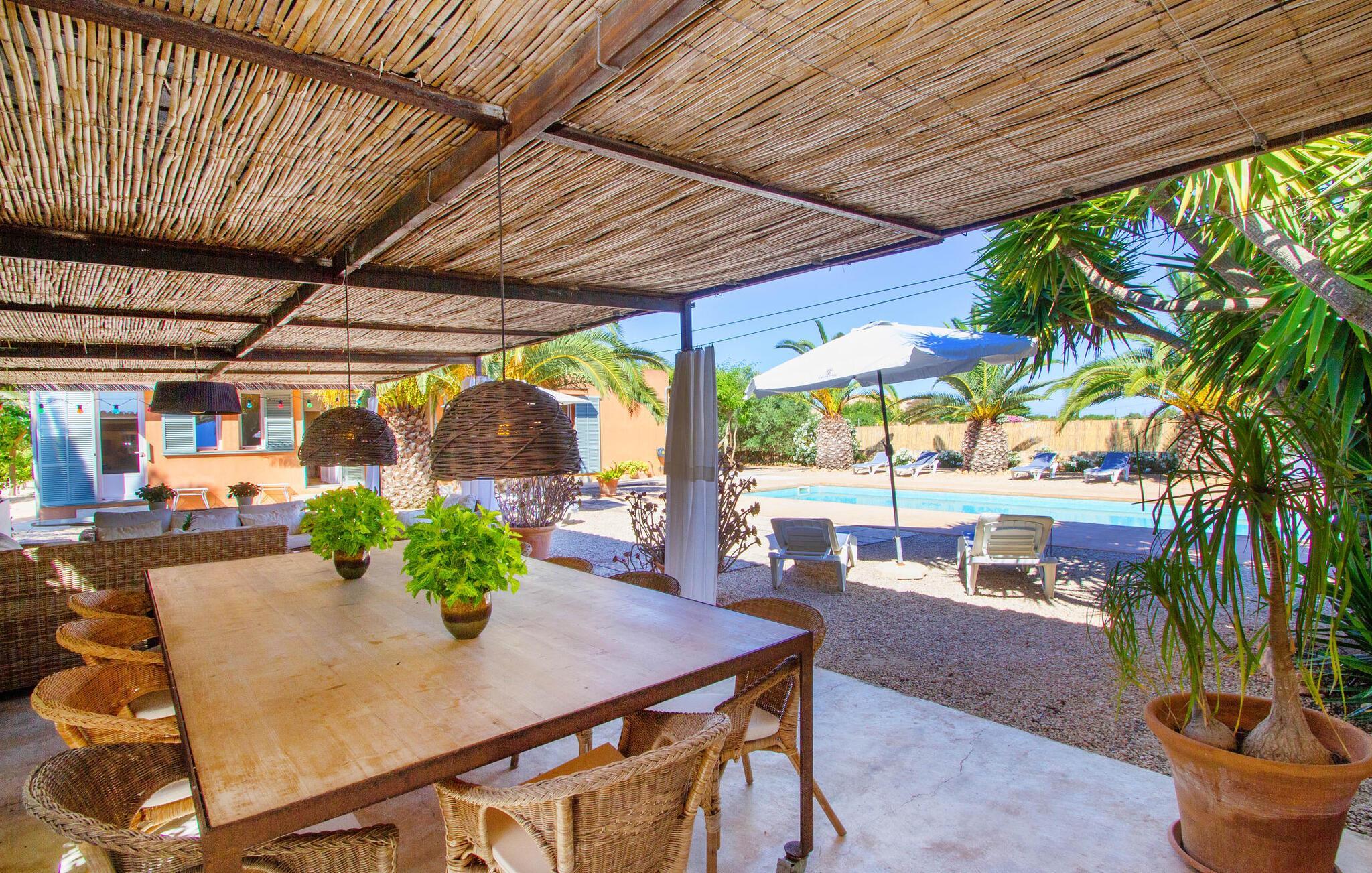 Besonders beeindruckend ist für uns auch die tolle Poolanlage mit ihren herausragenden Details. Der ebene Pool misst 10 x 4 m und hat eine Tiefe zwischen 0,70 und 2 Metern. Der Pool ist von einer umlaufenden Terrasse umgeben. Für jeden Gast steht eine Sonnenliege zur Verfügung und zwei Sonnenschirme stehen bereit, um Schatten zu spenden. Die gemauerte Bank vor dem Pool bietet einen zusätzlichen Platz, an dem Sie sich zurücklehnen und ein ausgedehntes Sonnenbad genießen können. In den Sommermonaten dürfte sich das Leben überwiegend draußen abspielen. Neben den beiden anderen überdachten Terrassen finden wir eine weitere Terrasse, die sich direkt am Pool entlang erstreckt. Diese Terrasse ist mit einem Baldachin und Bambus überdacht und somit ein perfekter Ort, um Schutz vor der Sonne zu finden. Die weißen Stoffvorhänge an den Seiten verleihen diesem Bereich nicht nur mehr Ästhetik, sondern bieten auch zusätzlichen Schutz vor Wind und Sonne. Unter dem großen Segeltuchdach befindet sich eine weitere malerische Sitzecke mit Lounge-Atmosphäre, in der Sie durchatmen und sich von den Strapazen des Alltags erholen können. Am langen Esstisch ist ausreichend Platz für jeden einzelnen Gast – und ein besonderes Highlight ist die angrenzende Sommerküche, die ebenso wie die Küche im Haupthaus hochwertig ausgestattet ist und über einen Geschirrspüler und eine Waschmaschine verfügt , Kühlschrank, Backofen, Kochfeld, Mikrowelle und reichlich Besteck. Neben dieser Sommerküche gibt es auch einen freistehenden Holzkohlegrill. Wenn Sie also kochen möchten, finden Sie in dieser fantastischen Außenküche einen idealen Sommerplatz, während Sie die bequemen, gemütlichen Wände des Haupthauses und des Schlafbereichs im Neubau fast ausschließlich zum Schlafen oder zum Zufluchtsort nach einer Weile reservieren langer Tag mit Ausflügen in die Umgebung.