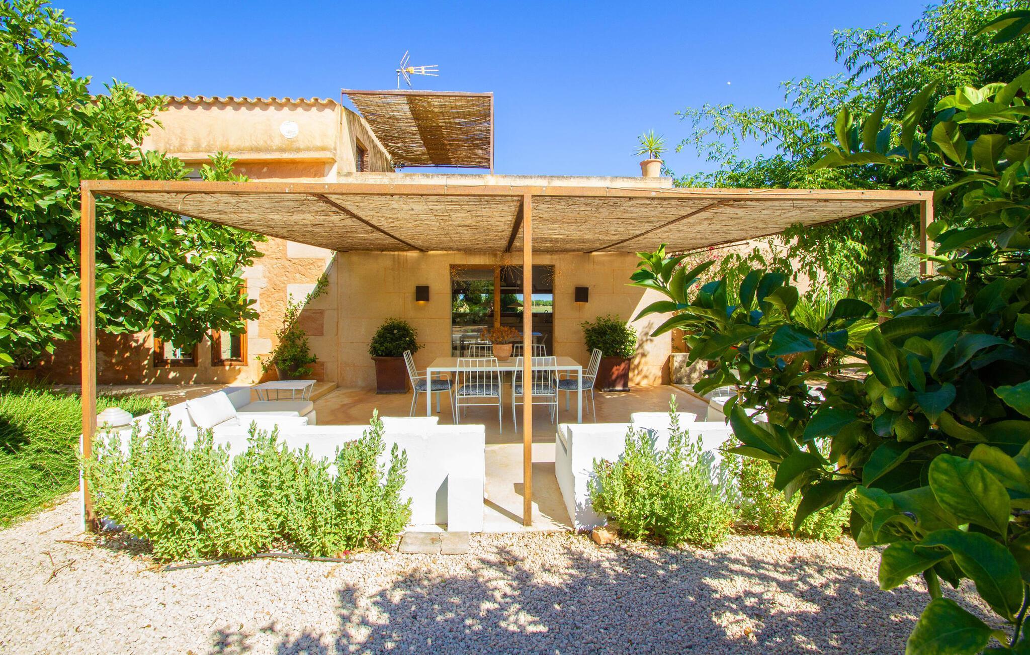 Die charmante Villa „Jara“ liegt in völlig privater Lage, nahe einer Landstraße, die direkt zum wunderschönen Naturstrand Es Trenc führt. Wenn Sie einen Tag am Strand planen, gibt es neben Es Trenc hier im südlichen Teil der Insel unzählige verschiedene Möglichkeiten, von denen jede ihre eigenen Vorzüge hat: Zwischen Es Trenc und dem Strand von Sa Rapita liegt der herrliche Platja Ses Covetes ist 300 Meter lang und nur 4,5 km von der Villa entfernt. Dort finden Sie einen Sonnenschirm- und Liegenverleih sowie eine Strandbar und einen Kiosk. Wie auch immer Sie Ihren Tag verbringen – ob an einem der traumhaften Strände im Süden der Insel oder in Ihrer großzügig angelegten Villa „Jara“ und ihrem außergewöhnlichen Außenbereich – Ihr Aufenthalt in diesem gemütlichen Villenanwesen verspricht Erholung und Bereicherung für die Seele in einem liebevoll, individuell und gemütlich gestalteten Ambiente. Wir von Fincallorca wünschen Ihnen einen erholsamen Urlaub. Die 200 Jahre alte Villa „Jara“ mit zusätzlichem Neubau und toller Außenküche liegt in herrlicher ländlicher Lage zwischen Campos (10 Autominuten entfernt) und dem kleinen Küstenort Ses Covetes. In Campos können Sie Ihre täglichen Einkäufe erledigen oder sich vielleicht mit frischen regionalen Produkten eindecken, die donnerstags und sonntags auf dem Wochenmarkt im Ort verkauft werden. Der attraktive Platja Ses Covetes ist nur 4,5 km entfernt, wobei die Villa an der Landstraße auf dem Weg zum tollen Naturstrand Es Trenc liegt.