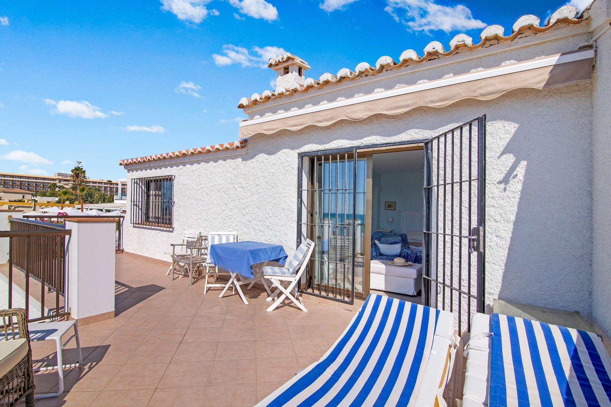 Ein herrliches Ferienhaus direkt am Meer mit separatem Gästehaus, einzigartig gelegen direkt am Meer: Von den Terrassen oder vom Garten aus können Sie direkt zum Strand La Cala de Mijas laufen. Das Gästehaus ist nur durch eine kleine Straße vom Haupthaus getrennt. Der eingezäunte Garten ist völlig privat, ein tropisches Paradies mit Bananenbäumen, Hibiskus und Weinreben. Die Terrasse bietet Schatten und Schutz vor dem Wind: Selbst im Winter ist es oft angenehm warm. Der Winterraum ist ein äußerst entspannender, loungeartiger Raum mit großen, bequemen Kissen; der perfekte Ort, um den wunderbaren Meerblick zu genießen, vielleicht bei einem Glas Wein und Ihrer Lieblingsmusik. Dieses geräumige und komfortable Ferienhaus mit sieben Schlafzimmern und Gästehaus ist sehr gut für mehrere Familien mit Kindern geeignet. Die Lage direkt am Strand und das durchdacht eingerichtete Haus machen es zu einem außergewöhnlichen und begehrenswerten Urlaubsziel.