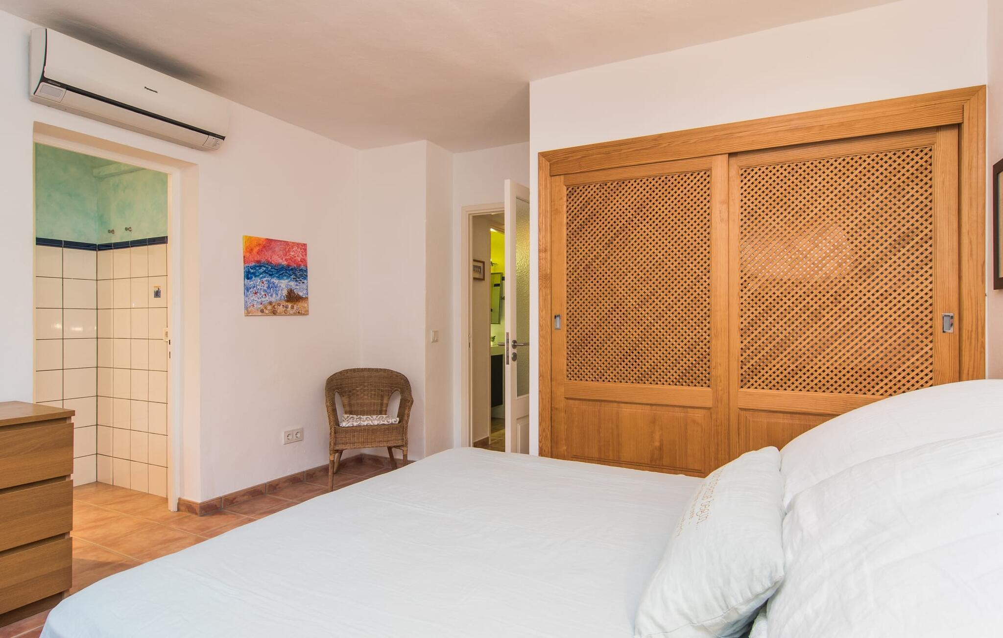 Das Innere der Villa ist zeitlos und gemütlich, mit raffiniertem Schnitt und offenem Design, das viel Charme versprüht. Das Vorhandensein von zwei Wohnzonen bringt zudem ein besonderes Maß an Großzügigkeit und Freiheit mit sich, das Menschen mit Rückzugsbedürfnis sicherlich zu schätzen wissen. Am großen Esstisch können Sie drinnen gemeinsam speisen. Eine harmonisch integrierte, voll ausgestattete Küche ergänzt den Gemeinschaftsbereich im Erdgeschoss. Auf dieser Wohnebene befinden sich zwei gemütliche Doppelzimmer, eines davon mit eigenem Duschbad, sowie ein weiteres Badezimmer. Von einem der beiden Wohnzimmer gelangt man in das dritte Schlafzimmer, das ebenfalls über ein eigenes Badezimmer verfügt. Dank einer stabilen Internetverbindung und einem Schreibtisch ist dieses Bauernhaus ein hervorragender Aufenthaltsort, wenn Sie von zu Hause aus arbeiten. Die Villa „La Casa del Sol“ macht ihrem Namen alle Ehre: Sonnenfarben erstrahlt das Haus unter dem mediterranen Himmel und erwartet meeresbegeisterte Urlauber. Denn das Ufer ist nicht weit entfernt. Auch das ca. 4 km entfernte Colònia de San Pere bietet an der malerischen Hafenpromenade eine gute Auswahl an Restaurants. Durch die Lage der Villa an einer kleinen Straße sind diverse Ausflugsziele leicht zu erreichen. Einkaufsmöglichkeiten gibt es beispielsweise auch im malerischen Städtchen Artà, etwa 17 km entfernt.