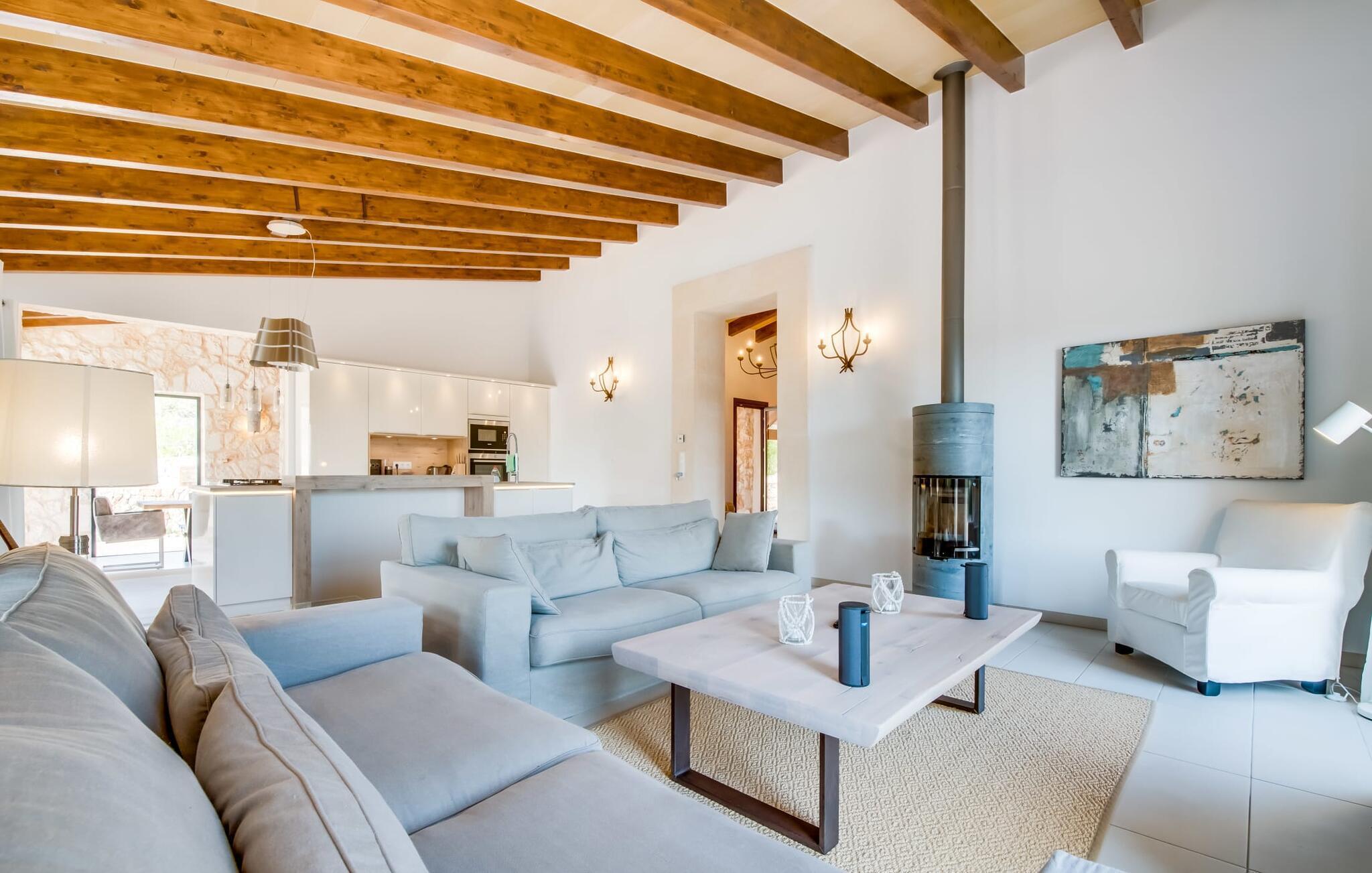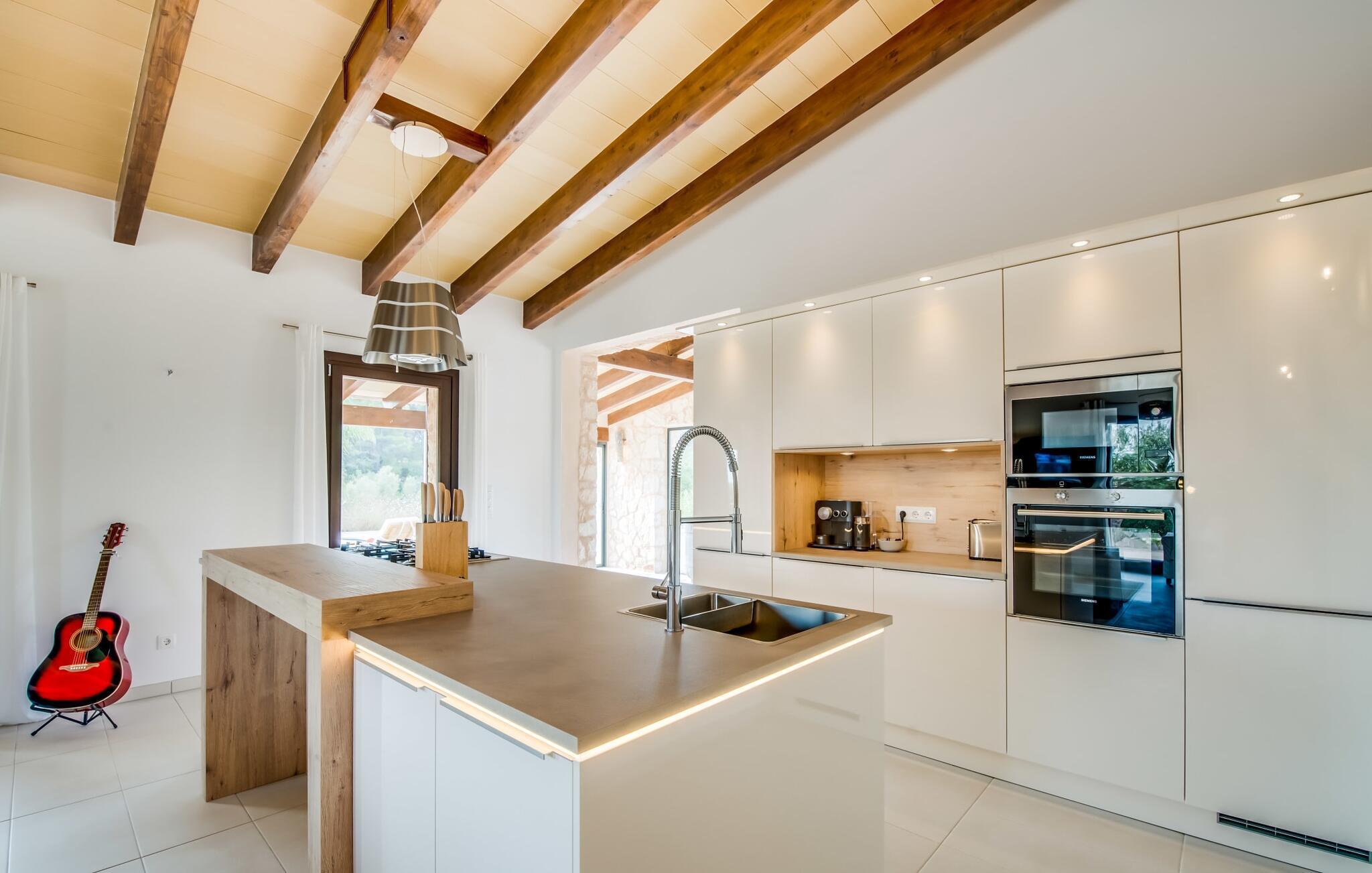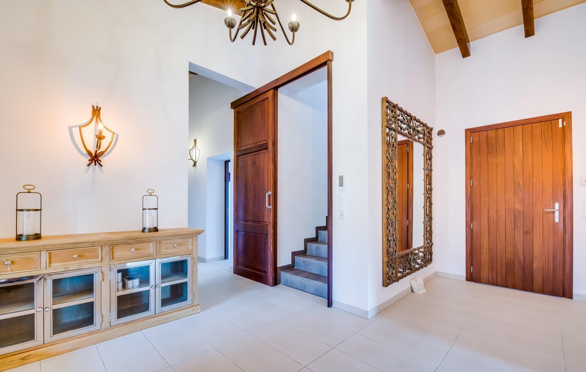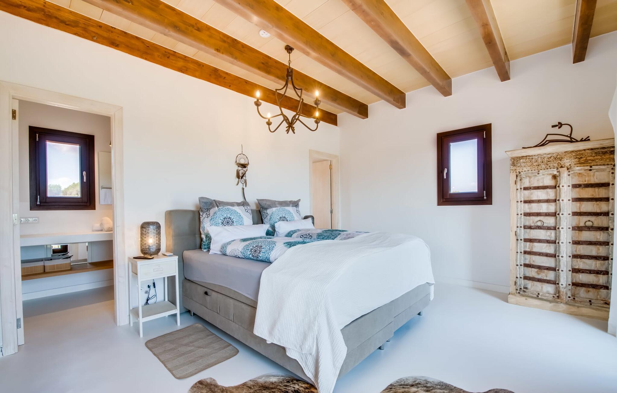 Mit einer eleganten Kombination aus klassischem Naturstein und modernem Interieur wird Sie dieses Bauernhaus verzaubern. Moderne Fliesenböden, Möbel, stilvolle Beleuchtung, zahlreiche gerade Linien und eine sehr harmonische Farbgebung schaffen ein gemütliches und elegantes Ambiente, in dem Sie sich wie zu Hause fühlen. Im Erdgeschoss befinden sich eine voll ausgestattete, zum Wohnzimmer offene Küche, ein Esszimmer, drei komfortabel eingerichtete Doppelschlafzimmer mit eigenem Bad und eine Sauna. Ein weiteres schönes Doppelzimmer mit Bad en Suite rundet den großzügigen Komfort dieses gemütlichen Bauernhauses ab, das wir ohne Bedenken weiterempfehlen. Das Bauernhaus „La Fuente de Montuiri“ liegt im Zentrum Mallorcas, nur etwa 5 km vom charmanten Dorf Montuiri entfernt. Das Haus wurde auf einem 15.000 m² großen Grundstück erbaut und bietet einen herrlichen Blick auf die umliegende Natur. Der nächste Strand, Platja de Sa Rapita, ist etwa 26 km entfernt. S'Arenal, Caló de Sant Antoni und Es Freu de Ses Covetes liegen in ähnlicher Entfernung.
