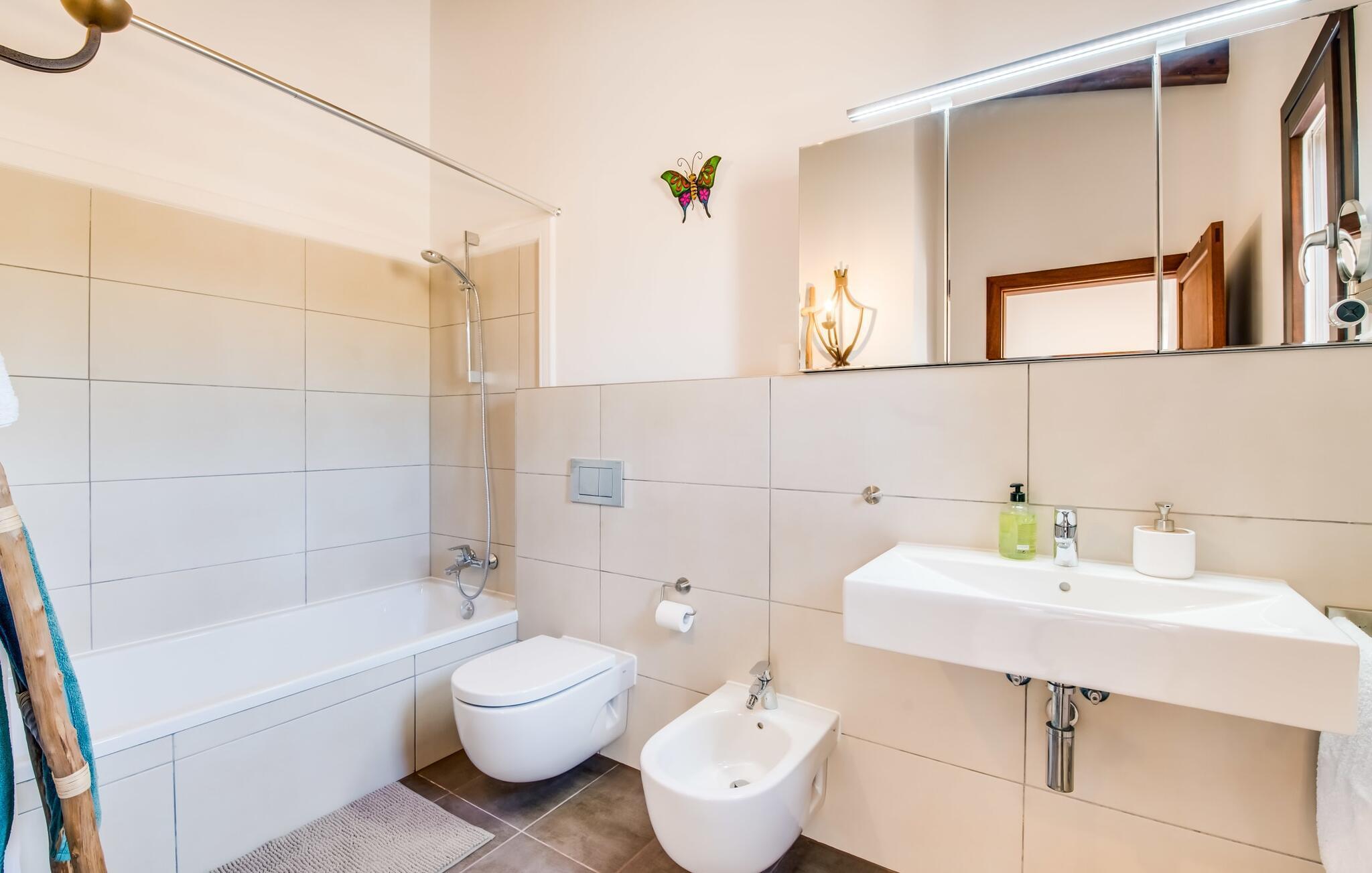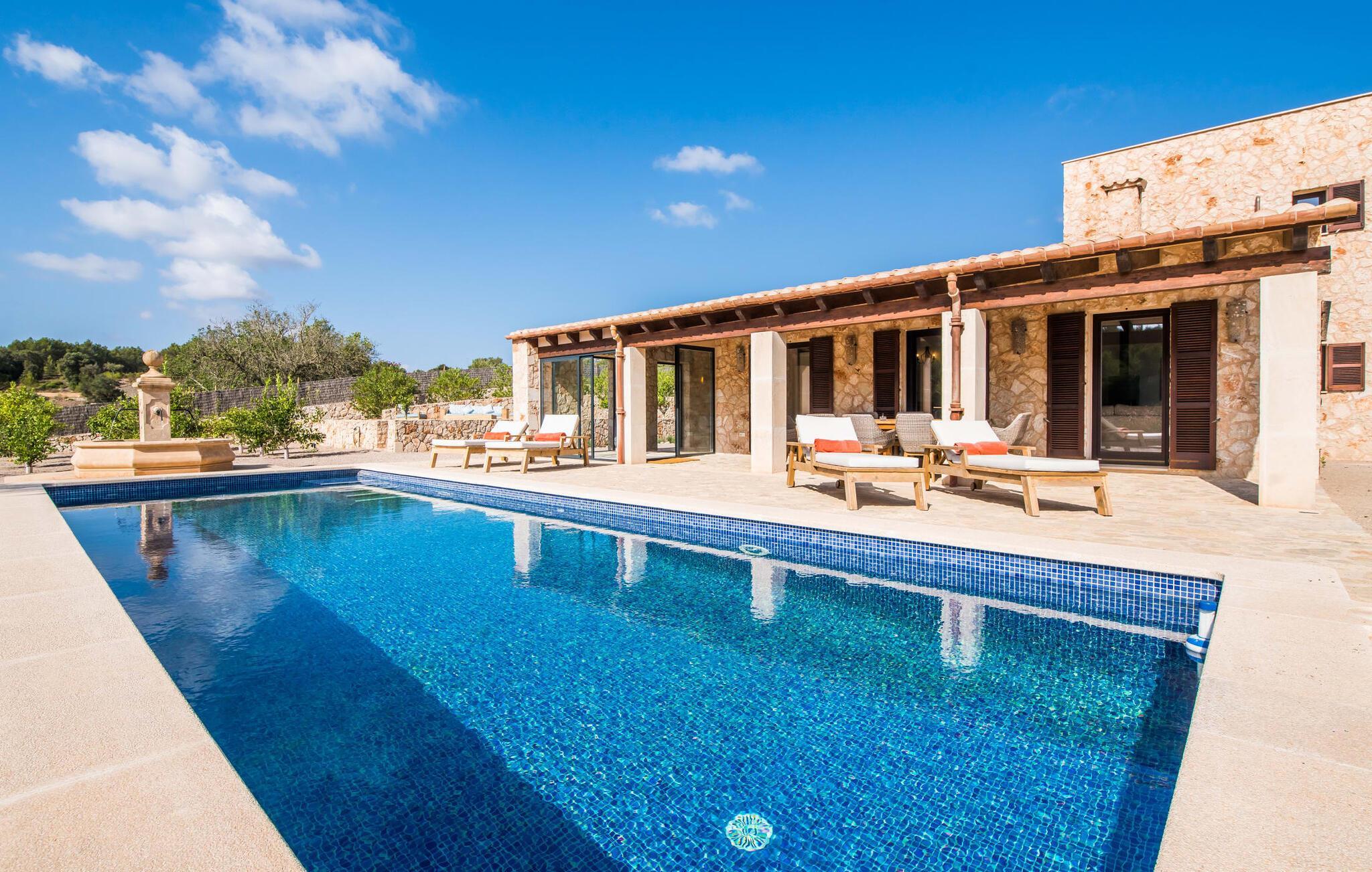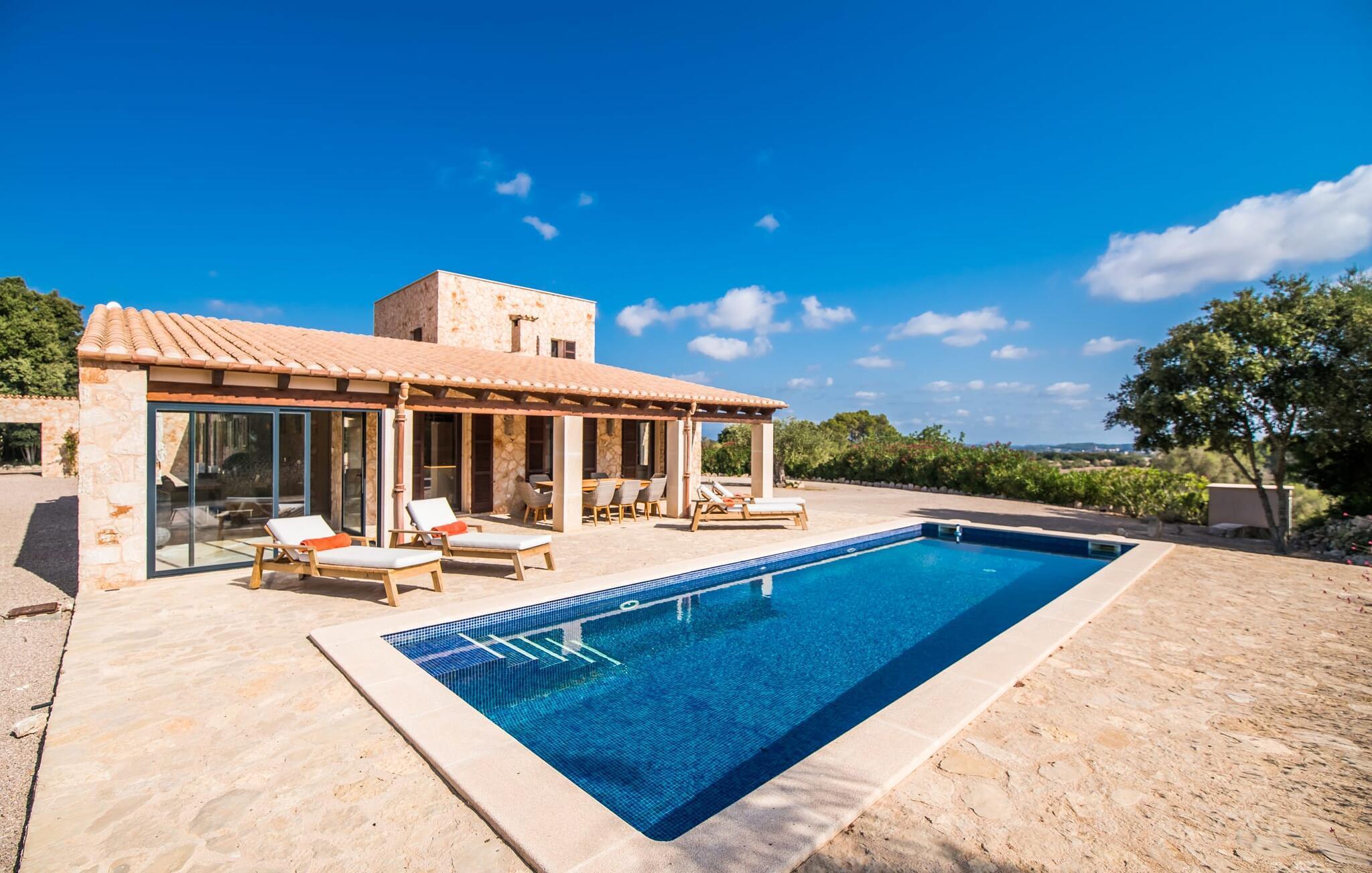 Mit einer eleganten Kombination aus klassischem Naturstein und modernem Interieur wird Sie dieses Bauernhaus verzaubern. Moderne Fliesenböden, Möbel, stilvolle Beleuchtung, zahlreiche gerade Linien und eine sehr harmonische Farbgebung schaffen ein gemütliches und elegantes Ambiente, in dem Sie sich wie zu Hause fühlen. Im Erdgeschoss befinden sich eine voll ausgestattete, zum Wohnzimmer offene Küche, ein Esszimmer, drei komfortabel eingerichtete Doppelschlafzimmer mit eigenem Bad und eine Sauna. Ein weiteres schönes Doppelzimmer mit Bad en Suite rundet den großzügigen Komfort dieses gemütlichen Bauernhauses ab, das wir ohne Bedenken weiterempfehlen. Das Bauernhaus „La Fuente de Montuiri“ liegt im Zentrum Mallorcas, nur etwa 5 km vom charmanten Dorf Montuiri entfernt. Das Haus wurde auf einem 15.000 m² großen Grundstück erbaut und bietet einen herrlichen Blick auf die umliegende Natur. Der nächste Strand, Platja de Sa Rapita, ist etwa 26 km entfernt. S'Arenal, Caló de Sant Antoni und Es Freu de Ses Covetes liegen in ähnlicher Entfernung.