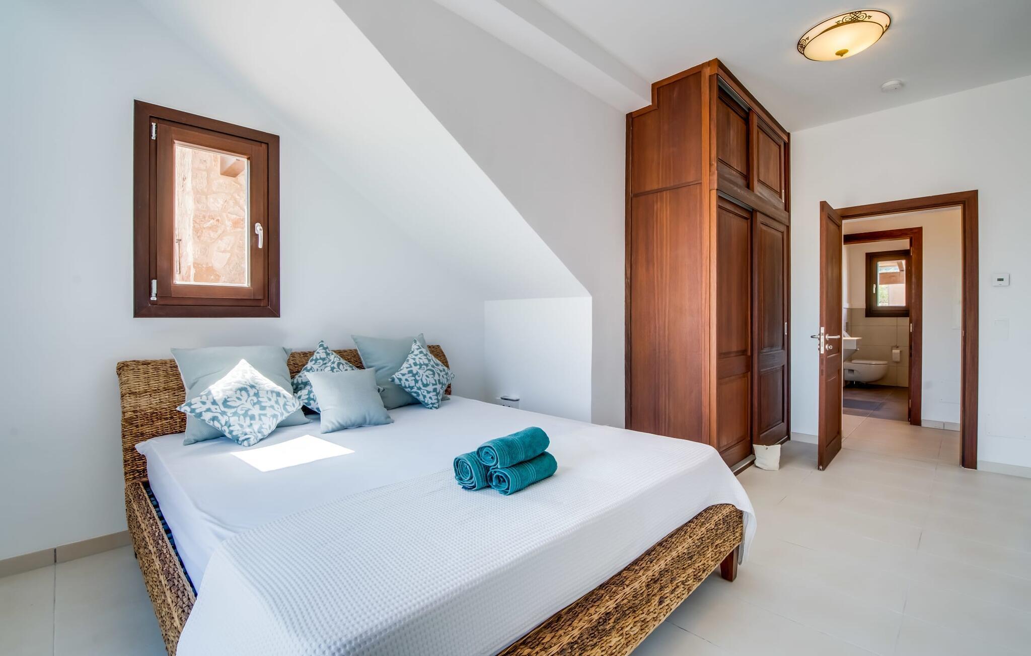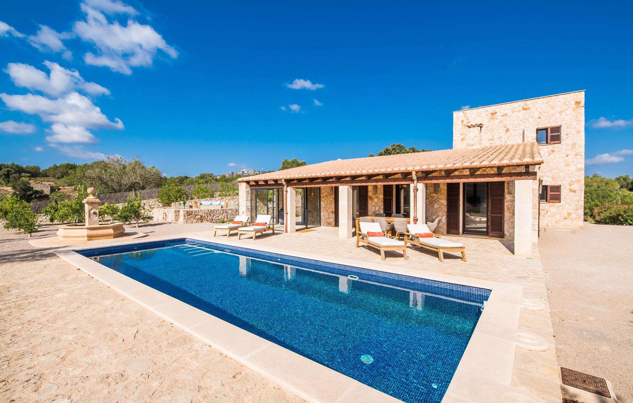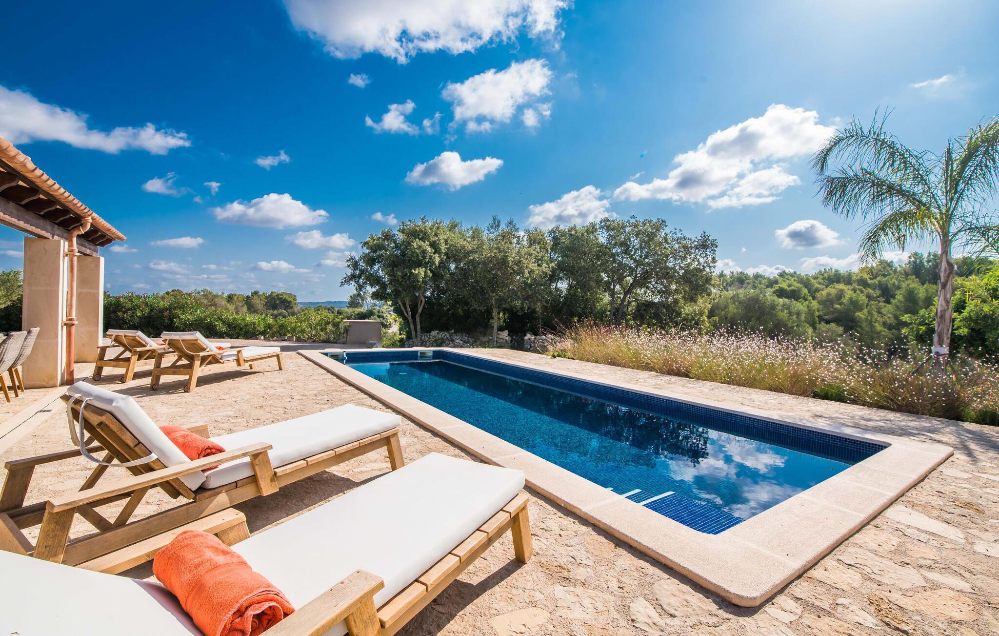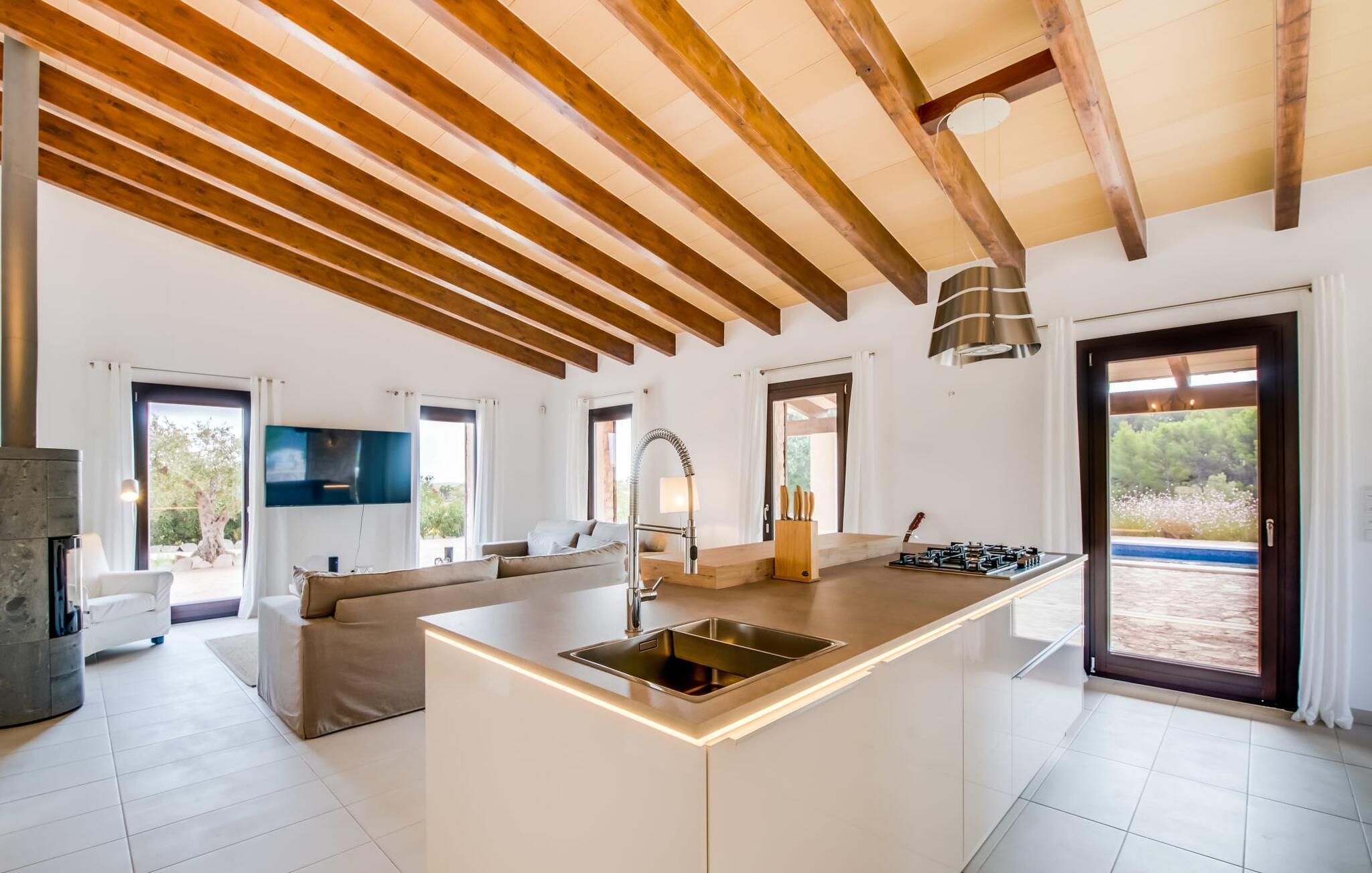 Mit einer eleganten Kombination aus klassischem Naturstein und modernem Interieur wird Sie dieses Bauernhaus verzaubern. Moderne Fliesenböden, Möbel, stilvolle Beleuchtung, zahlreiche gerade Linien und eine sehr harmonische Farbgebung schaffen ein gemütliches und elegantes Ambiente, in dem Sie sich wie zu Hause fühlen. Im Erdgeschoss befinden sich eine voll ausgestattete, zum Wohnzimmer offene Küche, ein Esszimmer, drei komfortabel eingerichtete Doppelschlafzimmer mit eigenem Bad und eine Sauna. Ein weiteres schönes Doppelzimmer mit Bad en Suite rundet den großzügigen Komfort dieses gemütlichen Bauernhauses ab, das wir ohne Bedenken weiterempfehlen. Das Bauernhaus „La Fuente de Montuiri“ liegt im Zentrum Mallorcas, nur etwa 5 km vom charmanten Dorf Montuiri entfernt. Das Haus wurde auf einem 15.000 m² großen Grundstück erbaut und bietet einen herrlichen Blick auf die umliegende Natur. Der nächste Strand, Platja de Sa Rapita, ist etwa 26 km entfernt. S'Arenal, Caló de Sant Antoni und Es Freu de Ses Covetes liegen in ähnlicher Entfernung.