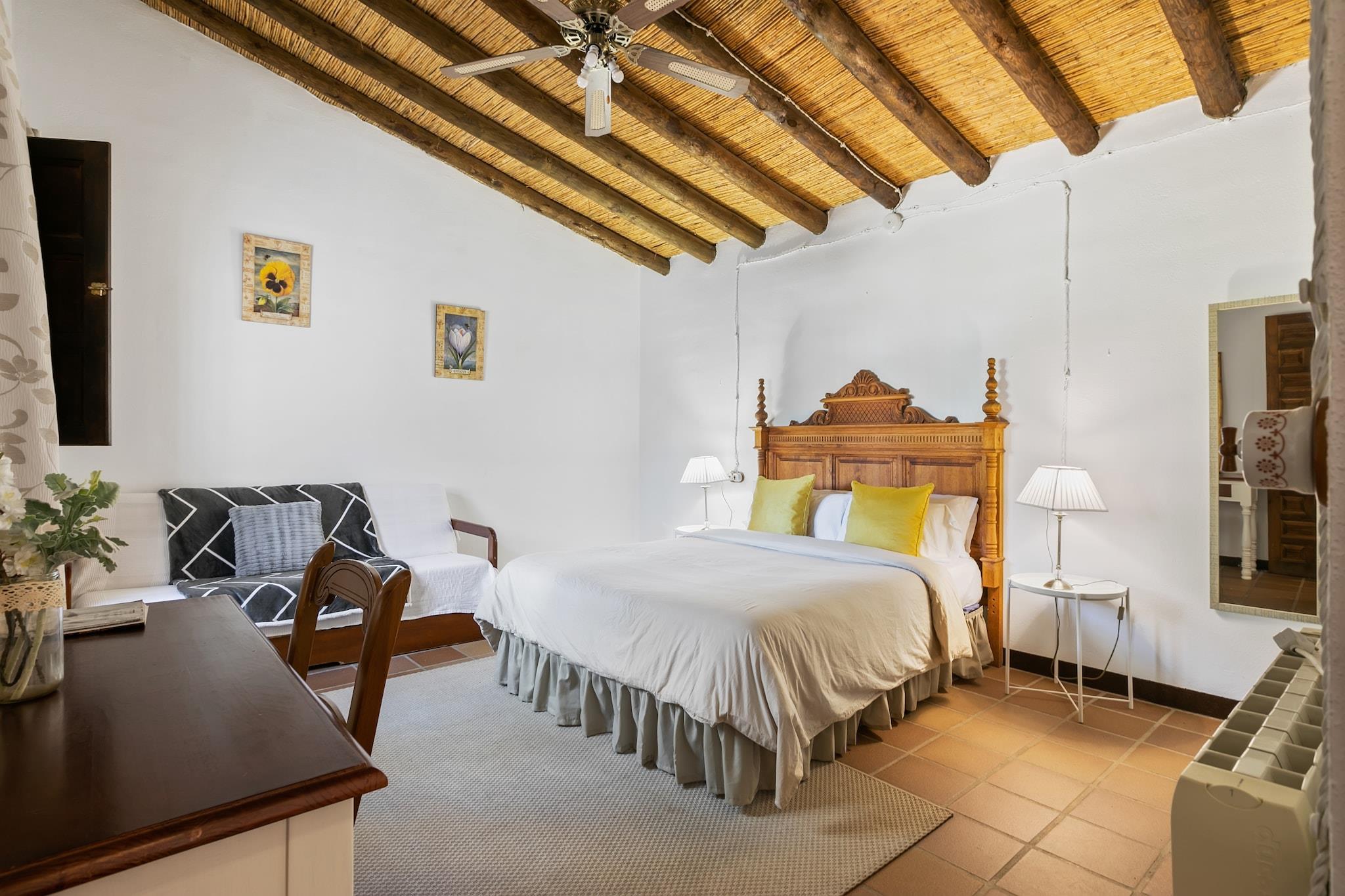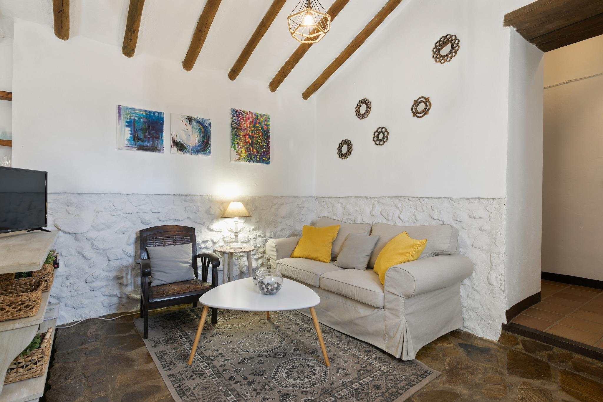 Ein im traditionellen Stil restauriertes, rustikales Ferienhaus. Das Häuschen hat Decken mit Holzbalken und Steinböden und liegt im Süden des Naturparks "El Torcal de Antequera", 2 km von dem Dorf La Joya entfernt. Das Haus liegt auf einem umzäunten Landgut von 15.000m2, zusammen mit zwei anderen Ferienhäuser. Alle Häuser sind weit genug voneinander entfernt, sodass Sie ganz ungestört sind. Es hat einen großen Garten und von der Terrasse aus haben Sie einen atemberaubenden Blick auf die Naturparks "Montes de Málaga", "Sierra de Las Nieves" und die vielen weißen Dörfer im "Guadalhorce"-Tal. Bei klarer Sicht können Sie sogar die Küste Afrikas am Horizont sehen. Das Haus befindet sich ganz in der Nähe des Golfplatzes von Antequera. Das Ferienhaus ist der perfekte Ausgangspunkt für schöne Ausflüge. Besuchen Sie die Hauptstadt der Costa del Sol, Málaga (45km) mit dem Hafen und den vielen Stränden. Weitere Tagesausflugsziele: Granada (105km), Sierra Nevada, Antequera (15km), Cordoba (120km) und Sevilla (185km). Entdecken Sie die Traditionen, Kultur und Gastronomie des echten Spaniens!