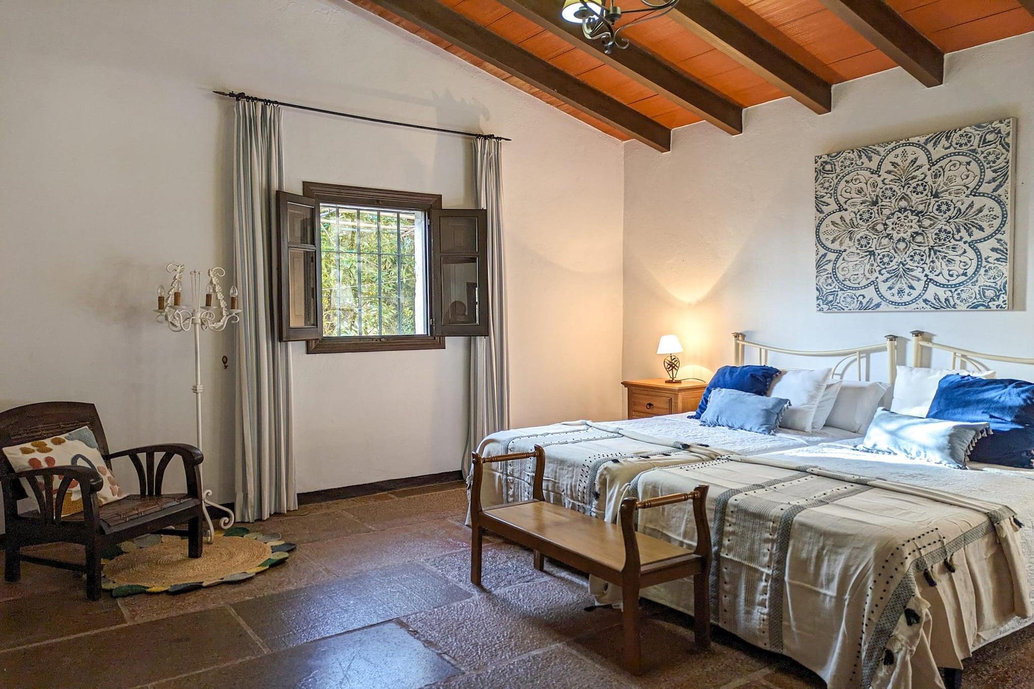 Casa "El Encinar" liegt in der Region El Torcal de Antequera in Andalusien und ist eine elegante Villa mit privatem Swimmingpool, die vor kurzem in einem rustikalen Stil hergerichtet wurde, wobei traditionelle Materialien verwendet wurden, wie Terracotta-Böden, Balkendecken, Holz und Schmiedearbeiten. Wie der Name des Hauses El Encinar angibt, ist es von jahrhundertealten Eichenwäldern umgeben. Die Villa liegt an einem besonderen Ort auf einem Hügel, mit einem spektakulären Blick auf die Umgebung. Das Casa Rural steht auf einem eigenen Grundstück. Von der Terrasse aus können Sie verschiedene Naturgebiete sehen, wie die Serranía de Ronda, die Sierra de las Nieves, das Guadalhorce-Tal, ein Stück des Mittelmeers, Málaga und seine Berge und zum Schluss die Sierra Tejeda und Almijara. Die Villa ist nur 15 Min. von der Stadt Antequera entfernt und der ideale Ausgangspunkt zum Entdecken Andalusiens. Granada mit der berühmtem Alhambra ist eine Autostunde entfernt, das malerische Ronda und die Stadt Córdoba anderthalb Autostunden und Sevilla ist ca. 2 Autostunden entfernt. Der perfekte Urlaubsort für alle, die Ruhe und Erholung suchen und die Natur lieben. Kurzum: ein Haus mitten in der Natur, zentral gelegen in Andalusien und in dem Sie sich herrlich erholen und die fantastische Aussicht genießen können!
