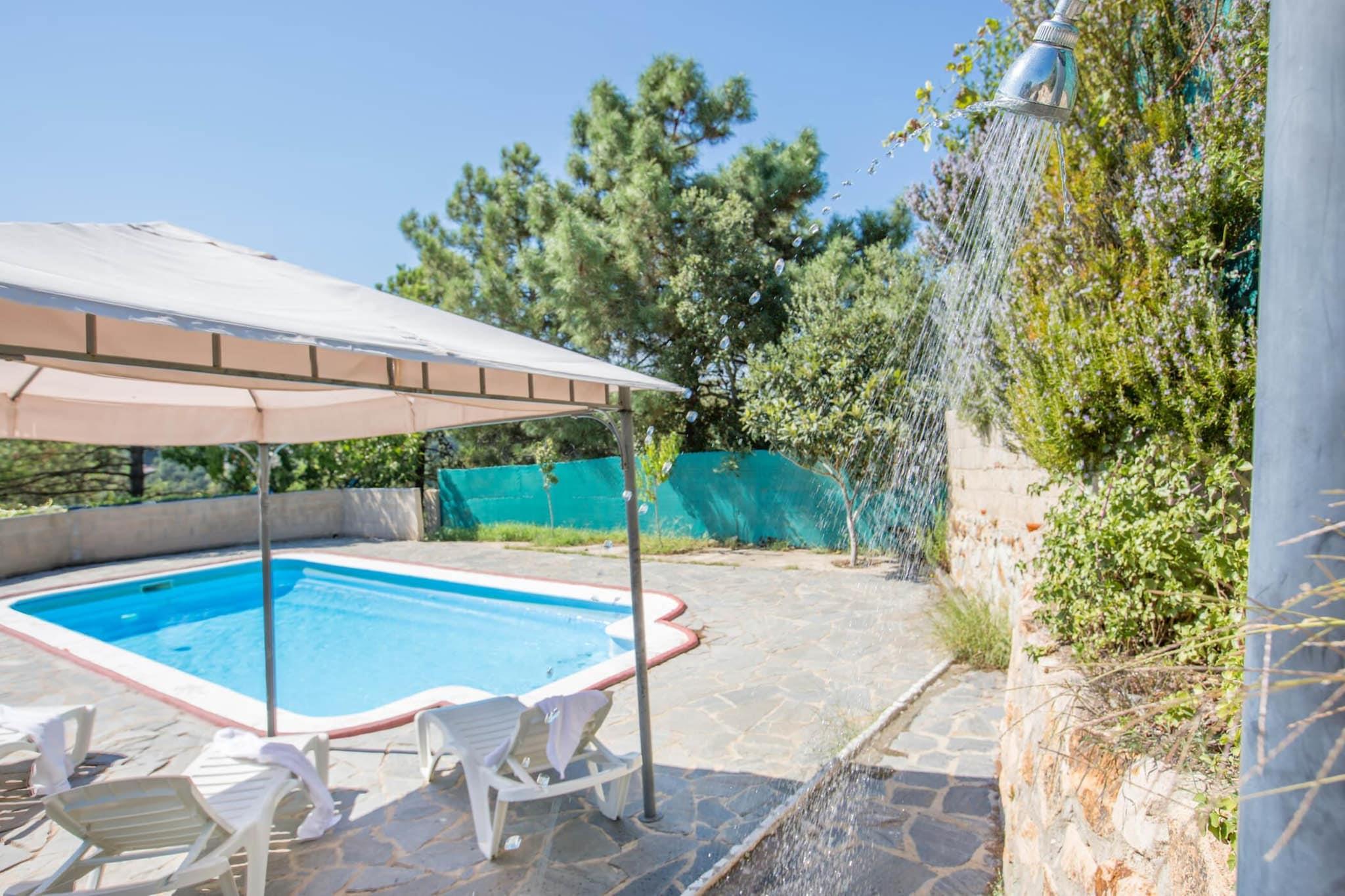 Wohnzimmer(TV, Esstisch, Sitzecke), Küche(Mikrowelle, Spülmaschine, Kühlschrank, Tiefkühlschrank), Schlafzimmer(Doppelbett(135 x 180 cm)), Schlafzimmer(Einzelbett(80 x 180 cm), Einzelbett(80 x 180 cm)), Schlafzimmer(Einzelbett(80 x 180 cm), Einzelbett(80 x 180 cm)), Badezimmer(Badewanne), Badezimmer(Badewanne), Internet, Waschmaschine, Terrasse, Grill, Parkplatz, Pool(alleinige Nutzung)