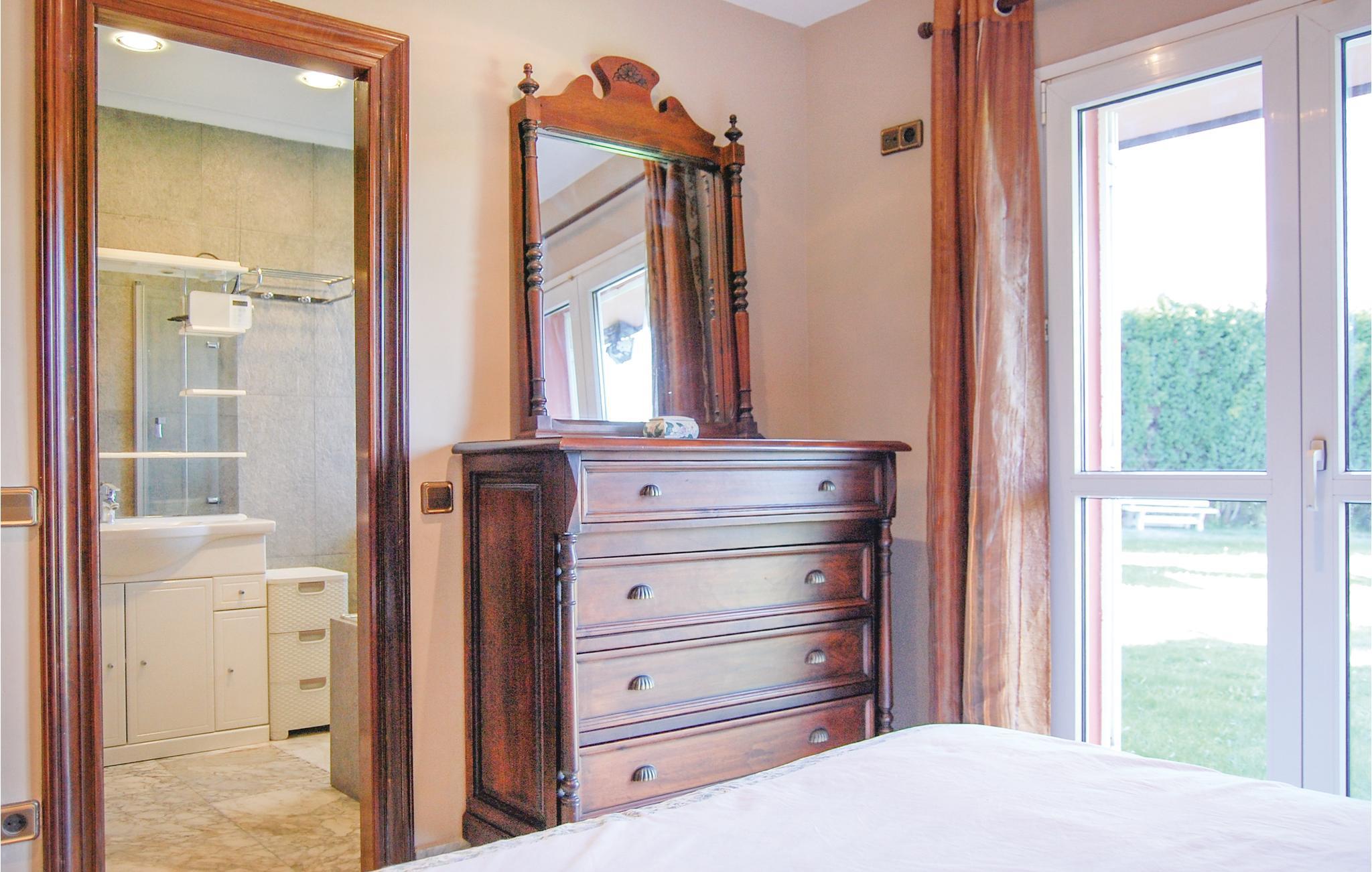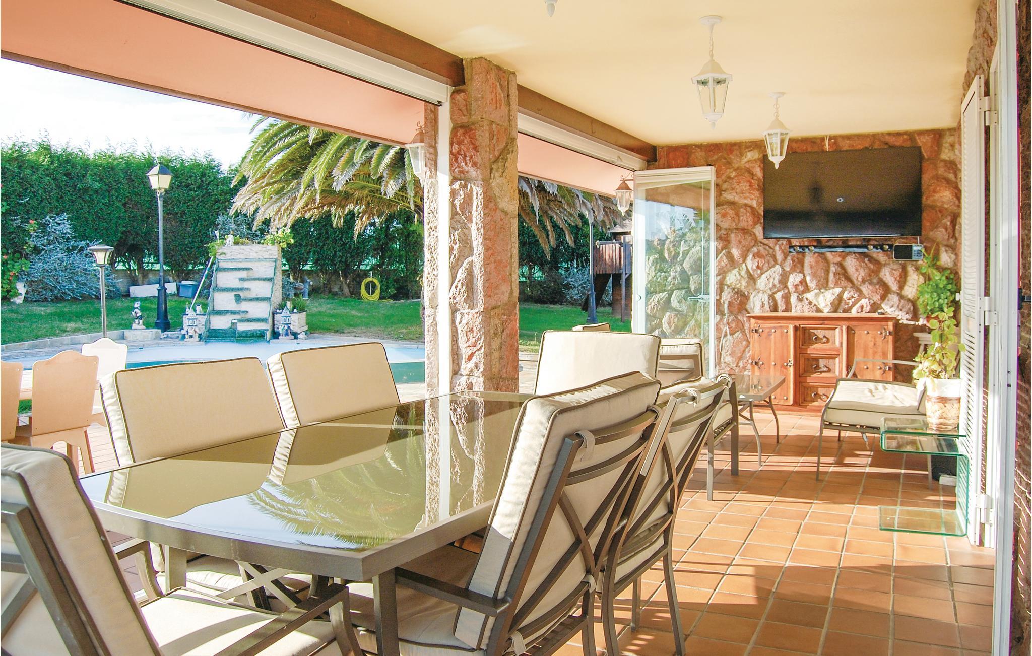 Das Anwesen verfügt über 3 geräumige Schlafzimmer, von denen aus man direkt in den Garten gelangt. Zudem gibt es zwei Duschbäder, ein Wohn-/Esszimmer mit Kamin, eine komplett ausgestattete, separate Küche, eine überdachte Terrasse, die sich bei gutem Wetter vollständig öffnen lässt, sowie eine Außenterrasse für Mahlzeiten unter freiem Himmel mit Blick auf die Küste. Im Wohnzimmer und auf der überdachten Terrasse erwarten Sie jeweils ein großer Flachbildfernseher.