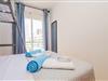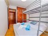 Das Schlafzimmer verfügt über ein Stockbett für drei Personen, mit einem Doppelbett unten und einem Außenfenster, das gute natürliche Beleuchtung und Stadtblicke bietet. Zusätzlich verfügt es über einen eingebauten Schrank, um Ihr Gepäck ordentlich zu halten. Das Badezimmer hat eine kleine Badewanne für Ihren Komfort.