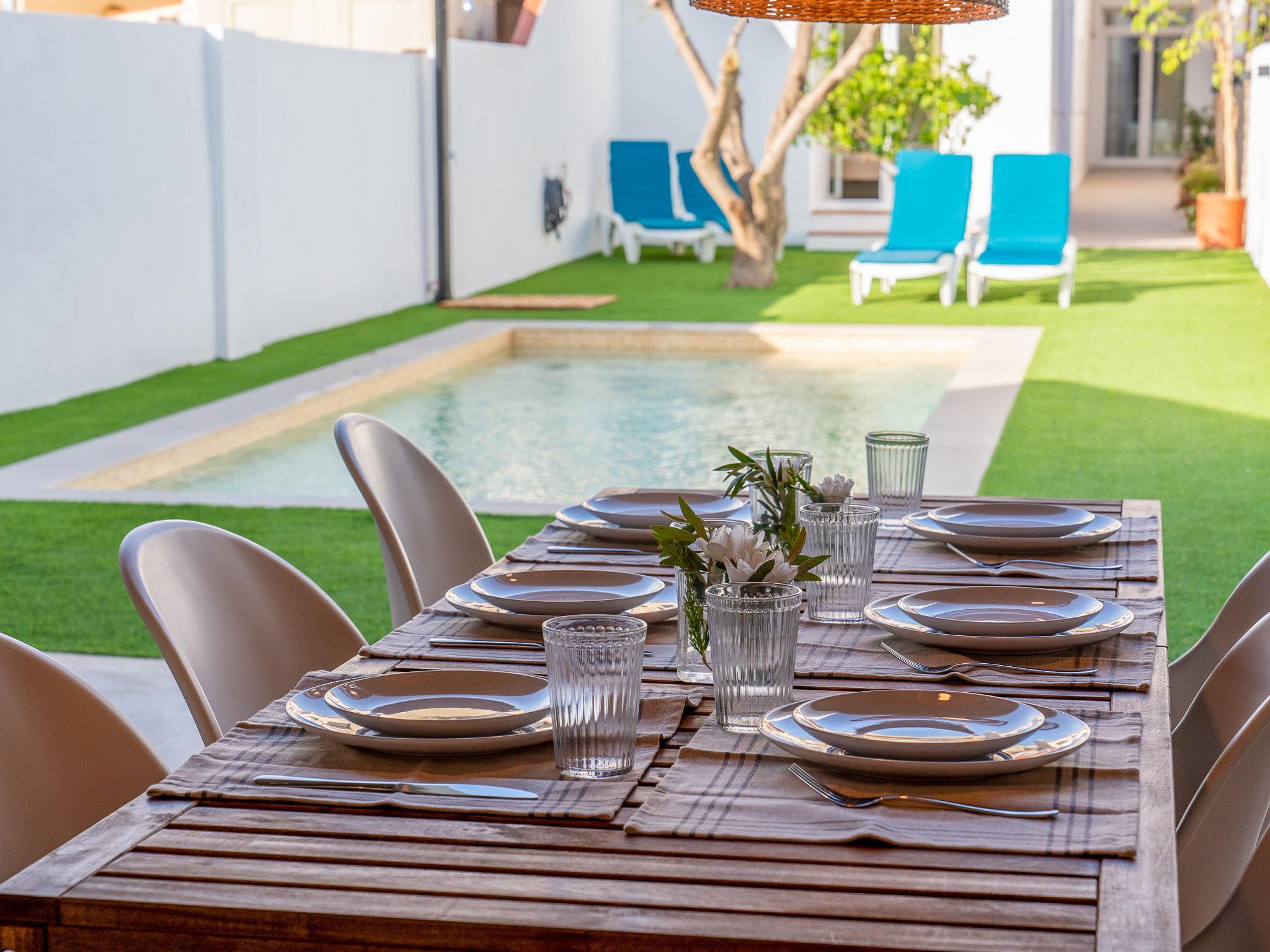 "Rita", 4-Zimmer-Reihenhaus 137 m2. Komfortabel und modern eingerichtet: Wohn-/Esszimmer mit Esstisch und Digital-TV. 1 Zimmer mit 1 franz. Bett (160 cm, Länge 200 cm), E-Heizung und Klimaanlage. Ausgang zum Garten. 1 Zimmer mit 2 Betten (90 cm, Länge 200 cm), E-Heizung und Klimaanlage. 1 Zimmer mit 1 Bett (80 cm, Länge 200 cm), 1 x 2 Etagenbetten (90 cm, Länge 200 cm), E-Heizung und Klimaanlage. Offene Küche (Backofen, Geschirrspüler, 4 Induktionskochplatten, Toaster, Wasserkocher, Mikrowelle, elektrische Kaffeemaschine, Kapseln für die Kaffeemaschine (Nespresso) extra). 3 Duschen/WC. Gartensitzplatz. Terrassenmöbel, Gartengrill, Liegestühle. Zur Verfügung: Waschmaschine, Bügeleisen, Kinderhochstuhl, Babybett bis 2 Jahre, Haartrockner. Internet (WLAN, gratis). Garage (1 Auto). E-Ladestation. Bitte beachten: geeignet für Familien. Nichtraucher-Haus. HUTB-065983 // Reg. Nr.: ESFCTU00000809800028960200000000000000000HUTB-0659837