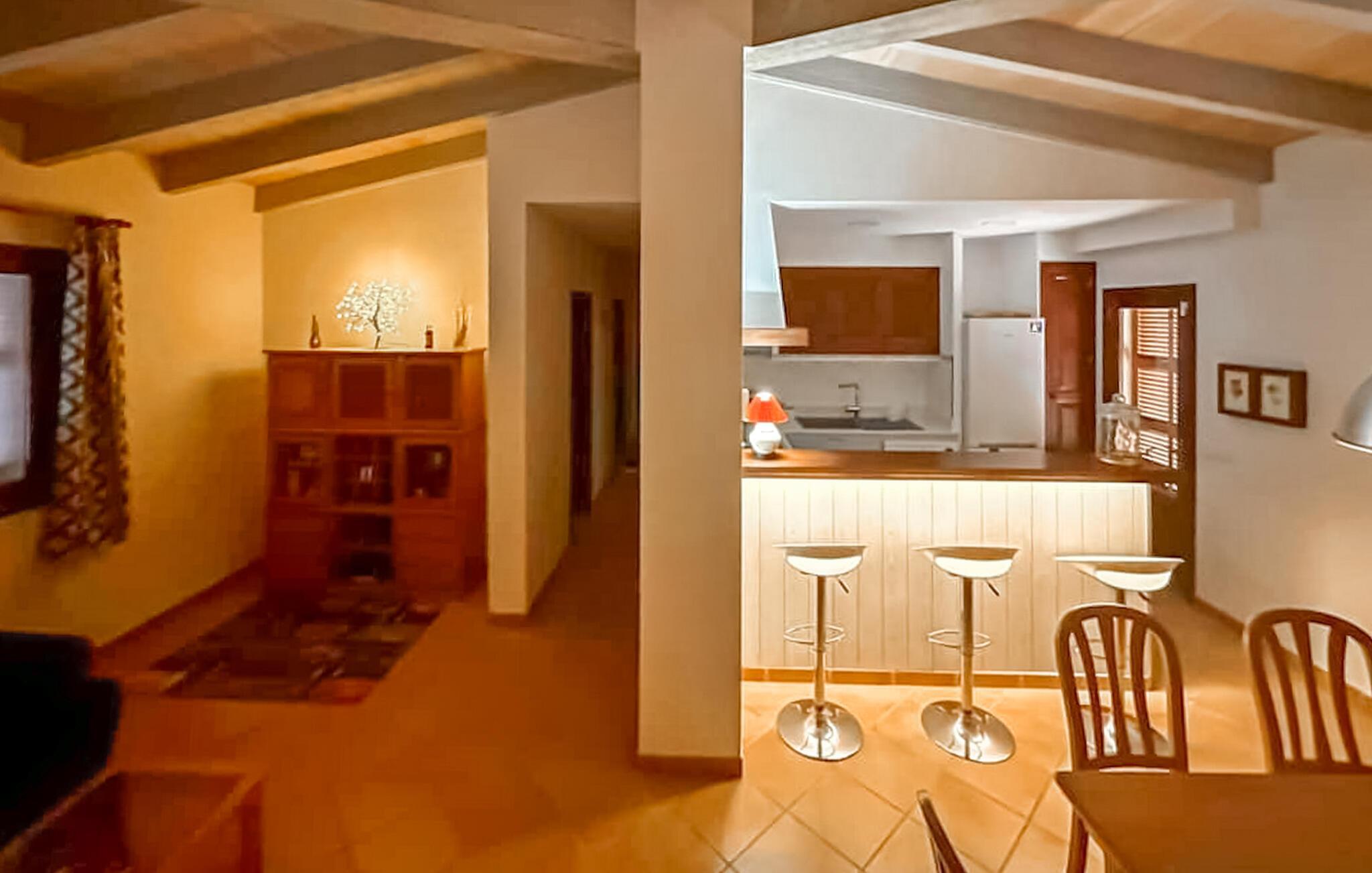 Im Erdgeschoss finden Sie einen offenen Wohnbereich mit Wohnzimmer, Esszimmer und einer modernen Küche mit Frühstückstheke. Der Wohnbereich und vier gemütliche Doppelzimmer sind klimatisiert. Kostenloses WLAN und Parkplätze vor Ort sind ebenfalls verfügbar. „Villa MallorCasita“ empfiehlt sich für Strandliebhaber, Familien, Freundesgruppen und Aktivurlauber, mit oder ohne Kinder. Haustiere sind willkommen.