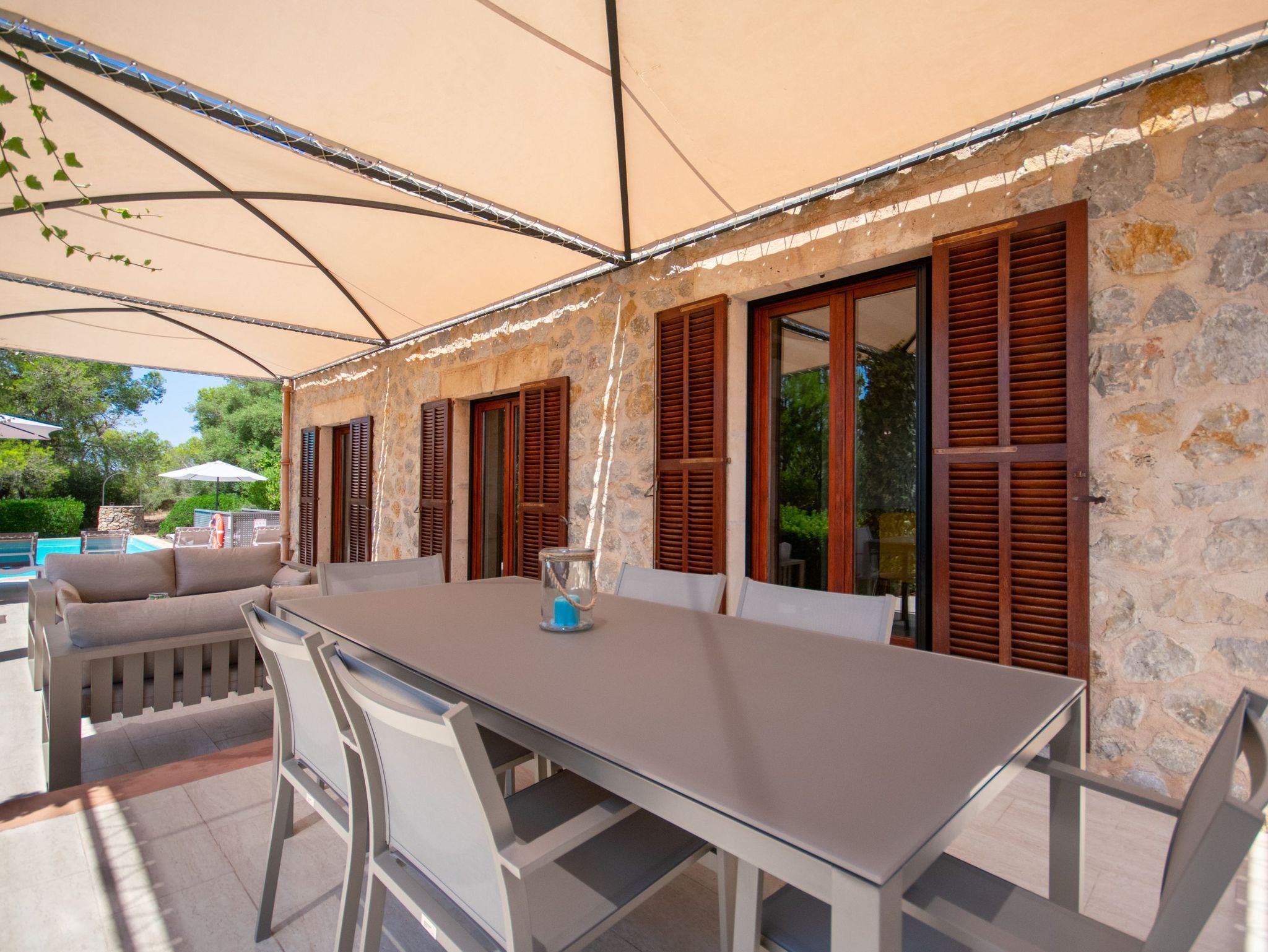 Perfekte Lage für Unternehmungen auf Mallorca: Tauchen in Portocolom, Golfen auf dem nahegelegenen Golfplatz Pula, Strandtage an den Stränden von Calas de Mallorca oder für Tennisfans: Besuch des Rafa Nadal Museums und Nutzung eines eigenen Tennisplatzes. Nach einem aktiven Tag können Sie auf der überdachten Terrasse entspannen und die herrliche Aussicht genießen.