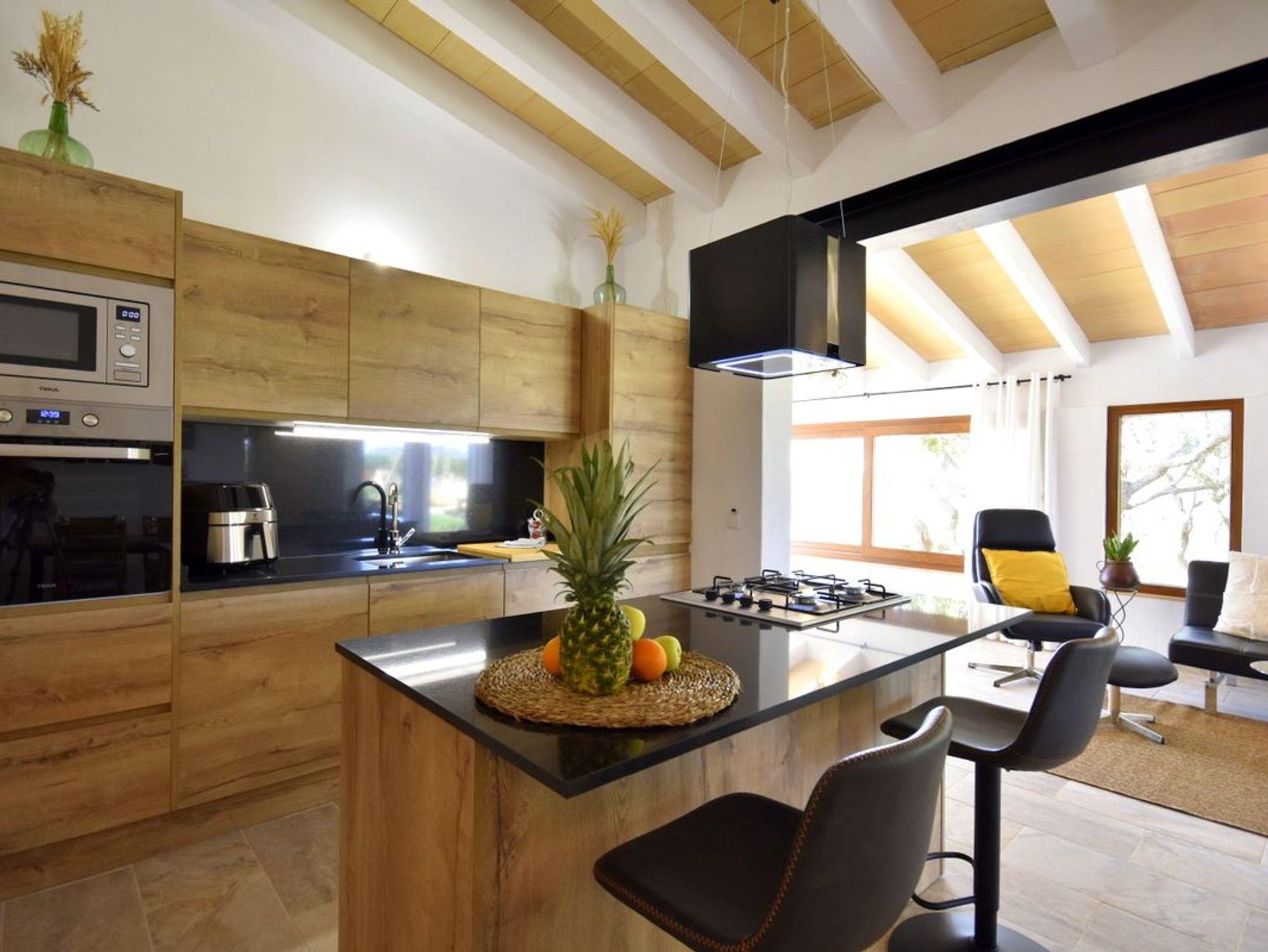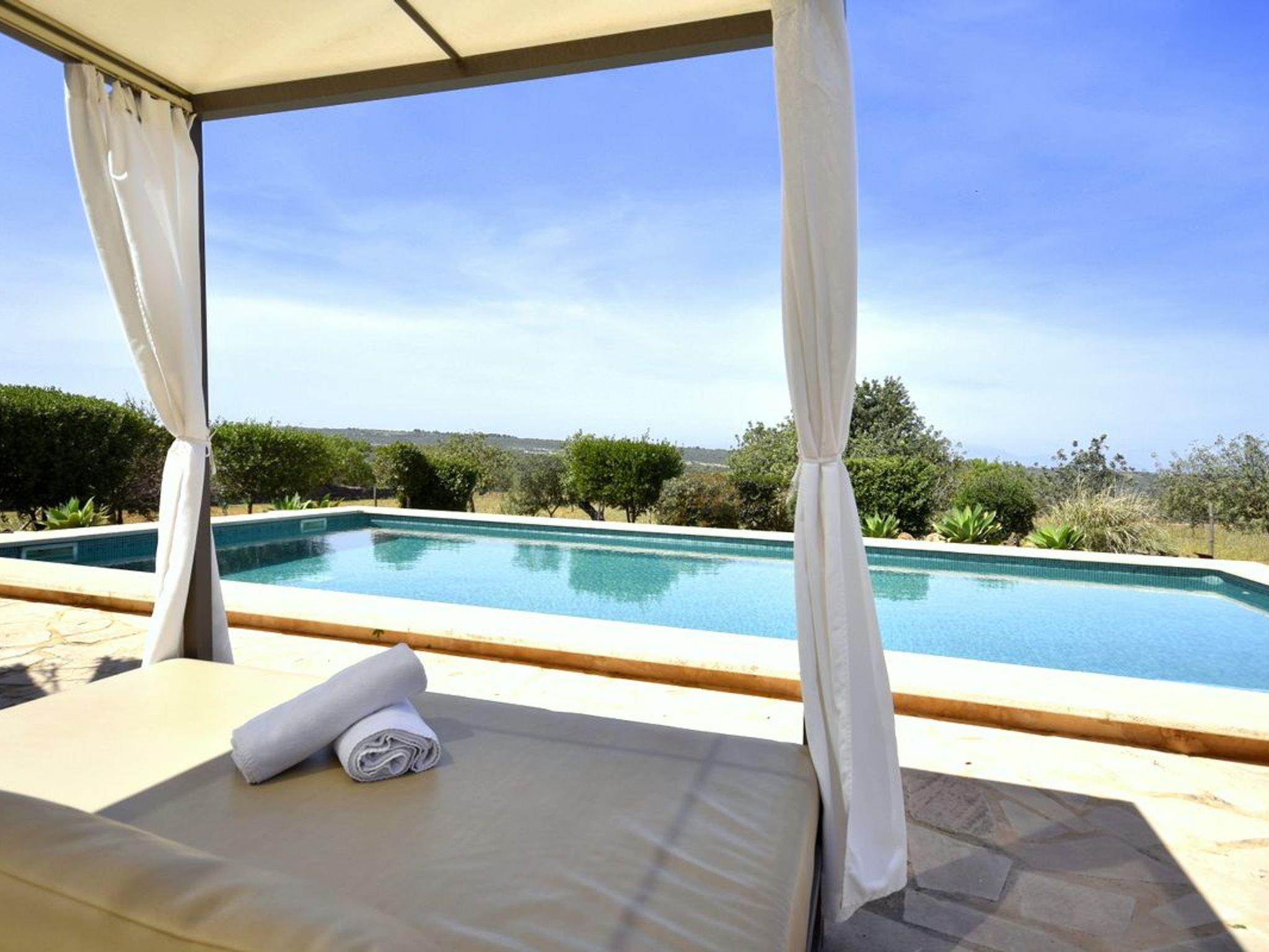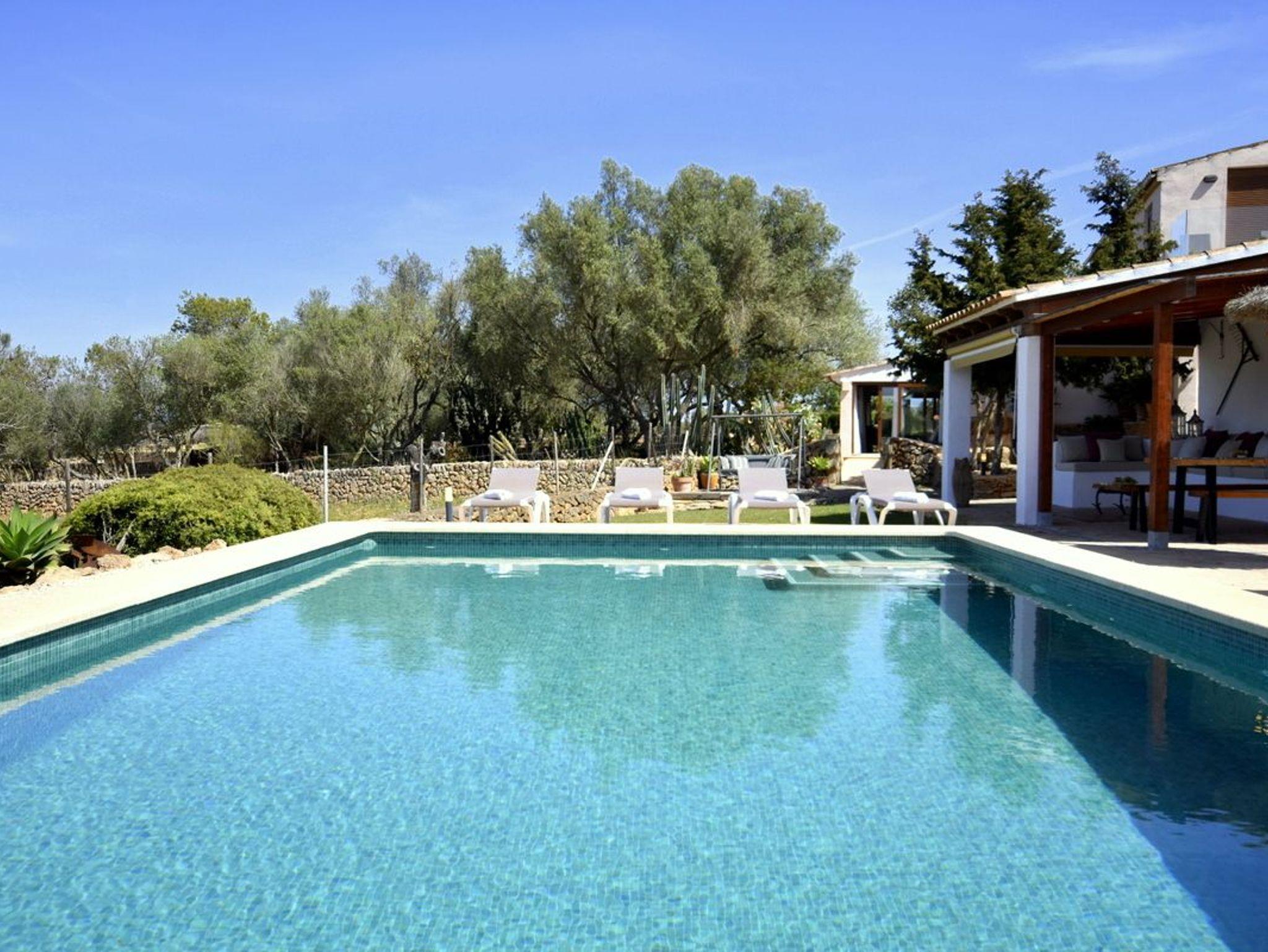 Romantische Finca Ses Cases (ehmalig Son Sureda): Die ländliche, sehr ruhige Lage mit Traumblick über die Insel bis zum Tramuntanagebirge vermittelt vom ersten Moment an ein Gefühl der Geborgenheit und Entspannung. Mit dem eigenen Gartenbereich, den Schafen auf den angrenzenden Feldern und den Vögeln in den Bäumen entsteht der Eindruck fern ab jeder Zivilisation zu sein, obwohl Mallorcas zweitgrößte Stadt Manacor in nur 10 Minuten und der kleien Badeort Colonia de Sant Pere in 15 Minuten zu erreichen sind. Hier hören Sie keine Geräusche, außer die der Natur. Sie betreten das Haus im Wohnbereich mit moderner Küchenzeile selbstverständlich mit Mikrowelle, Geschirrspüler, Kühlschrank und Gefrierfach. Die 3 Doppleschlafzimmer und 2 Badezimmer eines davon in Suite und das andere neben dem Schlafzimmer mit zwei einzel Betten. Direkt vor dem Haus in Richtung Garten gibt es eine Terrasse mit Sitzecke,10 Meter weiter befindet sich die Poolterrasse ebenfalls mit Sitzbereich, Esstisch und gemauertem Grillplatz sowie eine kleine Rasenfläche.