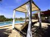 Der Pool steht ausschließlich den Gästen zur Verfügung, ist 5 x 10 Meter groß. Die gemauerten Stufen führen zu einem 1,10 Meter tiefen Bereich. Der Pool fällt bis auf eine Tiefe von 1,80 Meter ab.