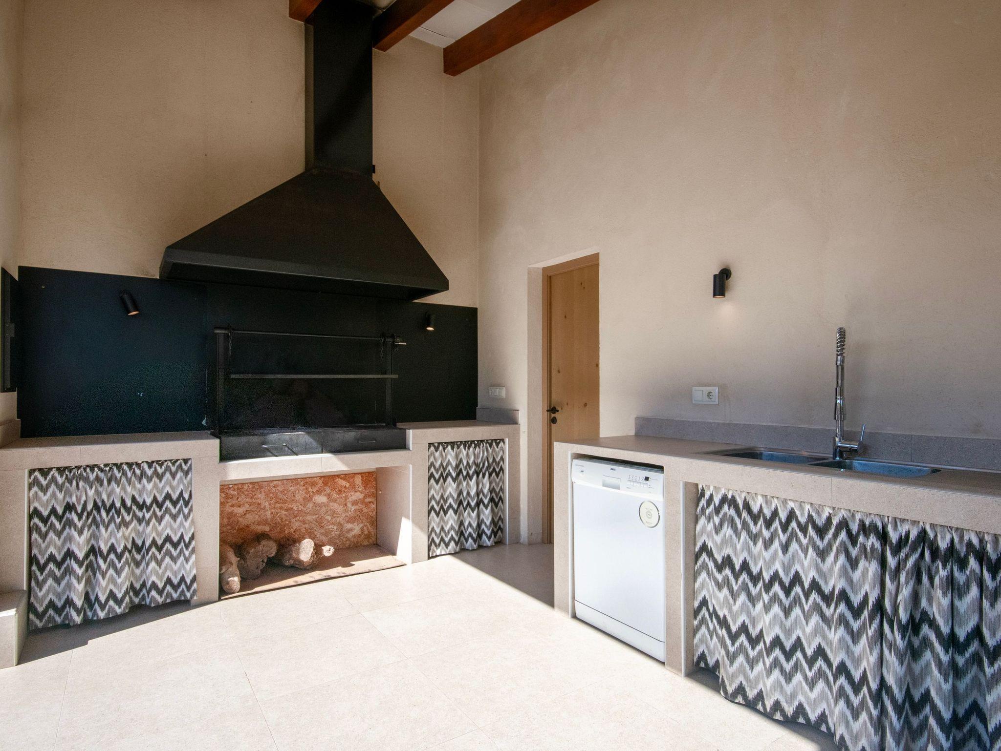 Im Aussenbereich erwartet Sie ein grosser privater Pool in den Massen 5,5m x 12m, eine grosse Rasenfläche mit Sonnenliegen und gemütliche Sitzgelegenheiten, sowie auch ein Pingo-Pong Tisch und natürlich ein mobiler Grill, wo man die Sommer Abende auf Mallorca geniessen kann.
