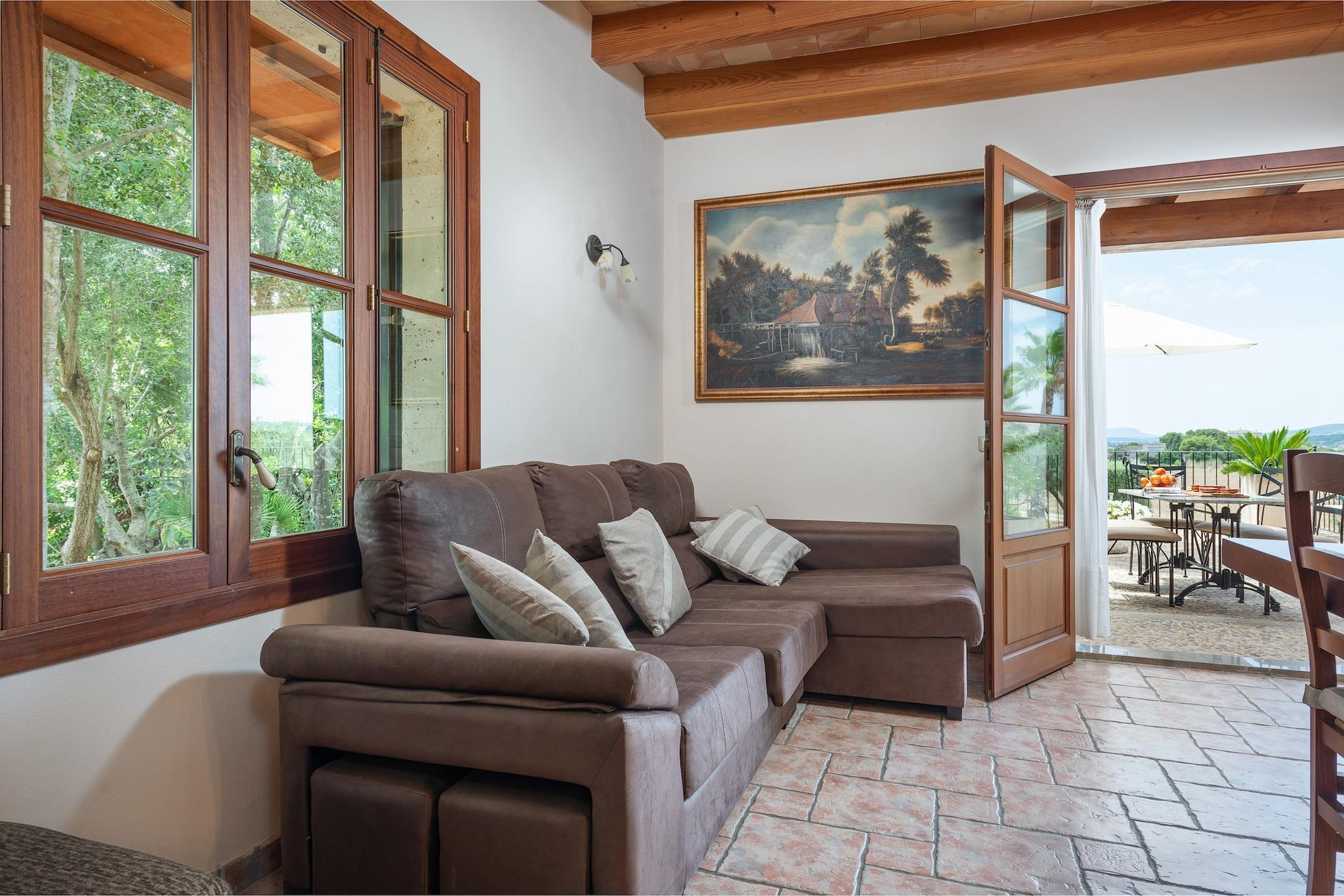 Der gepflegte Garten wird Sie begeistern. Mit dem privaten, erhöhten Pool, er ist mit Frischwasser gefüllt, wird mit Chlor sauber gehalten, misst 7 x 4 Meter und hat eine Tiefe von 1,30 Metern, ist der Spass garantiert. Es gibt 6 Sonnenliegen auf der Terrasse. Die Kinder haben Abwechslung im Spielbereich, während Sie den Tisch auf der Terrasse oder Veranda decken, um die Mahlzeiten im Freien zu geniessen. Es gibt mehrere Terrassen und Ihnen steht ein Gasgrill zur Verfügung. Das 7100 m2 große Grundstück ist nicht eingezäunt und es gibt einige Nachbarn in der Umgebung. Im 2 stöckigen Gebäude betreten Sie im Erdgeschoss einen geräumigen Wohn - Essbereich. Machen Sie es sich gemütlich, schauen Sie ein Programm im Sat TV oder plaudern Sie noch eine Weile, bevor sich Freunde und Familie um den Tisch versammeln. An kühleren Tagen kann mit dem Kamin geheizt werden. Anschliessend kommen Sie in die Küche, mit Gasherd und allen wichtigen Geräten und Utensilien. Die Waschmaschine, Bügeleisen und Bügelbrett befinden sich in der Waschkammer. Alle drei klimatisierten Schlafzimmer liegen im ersten Stock und sind alle mit je einem Doppelbett und Kleiderschrank ausgestattet. Zwei der Schlafzimmer teilen sich eine Terrasse. Es gibt zwei Badezimmer mit Dusche, eines auf jeder Etage. Ein Kinderbett und ein Hochstuhl erden auf Anfrage bereitgestellt, ein Ventilator ist vorhanden. Die Villa liegt 3 km von Manacor entfernt, auf dem Land, ideal für alle die Ruhe in ländlicher Umgebung suchen. Mit dem Auto kommen Sie schnell an den ca. 16km entfernten Sandstrand von Porto Cristo. Der Golfplatz La Reserva Rotana liegt 3,6 km entfernt. Die Pflege des Pools und des Gartens erfolgt an mehreren Tagen in der Woche um 6 Uhr morgens. Haustiere sind nur auf Anfrage erlaubt. Eventuelle Nebenkosten müssen beim Anbieter nachgefragt werden. Haustiere sind verboten. Partys oder ähnliche Veranstaltungen sind nicht gestattet. Es gibt Freiluftparkplätze für 1 Autos. Entfernungen Strand: 16.3 km - Porto Cristo Flughafen: 49.3 km - Son Sant Joan Golfplatz: 3.6 km - La Reserva Rotana Ortsmitte: 3 km - Manacor Bahnhof: 3.9 km - Manacor Bushaltestelle: 2.9 km - Manacor Fähre: 37.2 km - Puerto de Alcúdia Krankenhaus: 2.8 km - Hospital de Manacor Touristen Lizenz: ETV/3599Einheitsregister: ESFCTU00000702300026809900000000000000000000ETV/35994Auf den Balearen gibt es eine Touristensteuer, die Ecotasa genannt wird. Diese Steuer muss vom Gast bezahlt werden. Der zu zahlende Betrag beträgt zwischen 0.55EURO pro Nacht und Gast in der Nebensaison und 2.2EURO pro Nacht und Gast in der Hochsaison. Ab dem 9. Tag reduziert sich die Steuer um die Hälfte. Personen unter 16 Jahren sind davon ausgenommenDie Kaution ist bei Ankuuft direkt an den Eigentümer zu übergeben.