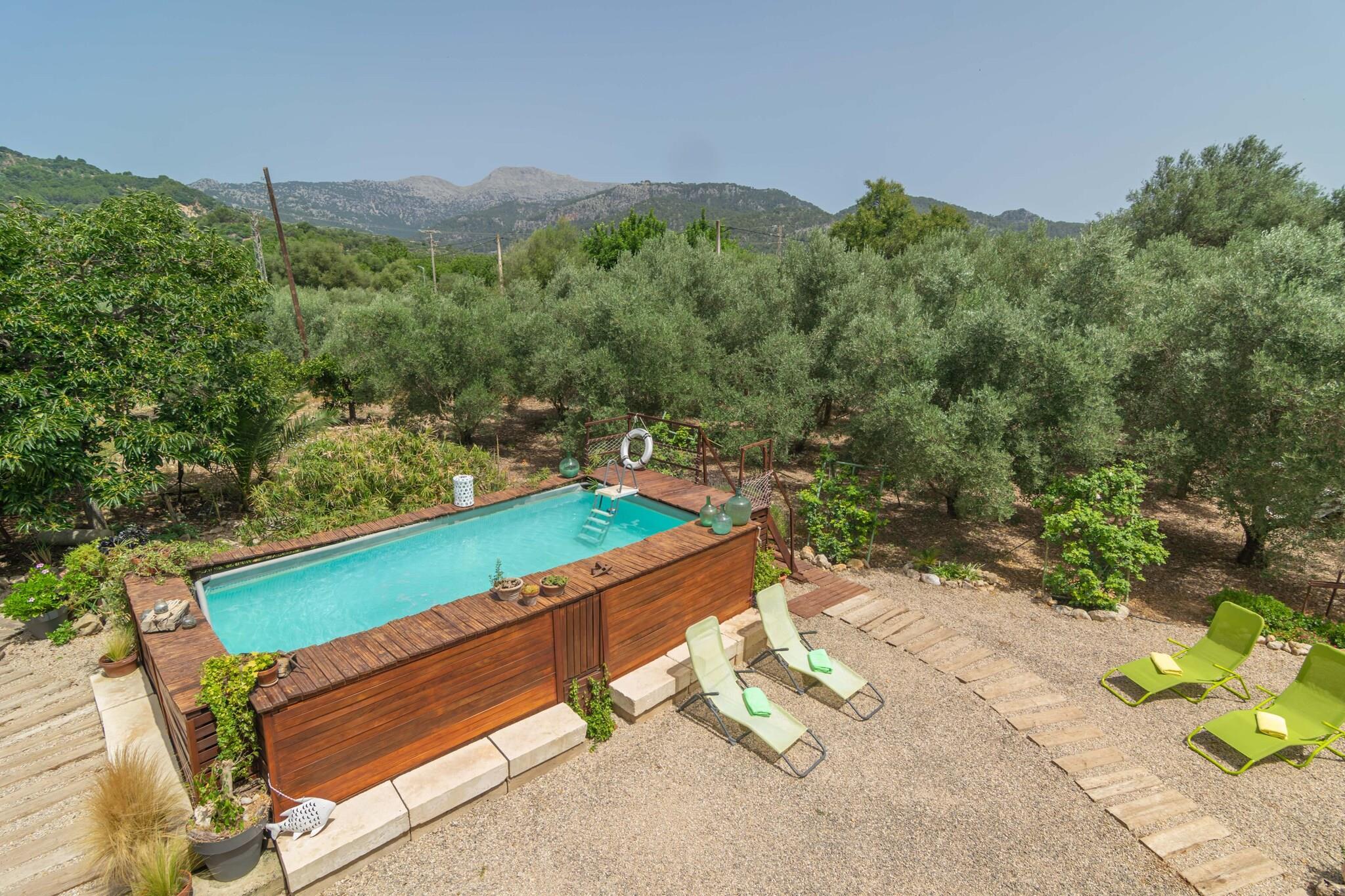 Der Garten des Hauses ist Abwechlungsreich und hat viele Ecken in die man sich auch mal zurückziehen kann. Grün und Naturgarten machen den Bereich des erhöhten, 5 x 3m großen Süßwasserpools attraktiv. Er hat eine Wassertiefe von 1,3m und wird mit Chlor sauber gehalten. Nach dem erfrischenden Bad versprechen 4 Liegen Entspannung. Es gibt eine Gartendusche für die schnelle Abkühlung und Pallentensofas zum Lesen oder Plaudern. Mit einem mobilen Grill verwöhnen Sie Ihre Lieben mit Köstlichkeiten und können die Mahlzeiten auf der möblierten Veranda oder der möblierten Terrasse der ersten Etage im Freien genießen. Das Grundstück ist umzäunt und es gibt Nachbarn. Das Haus ist 2stöckig jedoch verteilen sich die Räume nur in der ersten Etage. Es empfängt Sie ein freundlicher Wohn - Essraum, mit Klimaanlage, mit offener Küche. Ruhen Sie sich einen Augenblick aus oder schauen Sie ein Programm im Sat TV, bevor Sie gemeinsam den Tisch decken oder die Mahlzeiten zubereiten. Sie kochen in der modernen Küche auf einen Cerankochfeld und haben dafür alle nötigen Geräte und Utensilien zur Verfügung. Dann gibt es zwei Schlafzimmer, eines mit Doppelbett und das andere mit zwei Einzelbetten. Ein Bad mit Badewanne ist für alle Bewohner zugänglich. In der unteren Etage befindet sich die Waschkammer mit Waschmaschine, Bügelbrett und Bügeleisen. Auf Anfrage wird gerne ein Babybett und Hochstuhl vorbereitet. Mancor de la Vall befindet sich am Fusse des Tramuntana Gebirges und eignet sich perfekt als Ausgangspunkt für Wanderungen oder Fahrradtouren. Diese Region besticht mit Abwechslungsreichen Landschaften. Empfehlenswert sind Ausflüge nach Santa Lucía, zum Kloster von Lluc, zu den Fonts Ufantes oder den Höhlen von Campanet. Im Ort gibt es gute Bars und Restaurants sowie einen Lebensmittelladen, Bäcker und Apotheke. Weitere Dienstleistungen finden Sie in der ca. 5km entfernten Stadt Inca, wo auch jeden Donnerstag der traditionelle Wochenmarkt gehalten wird. Der nächste Strand ist in Puerto de Alcúdia ca. 32km entfernt und verspricht mit feinem weißen Sand und klarem Wasser reines Vergnügen. Eventuelle Nebenkosten müssen beim Anbieter nachgefragt werden. Haustiere sind verboten. Partys oder ähnliche Veranstaltungen sind nicht gestattet. Es gibt Freiluftparkplätze für 2 Autos. Entfernungen Strand: 32 km - Port d'Alcúdia Flughafen: 43 km - Son Sant Joan Golfplatz: 34 km - Golf d'Alcanada Ortsmitte: 0.70 km - Mancor de la Vall Bahnhof: 5.5 km - Inca Bushaltestelle: 0.5 km - Mancor de la Vall Fähre: 33 km - Port d'Alcúdia Krankenhaus: 7.5 km - Hospital Comarcal d'Inca Touristen Lizenz: ETV/15472Einheitsregister: ESFCTU0000070220002023240000000000000000000ETV/154723