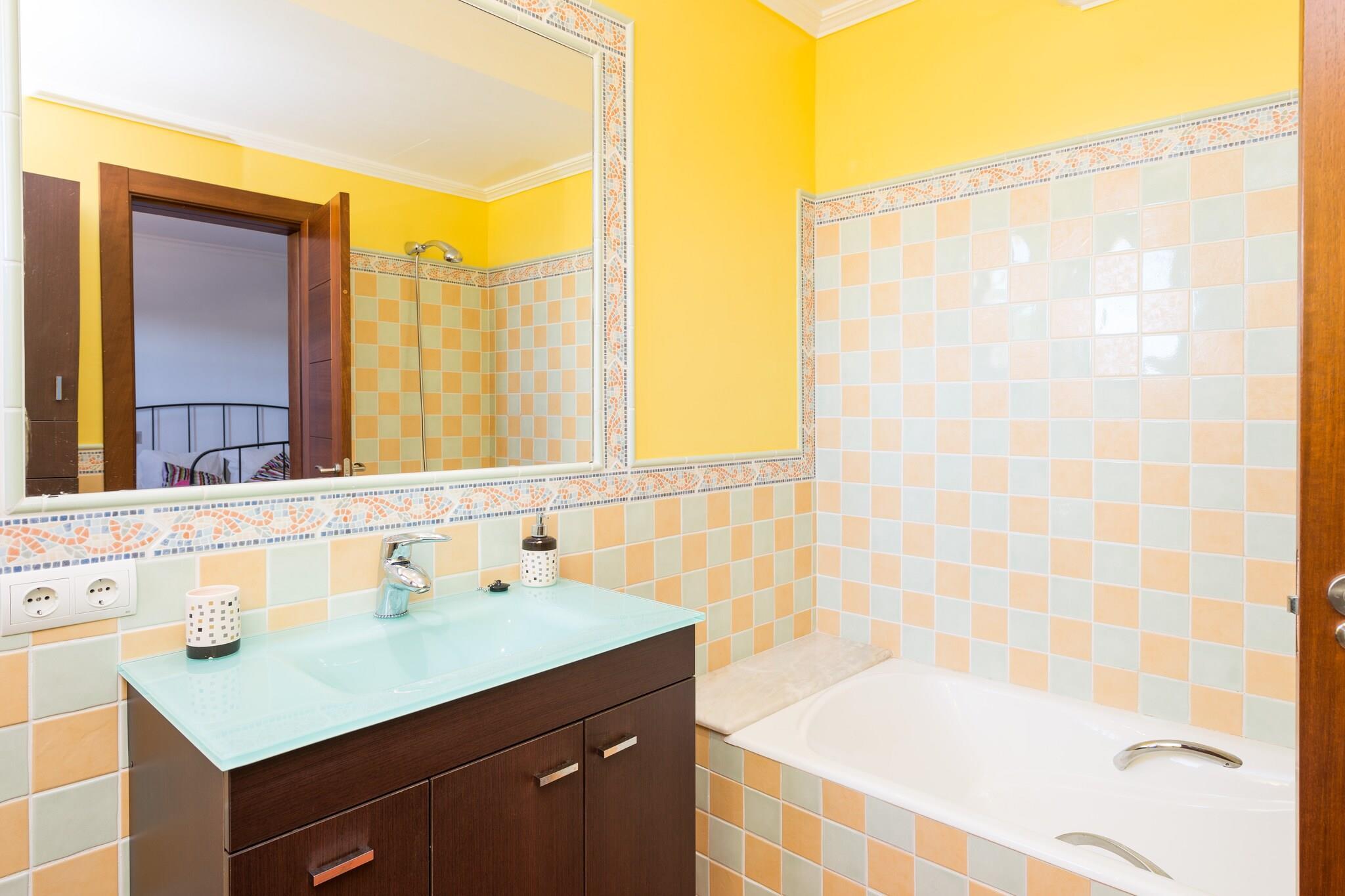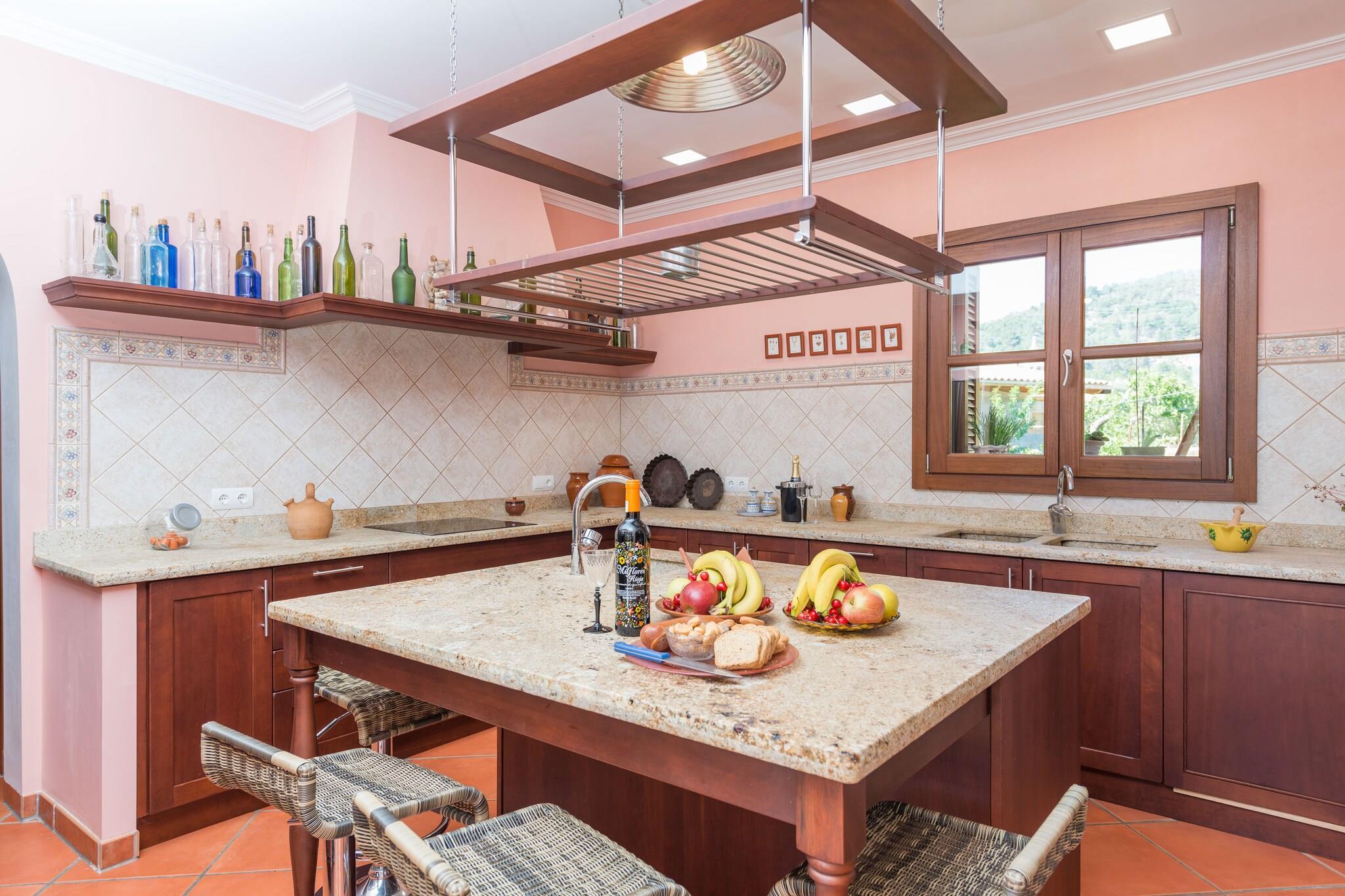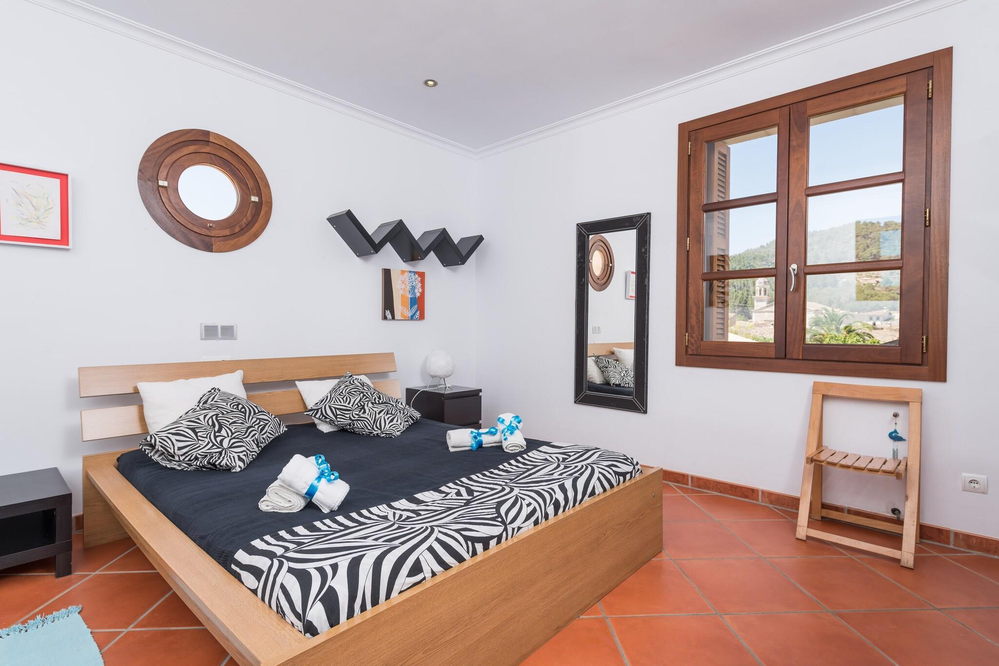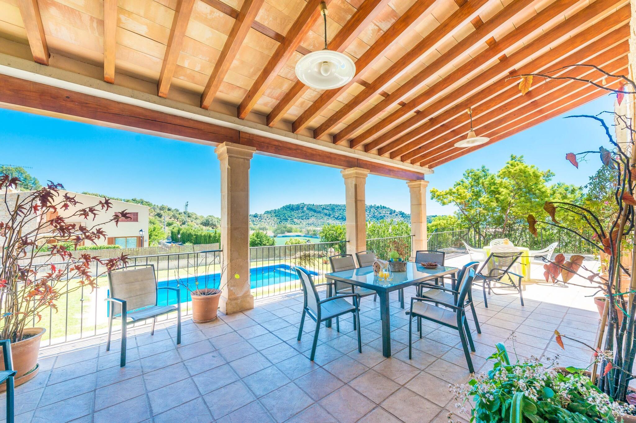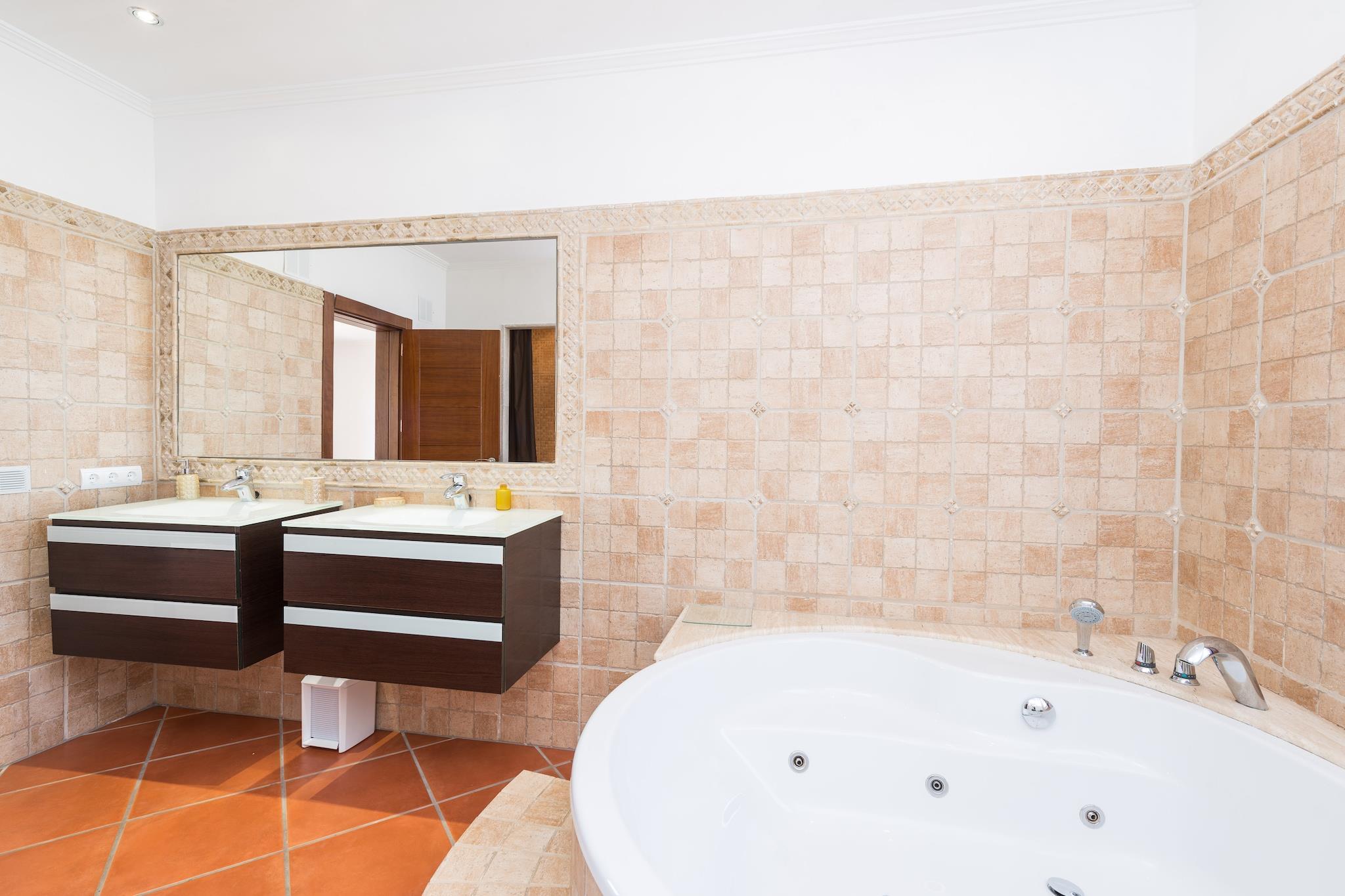 Hier genießt man authentisches Dorfleben am Fusse des Gebirges, im zentralen Westen Mallorcas. An heißen Sommertagen möchte man den 10m x 5m großen Salzwasserpool (Wassertiefe zwischen 1.2m und 1.8m) am Liebsten gar nicht mehr verlassen. Der Pool wird von einem gepflegten Garten umgeben, wo man es sich auf einer der Sonnenliegen bequem machen kann. Eine Treppe führt auf die Veranda, die das perfekte Ambiente für einen Grillabend bietet. Das Grundstück ist umzäunt und es gibt ein paar Nachbarn rundherum. Die Zimmer verteilen sich auf 400m2 und zwei Etagen. Im behaglichen Wohnzimmer macht man es sich auf dem Sofa gemütlich. Ein Rundbogen trennt den Wohnbereich von der Küche, die mit Cerankochfeld, Kücheninsel und allen wichtigen Kochutensilien aufwartet. Im Esszimmer finden zehn Gäste rund um den Esstisch Platz. Ein Duschbad sowie Schlafzimmer mit Doppelbett und eines mit zwei Einzelbetten sind im Erdgeschoss zu finden. Die restlichen drei Schlafzimmer mit Doppelbett und Bad en-suite sind im ersten Stock untergebracht. Alle Schlafzimmer und die Wohnküche sind klimatisiert. Ein Babybettchen und ein Hochstuhl werden gerne auf Anfrage bereit gestellt. Die Waschküche ist komplett mit Waschmaschine, Trockner, Bügeleisen und Bügelbrett ausgestattet. Die Finca befindet sich in Mancor de la Vall. Der romantische Ort schmiegt sich an die Berge und bietet alle notwendigen Dienstleistungen für einen Urlaub als Selbstversorger. Alle, die gerne Wandern und Radfahren finden hier ein kleines Paradies. Ein schönes Beispiel ist ein Ausflug ins Kloster Lluc. Der nächste Sandstrand, Puerto de Alcúdia, liegt ca. 30 km entfernt. Eventuelle Nebenkosten müssen beim Anbieter nachgefragt werden. Haustiere sind verboten. Partys oder ähnliche Veranstaltungen sind nicht gestattet. Es gibt Freiluftparkplätze für 2 Autos. Es gibt Parkplätze für 2 Autos in der Garage. Entfernungen Strand: 29.8 km - Port d'Alcúdia Flughafen: 35.5 km - Son Sant Joan Golfplatz: 22.2 km - Golf Pollença Ortsmitte: 0.01 km - Mancor de la Vall Bahnhof: 5.6 km - Estació d'Inca Bushaltestelle: 0.35 km - Carrer de Sa Creu, Mancor de la Vall Fähre: 29.8 km - Port d'Alcúdia Krankenhaus: 6.4 km - Hospital Comarcal d'Inca Touristen Lizenz: ETV/10838Einheitsregister: ESFCTU0000070220000342530000000000000000000ETV/108386Bei der Anreise muss die Ecotasa (Touristensteuer der Balearen) bar bezahlt werden. Der zu zahlende Betrag beträgt zwischen 0.55EURO pro Nacht und Gast in der Nebensaison und 2.2EURO pro Nacht und Gast in der Hochsaison. Ab dem 9. Tag reduziert sich die Steuer um die Hälfte. Personen unter 16 Jahren sind davon ausgenommen.Die Kaution ist bei Ankuuft direkt an den Eigentümer zu übergeben. Stromverbrauch (Jan - Dezember): 0.30 EUR/Kw (obligatorisch)