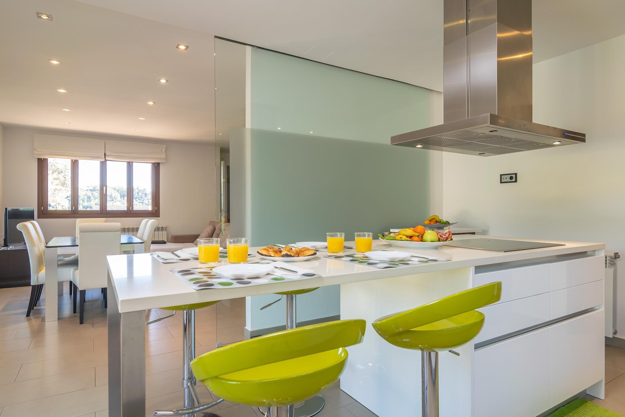 Nach einem Tag voller Aktivitäten gibt es nichts Schöneres als ein entspannendes Bad im 8 x 3,5 großen Chlorpool mit einer Tiefe zwischen 1,5 und 1,7 Metern. Der umliegende Garten lädt zum Sonnenbaden auf Sonnenliegen ein. Dann ist die Veranda neben dem Haus Ihr Treffpunkt, um einen köstlichen Grillabend oder ein Getränk zu genießen und den wunderschönen Sonnenuntergang über der Insel zu beobachten. Das Grundstück ist eingezäunt und es gibt Nachbarn in der Nähe. Das Innere des zweistöckigen Hauses überrascht mit seinem modernen und hellen Stil. Das Wohnzimmer, das Esszimmer und die Küche nehmen denselben praktischen und funktionalen Raum ein, in dem Sie Satellitenfernsehen schauen, Familienessen genießen und auf dem Keramikkochfeld kochen können. Neben der Küche befindet sich eine Waschküche mit Waschmaschine, Bügeleisen und Bügelbrett. Eine Toilette vervollständigt das Erdgeschoss. Im Obergeschoss befinden sich die 3 Schlafzimmer, alle mit Klimaanlage: das Hauptschlafzimmer mit Doppelbett und eigenem Bad mit Dusche; ein weiteres Schlafzimmer mit zwei Einzelbetten und das letzte mit einem Ausziehbett. Der erste Stock ist mit einem Badezimmer mit Badewanne abgeschlossen. Darüber hinaus ist das Haus mit einer Ölzentralheizung sowie einem Kinderbett und einem Hochstuhl für Ihr Baby ausgestattet. Mancor de la Vall ist ein wunderschönes Dorf am Fuße der Berge mit der Grundversorgung für einen unabhängigen Aufenthalt. Das 5 km entfernte Inka ist eine Stadt, die neben einem traditionellen Markt, der jeden Donnerstag stattfindet, mehr Geschäfte und Dienstleistungen bietet. Mancor ist auch der perfekte Ausgangspunkt für Ausflüge zu Fuß und mit dem Fahrrad, zum Beispiel nach Santa Lucía, Lluc, Ses Fonts Ufanes oder zu den mythischen Höhlen von Campanet. Und wenn Sie einen Strand suchen, ist der nächste 32 km entfernt, der paradiesische Strand von Puerto de Alcúdia. Hinweis: Diese Unterkunft richtet sich an Familien und Gäste über 28 Jahre, die einen ruhigen Aufenthalt suchen. Buchungen für Partys oder Feiern werden nicht akzeptiert. Eine Kopie des Ausweisdokuments aller Gäste ist erforderlich, um die Reservierung zu bestätigen. Eventuelle Nebenkosten müssen beim Anbieter nachgefragt werden. Haustiere sind verboten. Partys oder ähnliche Veranstaltungen sind nicht gestattet. Es gibt Freiluftparkplätze für 5 Autos. Entfernungen Strand: 29.1 km - Playa de Muro Flughafen: 41.2 km - Son Sant Joan Golfplatz: 26.2 km - Golf Pollença Ortsmitte: 0.5 km - Mancor de la Vall Bahnhof: 7 km - Inca Bushaltestelle: 0.550 km - Mancor de la Vall Fähre: 32.2 km - Port d'Alcúdia Krankenhaus: 7.1 km - Hospital Comarcal de Inca Touristen Lizenz: ETV/9755Einheitsregister: ESFCTU00000702200047527800000000000000000000ETV/97556Auf den Balearen gibt es eine Touristensteuer, die Ecotasa genannt wird. Diese Steuer muss vom Gast bezahlt werden. Der zu zahlende Betrag beträgt zwischen 0.55EURO pro Nacht und Gast in der Nebensaison und 2.2EURO pro Nacht und Gast in der Hochsaison. Ab dem 9. Tag reduziert sich die Steuer um die Hälfte. Personen unter 16 Jahren sind davon ausgenommen