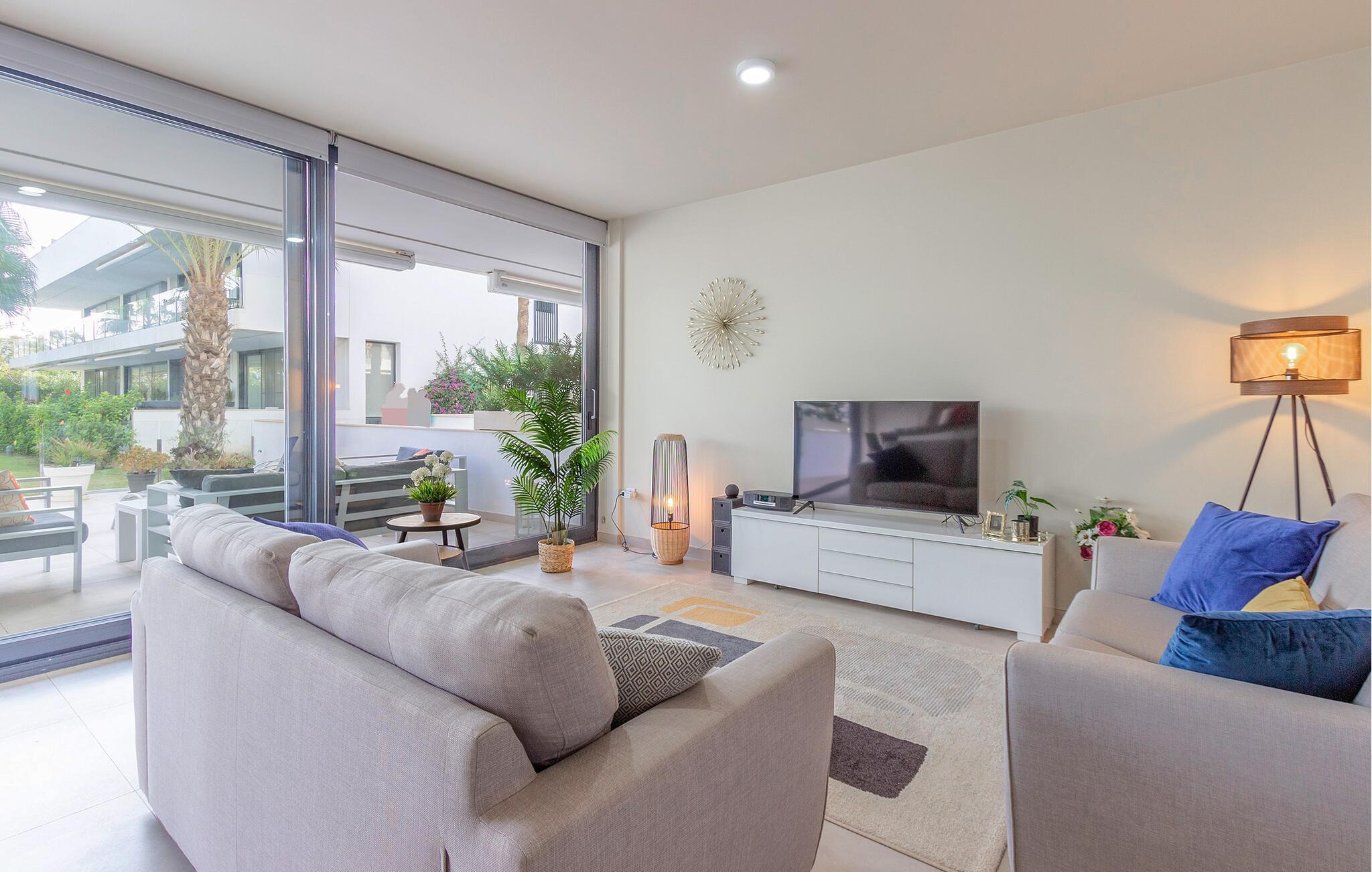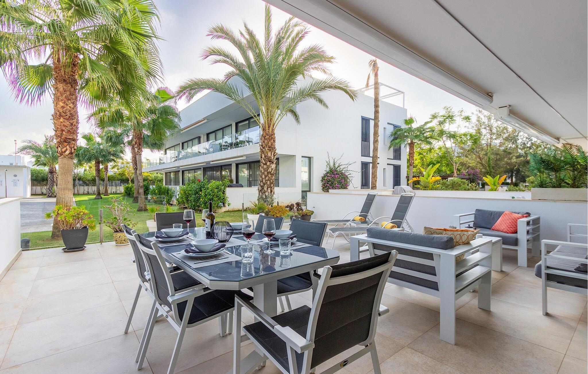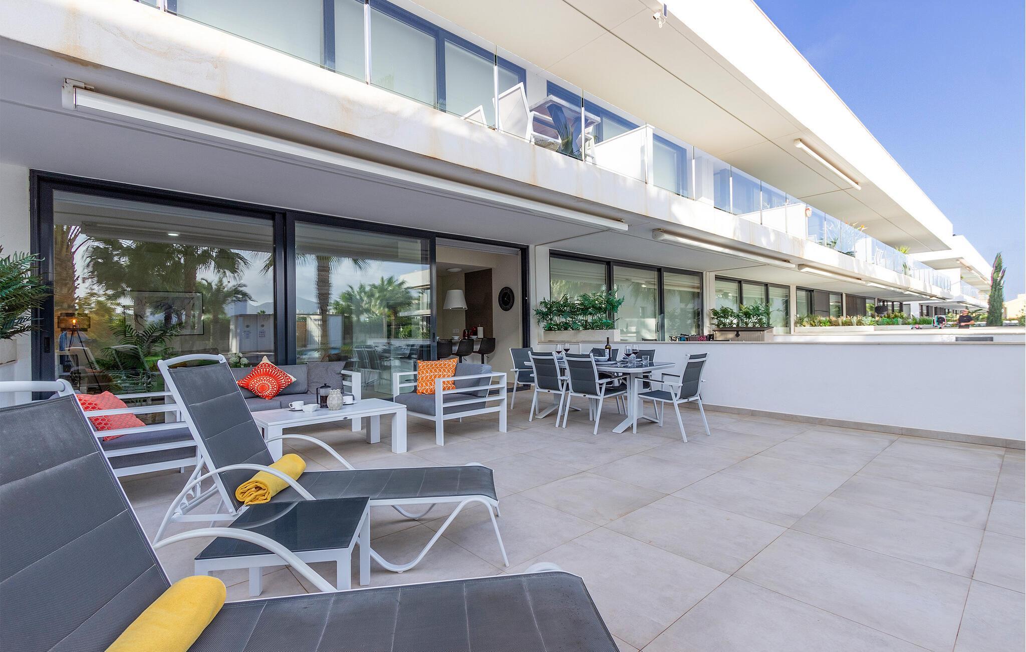 Das moderne Apartment wird alle Ihre Wünsche erfüllen. Hier finden Sie genügend Platz für einen Urlaub mit Ihrer Familie oder einem befreundeten Paar. Die Einrichtung ist hell, zeitgemäß und dekorativ. Die schöne Terrasse ist das Herzstück des Apartments. Der geräumige Außenbereich lädt Sie hier ein, zu verweilen. Ruhen Sie sich auf den Sonnenliegen aus oder nehmen ein kühles Getränk auf den hochwertigen Loungemöbeln ein. Von der Terrasse können Sie direkt an den schönen Gemeinschaftspool und in das erfrischende Wasser springen. Nach einem morgendlichen Bad können Sie leichtes Frühstück auf der Terrasse einnehmen und Ihre Aktivitäten für den Tag besprechen.