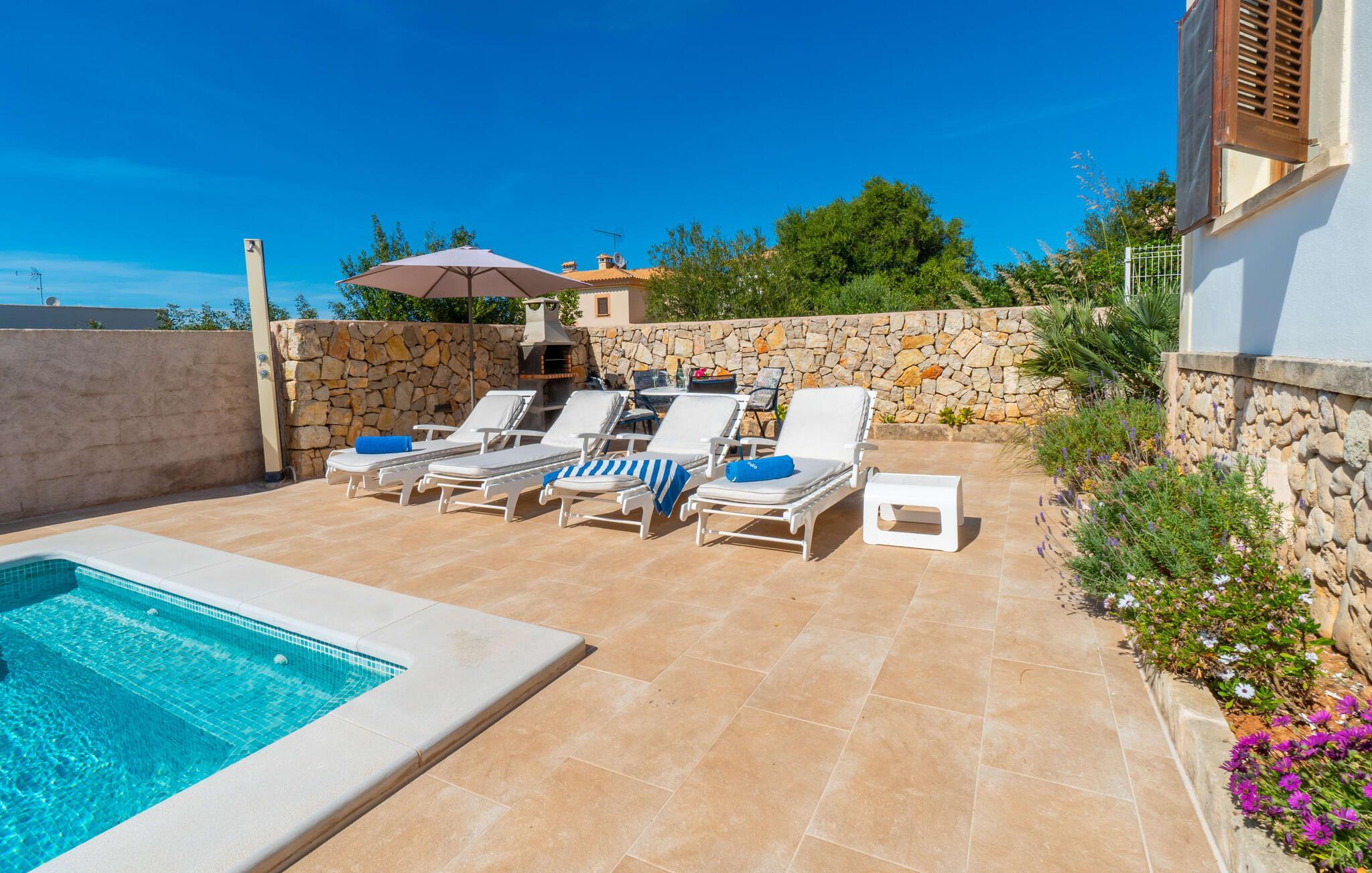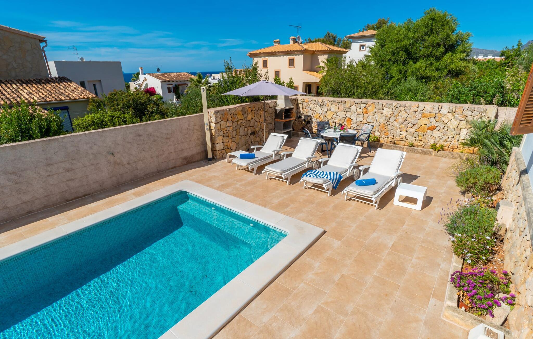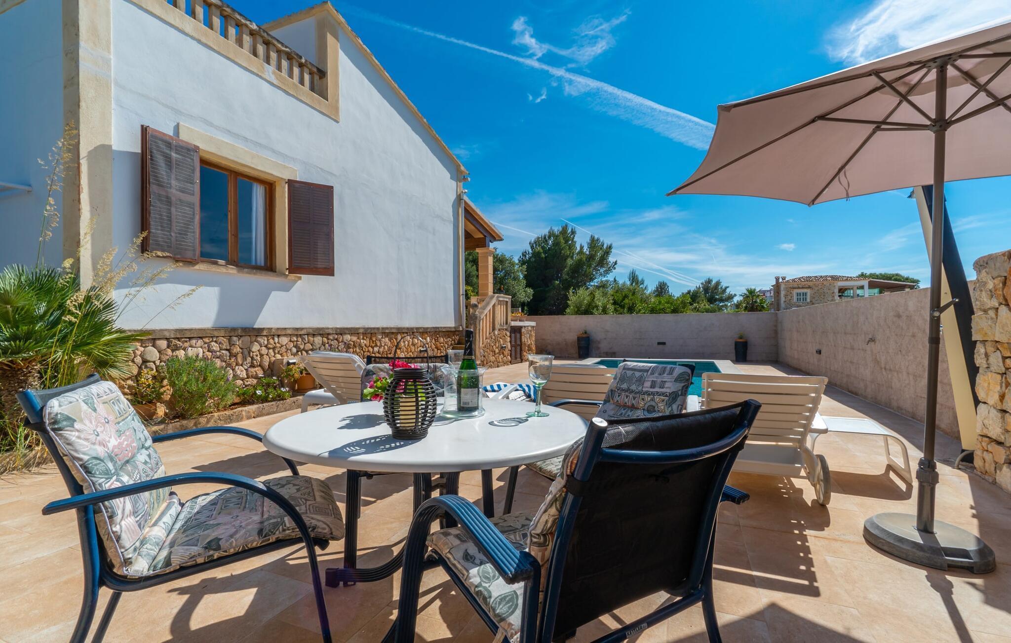 Was schätzen Sie an Ihrer Ferienvilla auf Mallorca am meisten? Nähe zum Strand? Gute Wanderwege in der Umgebung? Lange Sonnenbäder? Eine ruhige Lage? Schöne Restaurants am Meer in Gehweite? Wenn Sie auf all das nicht verzichten möchten, könnte die Villa „Mar i Cel“ genau das Richtige für Sie sein. Die kleinere der beiden überdachten Terrassen am Eingang gibt einen Vorgeschmack auf die Gemütlichkeit, die Sie in Ihrem Urlaubszuhause erwartet. Die größere hintere Veranda beherbergt einen einladenden Essbereich im Freien für lange Kerzenlichtsitzungen bis tief in die warmen Sommernächte hinein. Der nahe gelegene Poolbereich ist windgeschützt, sodass Sie Ihre Mahlzeiten hier direkt neben dem Grill einnehmen können. Müssen Sie noch näher an der Sonne sein? Steigen Sie einfach die Außentreppe hinauf zur perfekt platzierten Dachterrasse Ihrer Ferienvilla. Die herrliche Aussicht auf das Meer gibt es hier kostenlos!