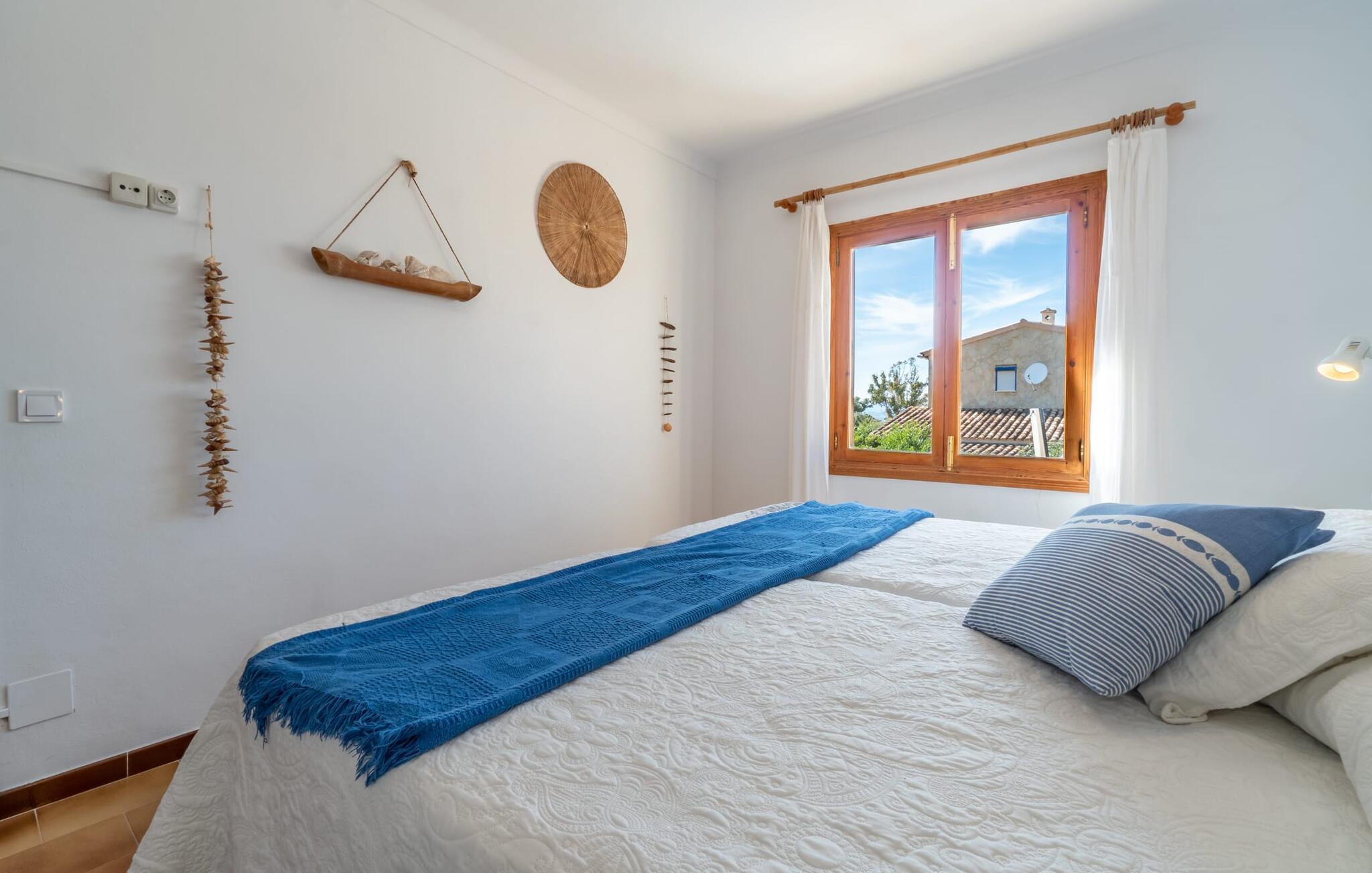 Der ebenerdige Wohnbereich ist gut aufgeteilt und verfügt über ein schönes Wohn- und Esszimmer. Es ist mit einem Kamin und einer Klimaanlage ausgestattet. Die Fenster bieten einen herrlichen Blick auf den Garten und die nahegelegenen Ausläufer von Ferrutx – einem wunderschönen Ort zum Wandern. Sowohl das Wohnzimmer als auch die angrenzende Küche haben direkten Zugang zur großzügigen Veranda. Eines der drei Schlafzimmer verfügt über ein eigenes Badezimmer en Suite. Die anderen beiden Schlafbereiche teilen sich ein separates Badezimmer mit Badewanne. Die Villa „Mar i Cel“ ist Teil der Wohngegend Colònia de Sant Pere an der Ostküste Mallorcas. Der Yachthafen, kleine Supermärkte und Restaurants sind bequem zu Fuß erreichbar. Der lange Naturstrand Colònia de Sant Pere liegt nur 6 Autominuten vom Ferienhaus entfernt. Die schöne Stadt Artà erreichen Sie mit dem Auto in 15 Minuten.