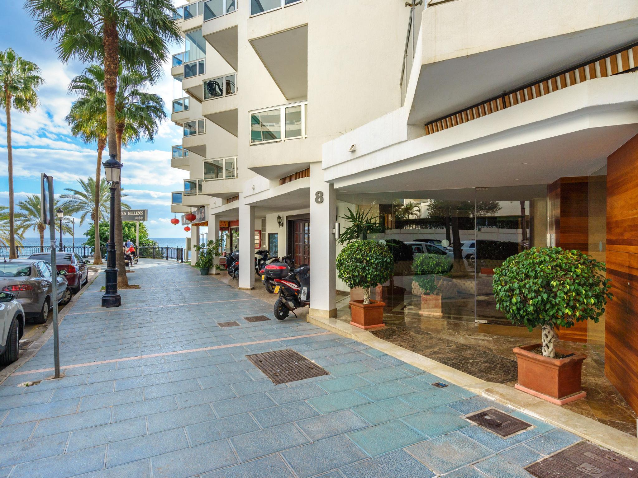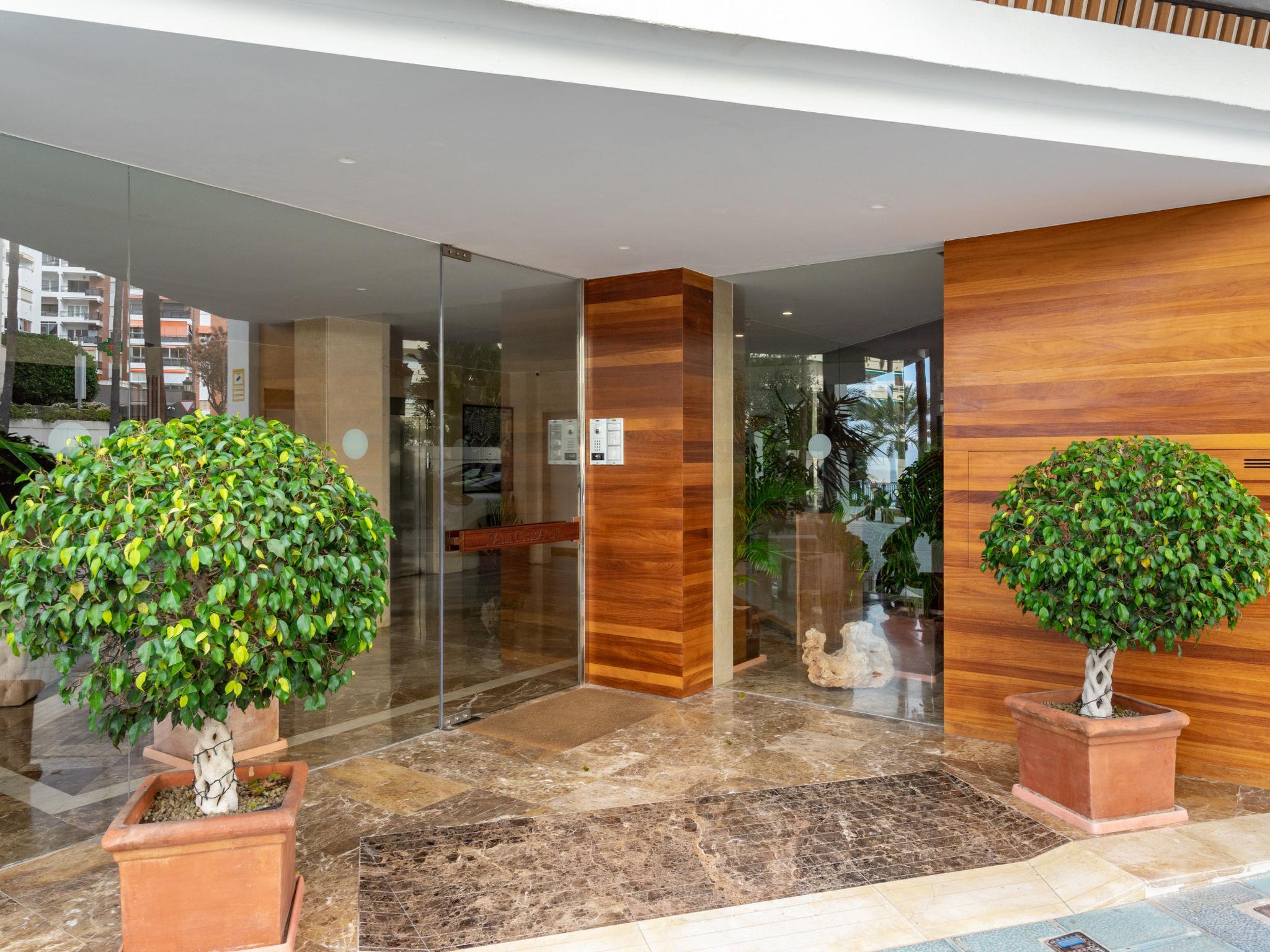 Gemütliches Appartementhaus "Palm Beach". Im Ortszentrum von Marbella, exzellente Lage: Absolut zentral und dennoch ruhig, 50 m vom Meer, vom Strand, direkter Zugang zum Strand. Zur Mitbenutzung: Schwimmbad (saisonale Verfügbarkeit: 01.Apr. - 31.Okt.). Dusche/WC im Poolbereich. In der Anlage: Fahrstuhl. Öffentliches Parkhaus in 200 m, extra. Gebührenpflichtige Kurzparkzone. Einkaufsgeschäft 10 m, Supermarkt 200 m, Restaurant, Bar, Fußgängerzone, Biergarten 10 m, Bushaltestelle "Centro de Salud Marbella" 450 m, Sandstrand 20 m.