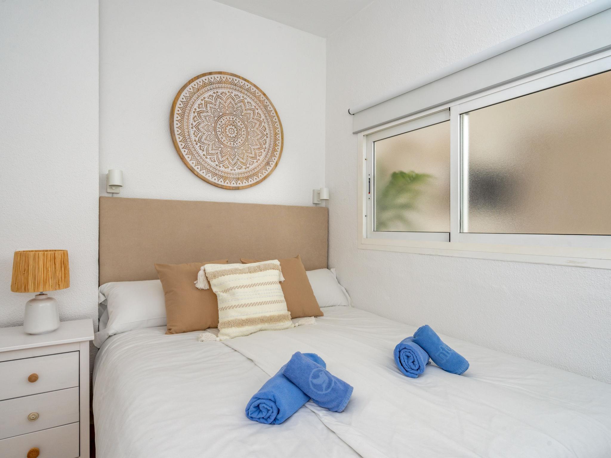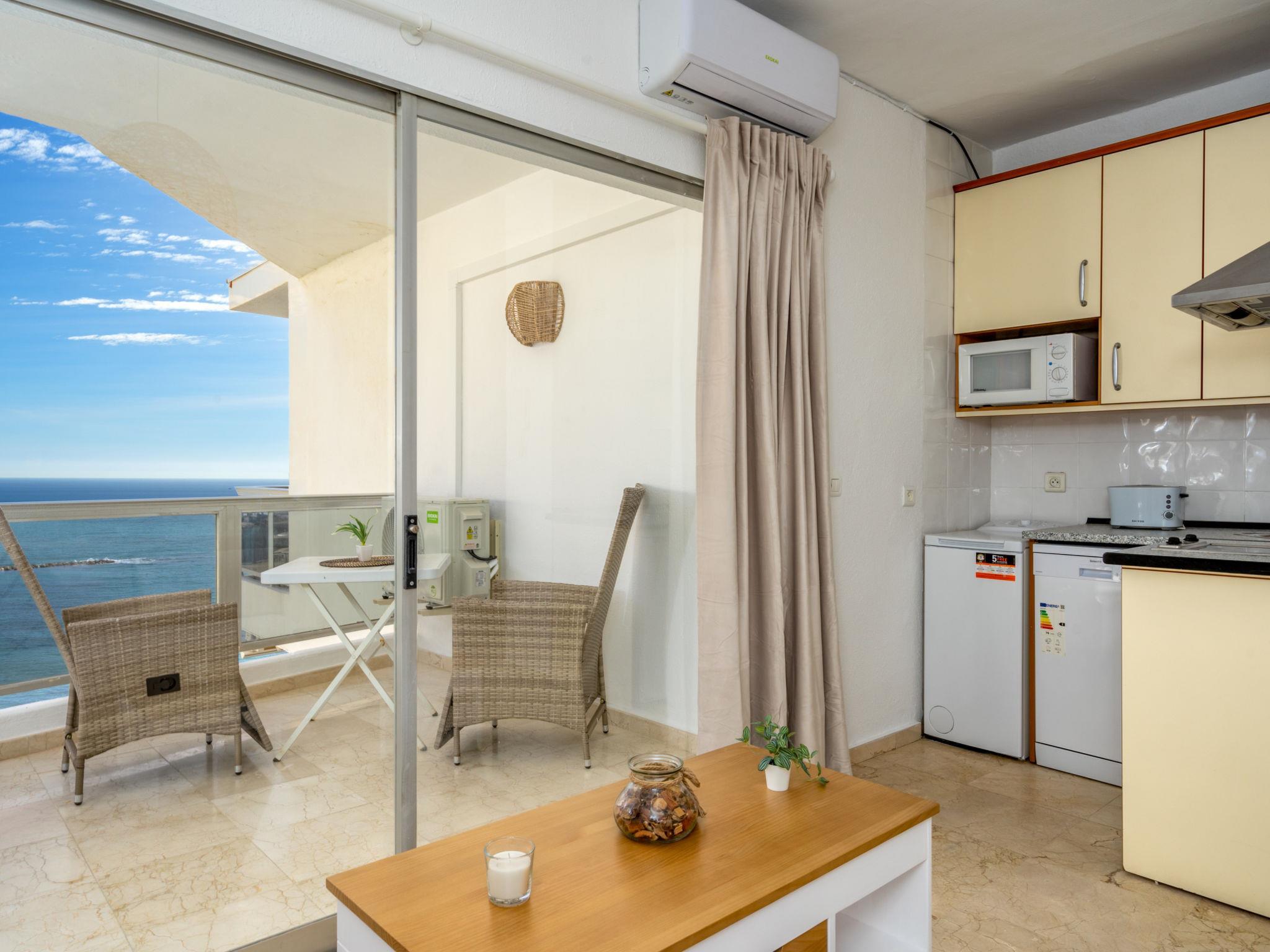 "Palm Beach", 1-Zimmer-Wohnung 30 m2 im 8. Stock. Schön und gemütlich eingerichtet: Wohnzimmer mit Digital-TV, Klimaanlage und Warmluftheizung. 1 Zimmer mit 1 Bett (150 cm, Länge 200 cm). Kochnische (Geschirrspüler, 2 Glaskeramikplatten, Toaster, Mikrowelle, elektrische Kaffeemaschine). Dusche/WC. Terrasse überdacht. Terrassenmöbel. Sehr schöne Sicht auf das Meer. Zur Verfügung: Waschmaschine, Bügeleisen, Haartrockner. Internet (WLAN, gratis). VUT/MA/38308 // Reg. Nr.: ESFCTU0000290290000706410000000000000000VUT/MA/383081