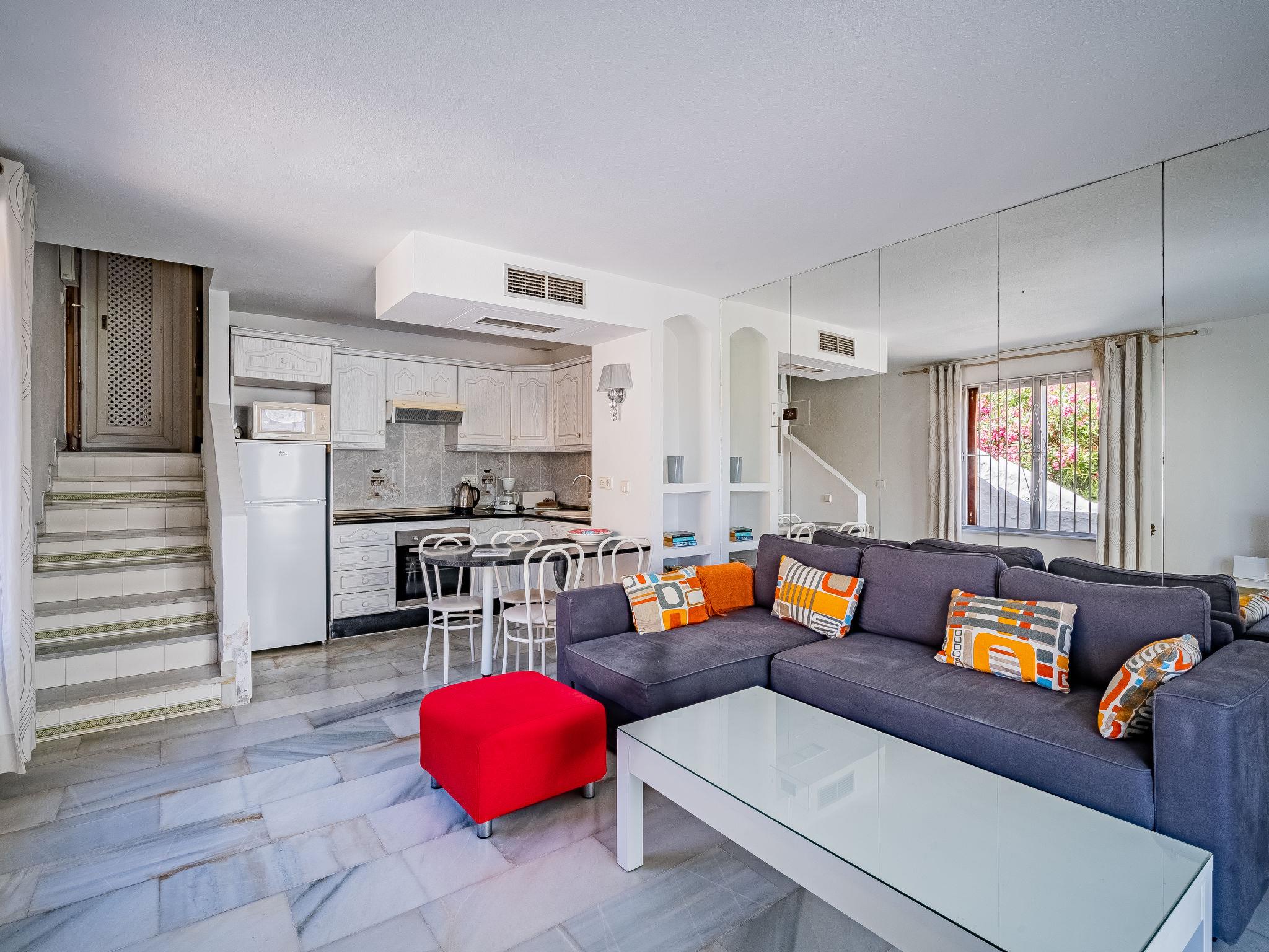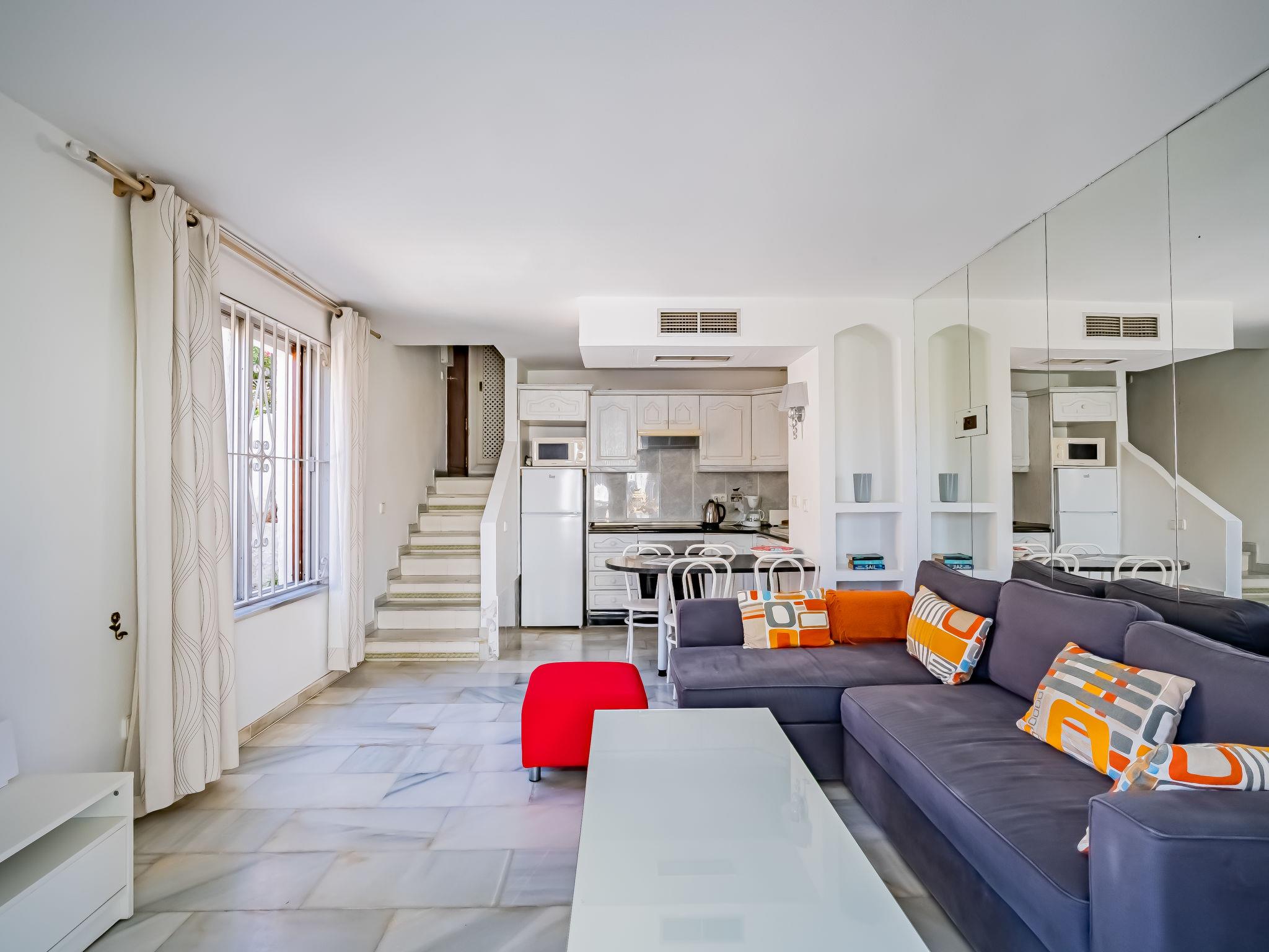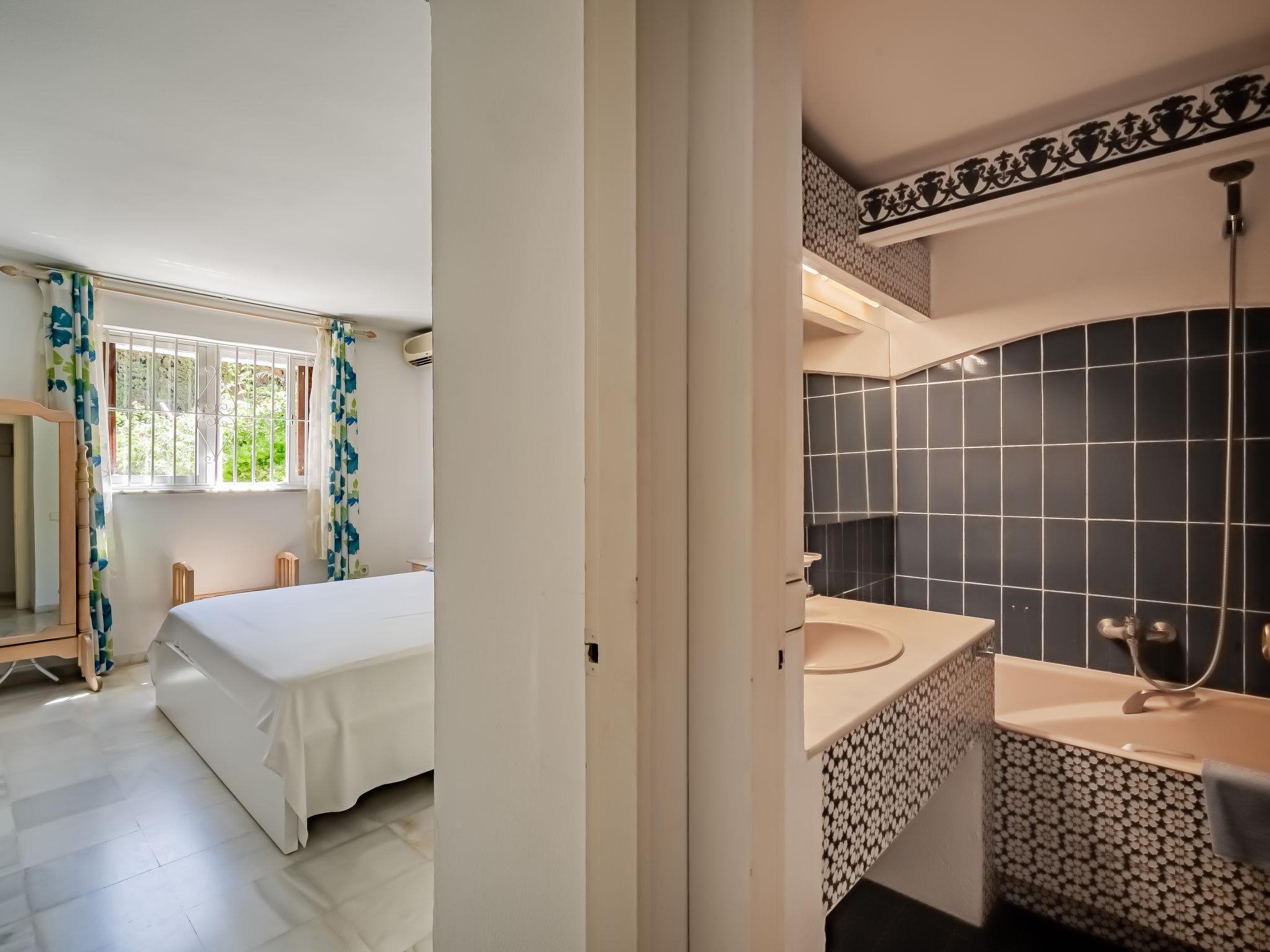 Die Urbanisation Pueblo Arabesque besteht aus 46 Reihenhäusern und Wohnungen in andalusischer Architektur. Appartementhaus "Pueblo Arabesque". Im Ort, 4.5 km vom Zentrum von Marbella, am Ortsrand, 2 km vom Zentrum von Puerto Banús, 1.5 km vom Meer. Zur Mitbenutzung: Schwimmbad (110 - 280 cm tief, saisonale Verfügbarkeit: 01.Jan. - 31.Dez. Öffnungszeiten Schwimmbad: 09:00-22:00). Öffentliche Parkplätze auf der Strasse. Supermarkt 1 km, Restaurant 700 m, Bar, Bushaltestelle 400 m, Sandstrand 1.5 km. Sporthafen 2 km. Der Besitzer akzeptiert keine Jugendgruppen. Die Nachbarschaft ist sehr lärmempfindlich. Ruhe und gutes Benehmen wird erwartet. Mehrere Golf- und Tennisplätze in der Umgebung.