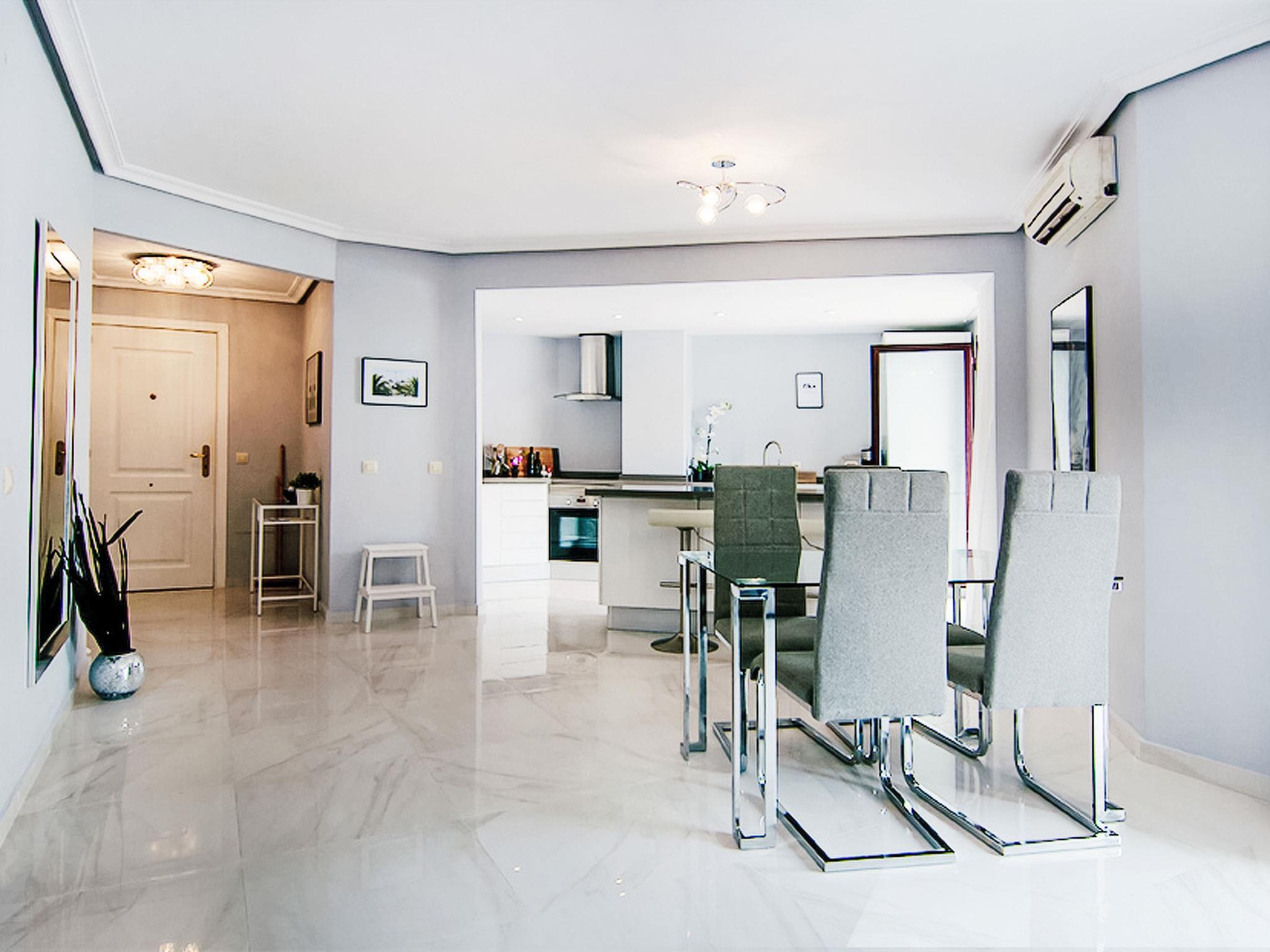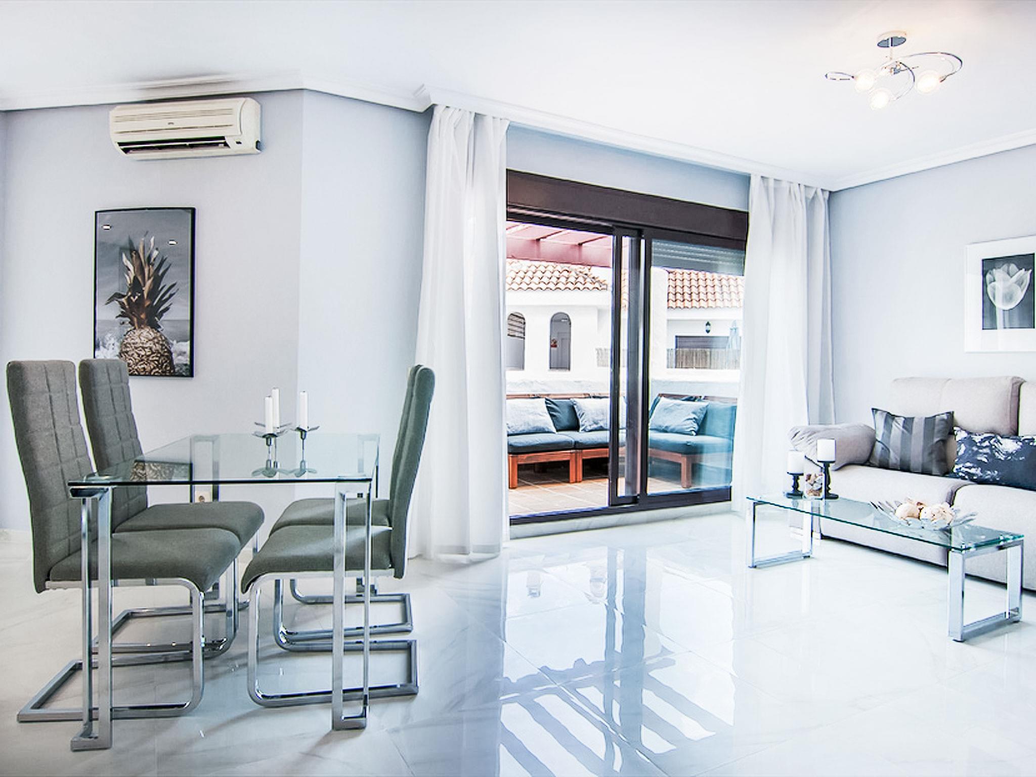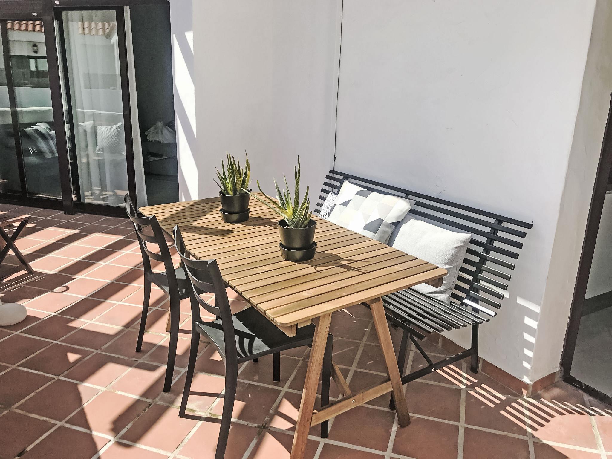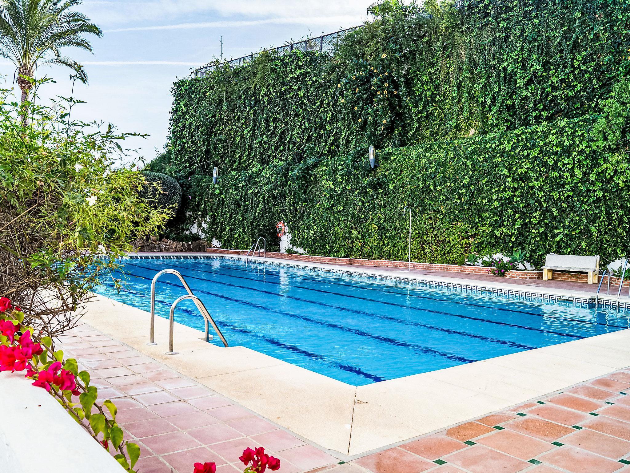 Schönes Appartementhaus "La Maestranza". Im Ortszentrum von Nueva Andalucía, 1 km vom Zentrum von Puerto Banús, 7 km vom Zentrum von Marbella, zentrale Lage, 1.2 km vom Meer. Zur Mitbenutzung: Park, Blumen und Bäumen, 2 Schwimmbäder beheizt (15 x 10 m, 100 - 200 cm tief, saisonale Verfügbarkeit: 01.Jan. - 31.Dez.). Kinderbecken, Gemeinschaftsgarage Nr. 49. Einkaufsgeschäft, Supermarkt, Restaurant, Bar 100 m, Bushaltestelle "Plaza Espanola" 250 m, Sandstrand 1.2 km. Golfplatz (18 Loch) 2.5 km. Der Pool wird von Oktober bis April beheizt (ca. Daten).