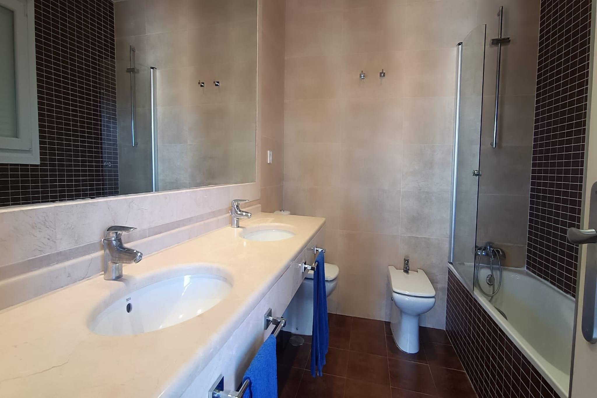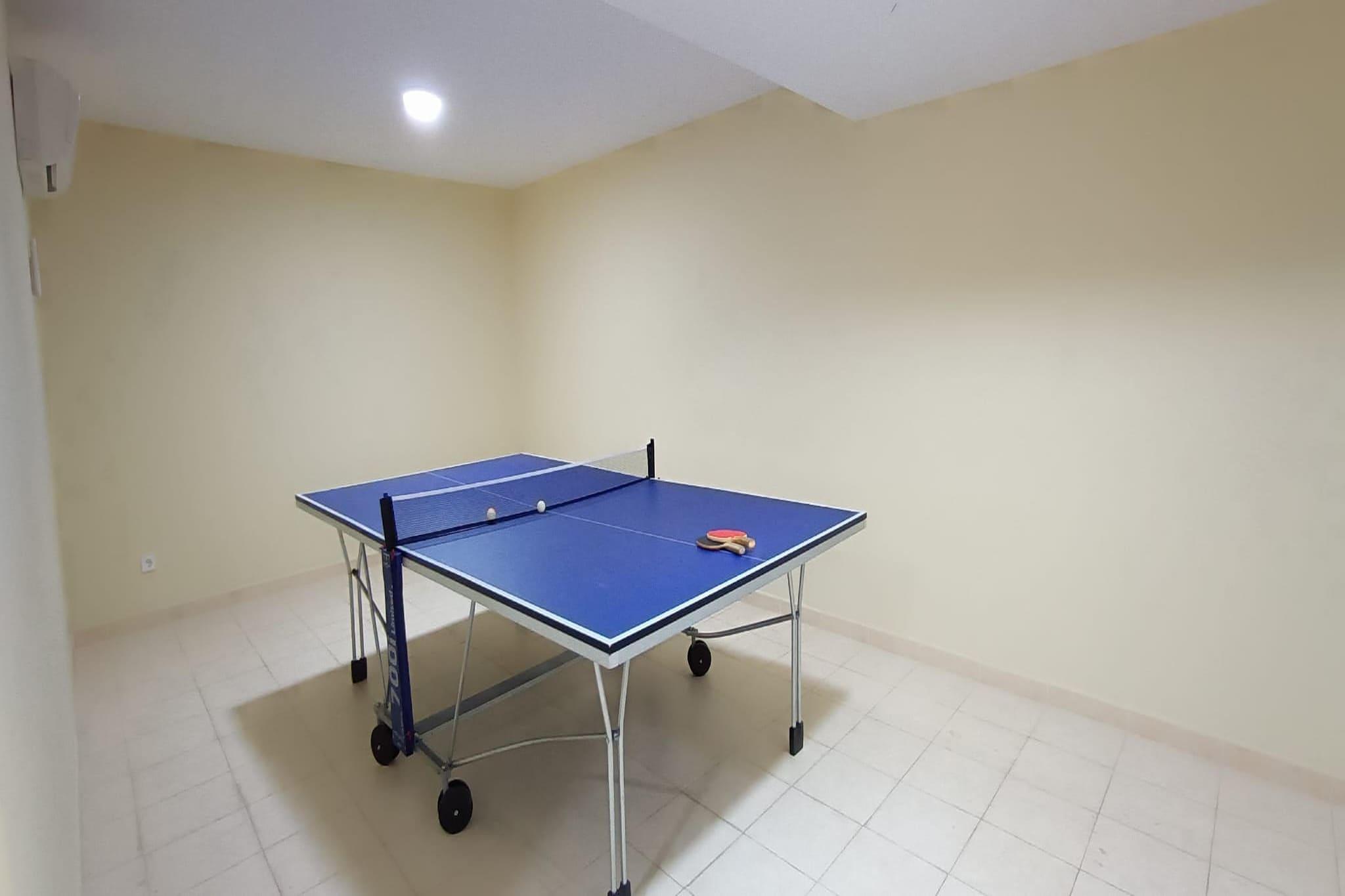 Parterre: (Wohnzimmer(TV, Esstisch, Sitzecke), Küche(Wasserkocher, Toaster, Kochherd, Kaffeemaschine, Backofen, Mikrowelle, Spülmaschine, Kühl-/Gefrierkombination, Mixer), Schlafzimmer(Doppelbett oder 2 Einzelbetten), Schlafzimmer(Doppelbett oder 2 Einzelbetten), Schlafzimmer(Doppelbett oder 2 Einzelbetten), Schlafzimmer(Doppelbett oder 2 Einzelbetten), Schlafzimmer(Doppelbett), Badezimmer(Badewanne oder Dusche, Waschbecken, Toilette), Badezimmer(Badewanne oder Dusche, Waschbecken, Toilette), Badezimmer(Badewanne, Waschbecken, Toilette), Freizeitraum) Balkon oder Terrasse, Balkon oder Terrasse, Klimaanlage, Garten(alleinige Nutzung), Gartenmöbel(8 Personen), Parkplatz, Pool(alleinige Nutzung)