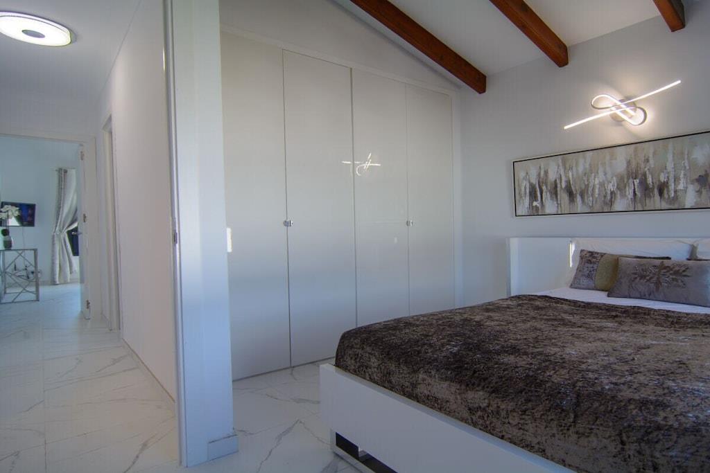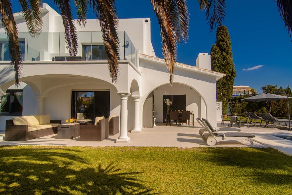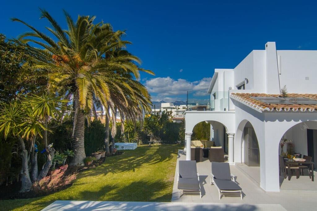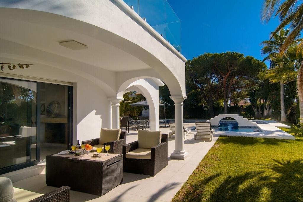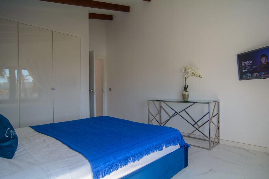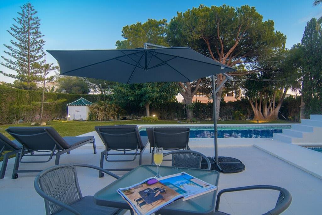 Sind Sie auf der Suche nach einem Urlaubsort, der die andalusische Tradition mit dem Bedürfnis nach modernem Design perfekt verbindet? Besuchen Sie unsere schöne Villa und alle Ihre Erwartungen werden erfüllt werden! Dieses nach Süden ausgerichtete Stadthaus mit 5 Schlafzimmern (300m2) befindet sich auf einem großzügigen Grundstück (1000m2), hat eine mediterrane Vegetation, einen besonderen L-förmigen Pool mit römischer Treppe (der Hauptteil ist 9mx4m, das Kinderbecken ist 3m x 3m), Sonnenliegen, Terrassen, Grillplatz, einen wunderschönen Blick auf das Meer und die Berge, ein gepflegtes und sorgfältig durchdachtes Design, moderne und doch sehr stilvolle Möbel und Dekorationen. ~ Innen Im Erdgeschoss befinden sich das Wohnzimmer, zwei Schlafzimmer, eine Küche und ein Familienbad. Das Wohnzimmer besteht aus zwei verschiedenen Bereichen: dem Sitz- und dem Essbereich. Die schönen Marmorböden und das gepflegte Design, die Holzbalken und die exquisite Dekoration machen Ihren Aufenthalt so angenehm wie möglich. In der Sitzecke steht ein bequemes Sofa vor einem Flachbildfernseher (iptv mit internationalen Kanälen). Der Kamin vervollständigt die heimelige Atmosphäre. Der Essbereich verfügt über einen eleganten Esstisch für sechs Personen mit bequemen gepolsterten Stühlen. Von hier aus können Sie durch eine Schiebetür auf die Hauptterrasse gelangen. Im Erdgeschoss befinden sich zwei Schlafzimmer, die sich ein Familienbad teilen. Eines der Schlafzimmer hat zwei Einzelbetten (2x90x200cm), geräumige Kleiderschränke, einen Flachbildfernseher (iptv mit internationalen Kanälen), zwei Wandlampen und einen Nachttisch. Das Familienbadezimmer hat eine begehbare Dusche, Waschbecken, Toilette und ein Fenster für natürliches Licht. Das zweite Schlafzimmer hat ein Doppelbett (160x200cm), zwei Nachttische, Wandlampen, große Schränke, einen Tisch, der ideal ist, wenn Sie an Ihrem Laptop arbeiten, und einen Flachbildfernseher (iptv mit internationalen Kanälen). Neben der kleinen Eingangshalle befindet sich die Küche, die sehr praktisch ist und über alle notwendigen Geräte verfügt: Ceranfeld, Backofen, Mikrowelle, Nabe, Kühlschrank, Toaster, Wasserkocher. Sie hat auch zwei Barhocker, die die moderne Atmosphäre vervollständigen. Im Obergeschoss befinden sich drei Schlafzimmer, ein Bad en suite, ein Familienbad und eine Terrasse, von der aus Sie den schönen Garten mit Pool, das Meer und die Berge bewundern können. Das Hauptschlafzimmer hat ein Doppelbett (180x200cm), zwei Nachttische, einen geräumigen Kleiderschrank, eine Kommode, zwei Hocker und einen Flachbildfernseher (iptv mit internationalen Kanälen). Das Badezimmer hat ein sehr ansprechendes Design und eine perfekte Ausstattung mit Wandlampen, zwei Spiegeln, einer begehbaren Dusche mit Regenkopf, Waschbecken und Toilette. Das zweite Schlafzimmer im Obergeschoss hat ein Doppelbett (160x200cm) mit Nachttisch, einen geräumigen Kleiderschrank und sichtbare Holzbalken. Das dritte Schlafzimmer im Obergeschoss verfügt über ein Doppelbett (140x200cm), einen geräumigen Kleiderschrank, einen Nachttisch, einen Tisch für den Laptop und einen Flachbildfernseher (iptv mit internationalen Kanälen). Diese beiden Schlafzimmer teilen sich ein Familienbadezimmer mit einer begehbaren Dusche mit Regendusche, Waschbecken, Toilette und Fenster. Alle Schlafzimmer sind klimatisiert. ~Terrassen und Garten Die schöne, geräumige Terrasse, die vom Wohnzimmer aus zugänglich ist, ist mit einem Rattan-Esstisch für sechs Personen ausgestattet und hat Zugang zu einem großen Kühlschrank. Von hier aus können Sie die schöne mediterrane Vegetation des großen Gartens (1000m2) und den Pool bewundern. Der gepflegte Garten, der den Pool umgibt, ist mit schönen Palmen bepflanzt und ein grüner Zaun verleiht diesem Raum Intimität. Ein kleiner Esstisch für vier Personen steht neben dem Pool, mit einem Sonnenschirm für die heißen Sommertage. Der Grillplatz ermöglicht es Ihnen, an kühlen Abenden besondere Mahlzeiten zuzubereiten. Wenn Sie keine Lust haben, zum Meer zu laufen, können Sie sich am Pool auf einer der sechs Sonnenliegen entspannen, die hier für Ihren Komfort aufgestellt sind. Das L-förmige Schwimmbad hat zwei verschiedene Bereiche: der Hauptteil ist 9mx4m, das Kinderbecken ist 3m x 3m groß, eine Schwimmbrücke trennt die beiden Bereiche und eine römische Treppe. Die obere Terrasse (12m2) im ersten Stock bietet einen schönen Blick auf das Meer, den Pool, den Garten, die Urbanisation und die Berge. Der kleine Rattan-Couchtisch ermöglicht es Ihnen, die perfekte Aussicht zu genießen, während Sie Ihren Morgenkaffee trinken. Dienstprogramme: TV (6), Zentralheizung, Kamin, Klimaanlage, Ventilatoren, Toaster, Bügeleisen, Geschirrspüler, Backofen, Mikrowelle, Kühlschrank, Gefrierschrank, Waschmaschine, Trockner, Kaffeemaschine, Wasserkocher, BBQ. Räume: 5 Schlafzimmer, 3 Bäder, Wohnzimmer mit Essbereich und Sitzecke, 1 Küche. Möblierung: Einzelbetten (2), Doppelbetten (4), Sofas, Außensofa und Sessel mit Sitzgelegenheiten (6), Sonnenliegen (4), Esstisch (4), Esstisch auf Terrasse (6), Esstisch auf Terrasse (4). Jedes Schlafzimmer hat einen Kleiderschrank. Sonstiges: Bettwäsche und Handtücher inklusive. Kostenloses Internet WIFI verfügbar. Draußen: Große Terrasse, privater Außenpool, privater Garten, Grillplatz.