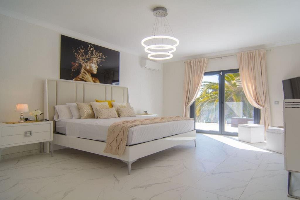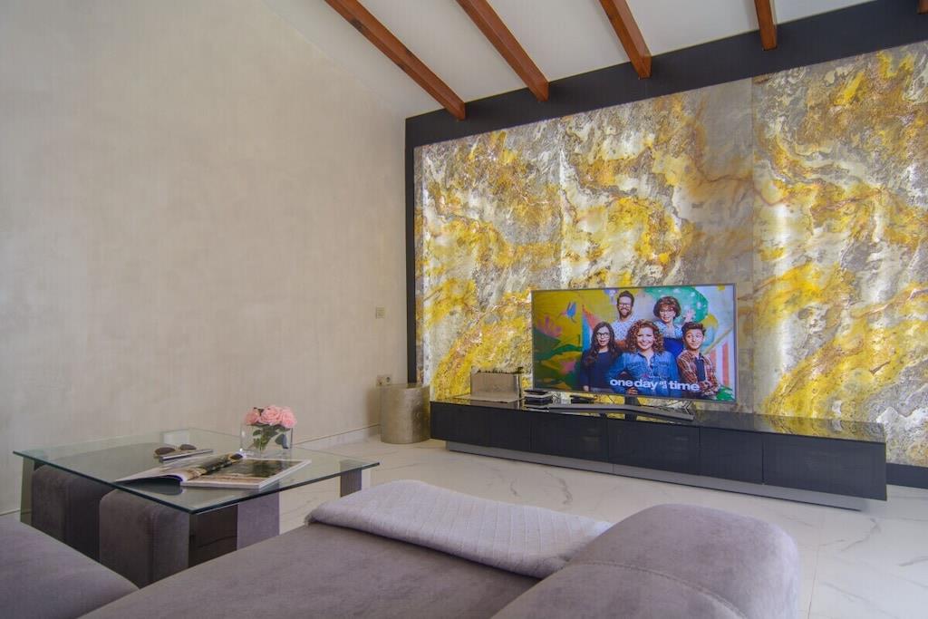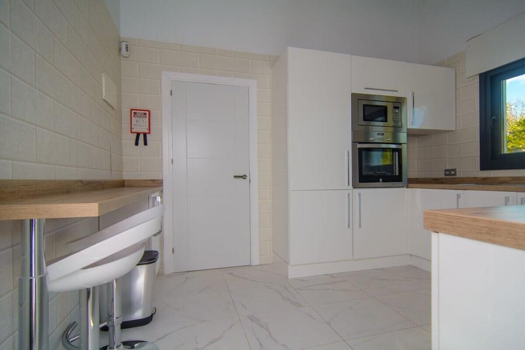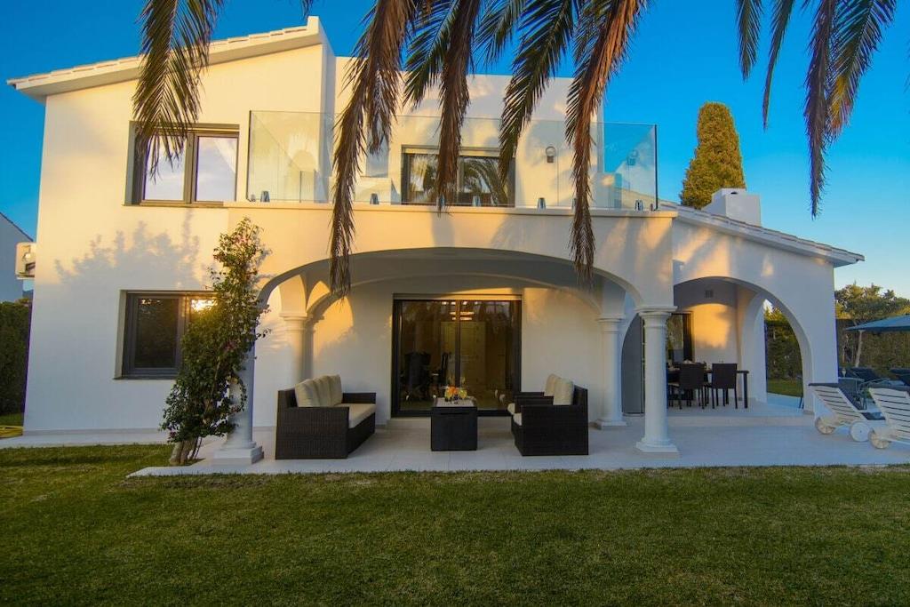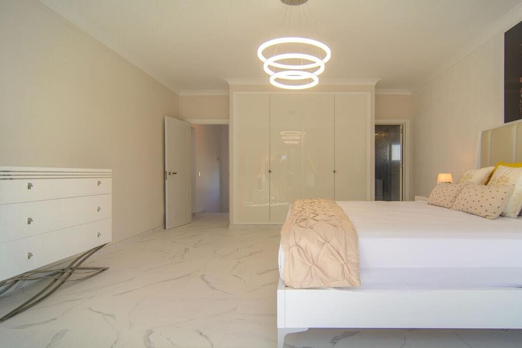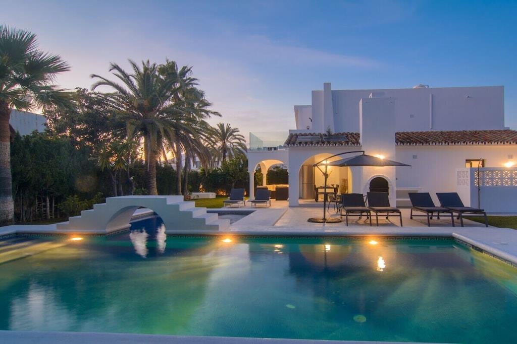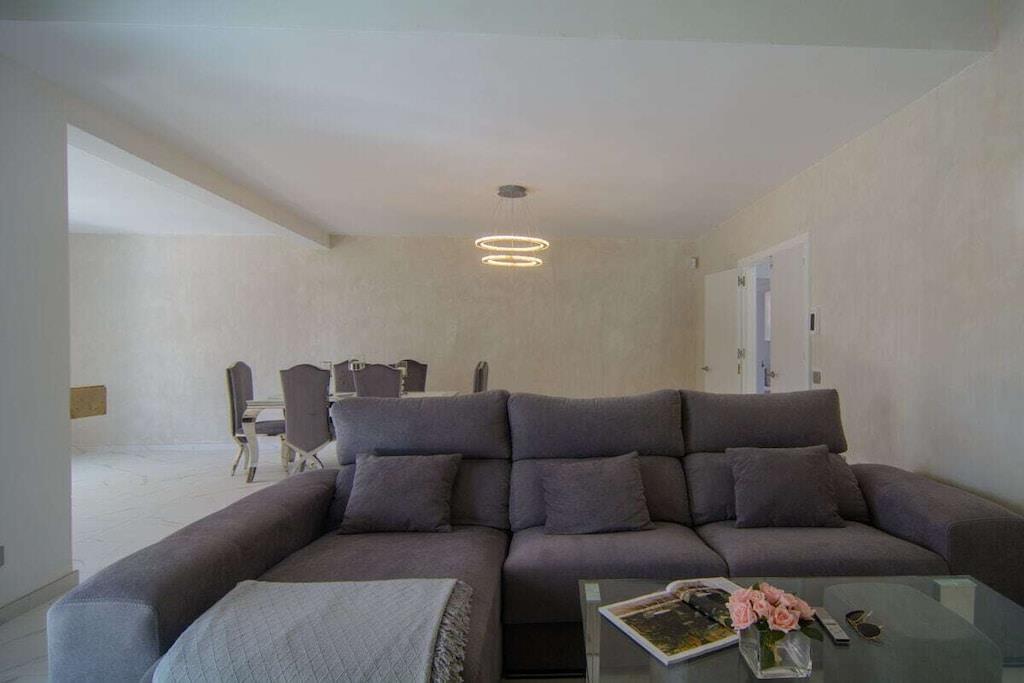 Sind Sie auf der Suche nach einem Urlaubsort, der die andalusische Tradition mit dem Bedürfnis nach modernem Design perfekt verbindet? Besuchen Sie unsere schöne Villa und alle Ihre Erwartungen werden erfüllt werden! Dieses nach Süden ausgerichtete Stadthaus mit 5 Schlafzimmern (300m2) befindet sich auf einem großzügigen Grundstück (1000m2), hat eine mediterrane Vegetation, einen besonderen L-förmigen Pool mit römischer Treppe (der Hauptteil ist 9mx4m, das Kinderbecken ist 3m x 3m), Sonnenliegen, Terrassen, Grillplatz, einen wunderschönen Blick auf das Meer und die Berge, ein gepflegtes und sorgfältig durchdachtes Design, moderne und doch sehr stilvolle Möbel und Dekorationen. ~ Innen Im Erdgeschoss befinden sich das Wohnzimmer, zwei Schlafzimmer, eine Küche und ein Familienbad. Das Wohnzimmer besteht aus zwei verschiedenen Bereichen: dem Sitz- und dem Essbereich. Die schönen Marmorböden und das gepflegte Design, die Holzbalken und die exquisite Dekoration machen Ihren Aufenthalt so angenehm wie möglich. In der Sitzecke steht ein bequemes Sofa vor einem Flachbildfernseher (iptv mit internationalen Kanälen). Der Kamin vervollständigt die heimelige Atmosphäre. Der Essbereich verfügt über einen eleganten Esstisch für sechs Personen mit bequemen gepolsterten Stühlen. Von hier aus können Sie durch eine Schiebetür auf die Hauptterrasse gelangen. Im Erdgeschoss befinden sich zwei Schlafzimmer, die sich ein Familienbad teilen. Eines der Schlafzimmer hat zwei Einzelbetten (2x90x200cm), geräumige Kleiderschränke, einen Flachbildfernseher (iptv mit internationalen Kanälen), zwei Wandlampen und einen Nachttisch. Das Familienbadezimmer hat eine begehbare Dusche, Waschbecken, Toilette und ein Fenster für natürliches Licht. Das zweite Schlafzimmer hat ein Doppelbett (160x200cm), zwei Nachttische, Wandlampen, große Schränke, einen Tisch, der ideal ist, wenn Sie an Ihrem Laptop arbeiten, und einen Flachbildfernseher (iptv mit internationalen Kanälen). Neben der kleinen Eingangshalle befindet sich die Küche, die sehr praktisch ist und über alle notwendigen Geräte verfügt: Ceranfeld, Backofen, Mikrowelle, Nabe, Kühlschrank, Toaster, Wasserkocher. Sie hat auch zwei Barhocker, die die moderne Atmosphäre vervollständigen. Im Obergeschoss befinden sich drei Schlafzimmer, ein Bad en suite, ein Familienbad und eine Terrasse, von der aus Sie den schönen Garten mit Pool, das Meer und die Berge bewundern können. Das Hauptschlafzimmer hat ein Doppelbett (180x200cm), zwei Nachttische, einen geräumigen Kleiderschrank, eine Kommode, zwei Hocker und einen Flachbildfernseher (iptv mit internationalen Kanälen). Das Badezimmer hat ein sehr ansprechendes Design und eine perfekte Ausstattung mit Wandlampen, zwei Spiegeln, einer begehbaren Dusche mit Regenkopf, Waschbecken und Toilette. Das zweite Schlafzimmer im Obergeschoss hat ein Doppelbett (160x200cm) mit Nachttisch, einen geräumigen Kleiderschrank und sichtbare Holzbalken. Das dritte Schlafzimmer im Obergeschoss verfügt über ein Doppelbett (140x200cm), einen geräumigen Kleiderschrank, einen Nachttisch, einen Tisch für den Laptop und einen Flachbildfernseher (iptv mit internationalen Kanälen). Diese beiden Schlafzimmer teilen sich ein Familienbadezimmer mit einer begehbaren Dusche mit Regendusche, Waschbecken, Toilette und Fenster. Alle Schlafzimmer sind klimatisiert. ~Terrassen und Garten Die schöne, geräumige Terrasse, die vom Wohnzimmer aus zugänglich ist, ist mit einem Rattan-Esstisch für sechs Personen ausgestattet und hat Zugang zu einem großen Kühlschrank. Von hier aus können Sie die schöne mediterrane Vegetation des großen Gartens (1000m2) und den Pool bewundern. Der gepflegte Garten, der den Pool umgibt, ist mit schönen Palmen bepflanzt und ein grüner Zaun verleiht diesem Raum Intimität. Ein kleiner Esstisch für vier Personen steht neben dem Pool, mit einem Sonnenschirm für die heißen Sommertage. Der Grillplatz ermöglicht es Ihnen, an kühlen Abenden besondere Mahlzeiten zuzubereiten. Wenn Sie keine Lust haben, zum Meer zu laufen, können Sie sich am Pool auf einer der sechs Sonnenliegen entspannen, die hier für Ihren Komfort aufgestellt sind. Das L-förmige Schwimmbad hat zwei verschiedene Bereiche: der Hauptteil ist 9mx4m, das Kinderbecken ist 3m x 3m groß, eine Schwimmbrücke trennt die beiden Bereiche und eine römische Treppe. Die obere Terrasse (12m2) im ersten Stock bietet einen schönen Blick auf das Meer, den Pool, den Garten, die Urbanisation und die Berge. Der kleine Rattan-Couchtisch ermöglicht es Ihnen, die perfekte Aussicht zu genießen, während Sie Ihren Morgenkaffee trinken. Dienstprogramme: TV (6), Zentralheizung, Kamin, Klimaanlage, Ventilatoren, Toaster, Bügeleisen, Geschirrspüler, Backofen, Mikrowelle, Kühlschrank, Gefrierschrank, Waschmaschine, Trockner, Kaffeemaschine, Wasserkocher, BBQ. Räume: 5 Schlafzimmer, 3 Bäder, Wohnzimmer mit Essbereich und Sitzecke, 1 Küche. Möblierung: Einzelbetten (2), Doppelbetten (4), Sofas, Außensofa und Sessel mit Sitzgelegenheiten (6), Sonnenliegen (4), Esstisch (4), Esstisch auf Terrasse (6), Esstisch auf Terrasse (4). Jedes Schlafzimmer hat einen Kleiderschrank. Sonstiges: Bettwäsche und Handtücher inklusive. Kostenloses Internet WIFI verfügbar. Draußen: Große Terrasse, privater Außenpool, privater Garten, Grillplatz.