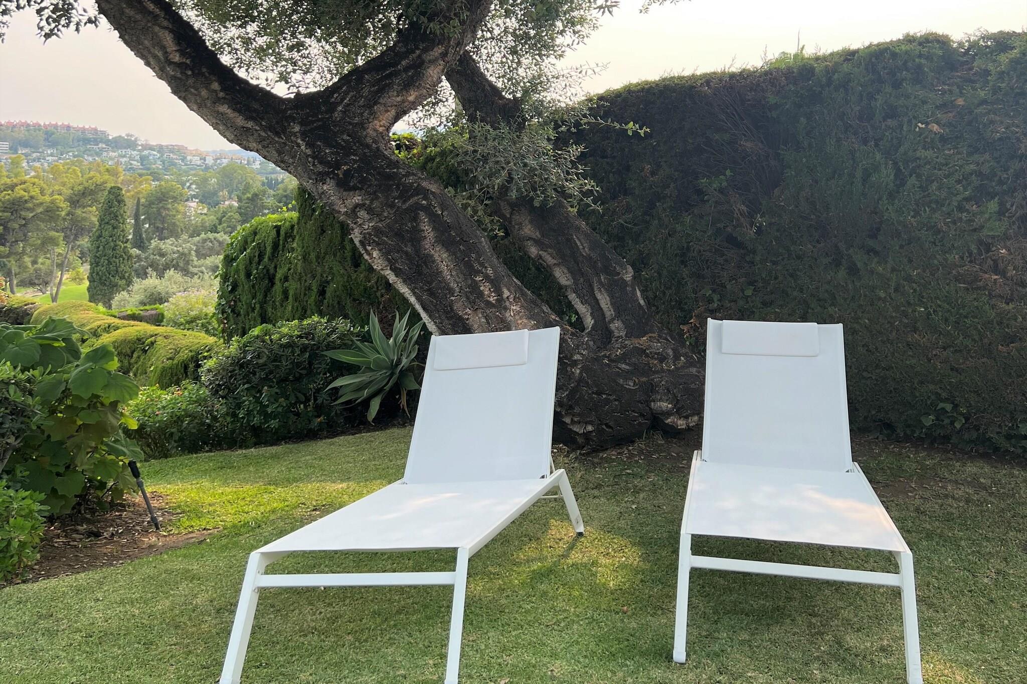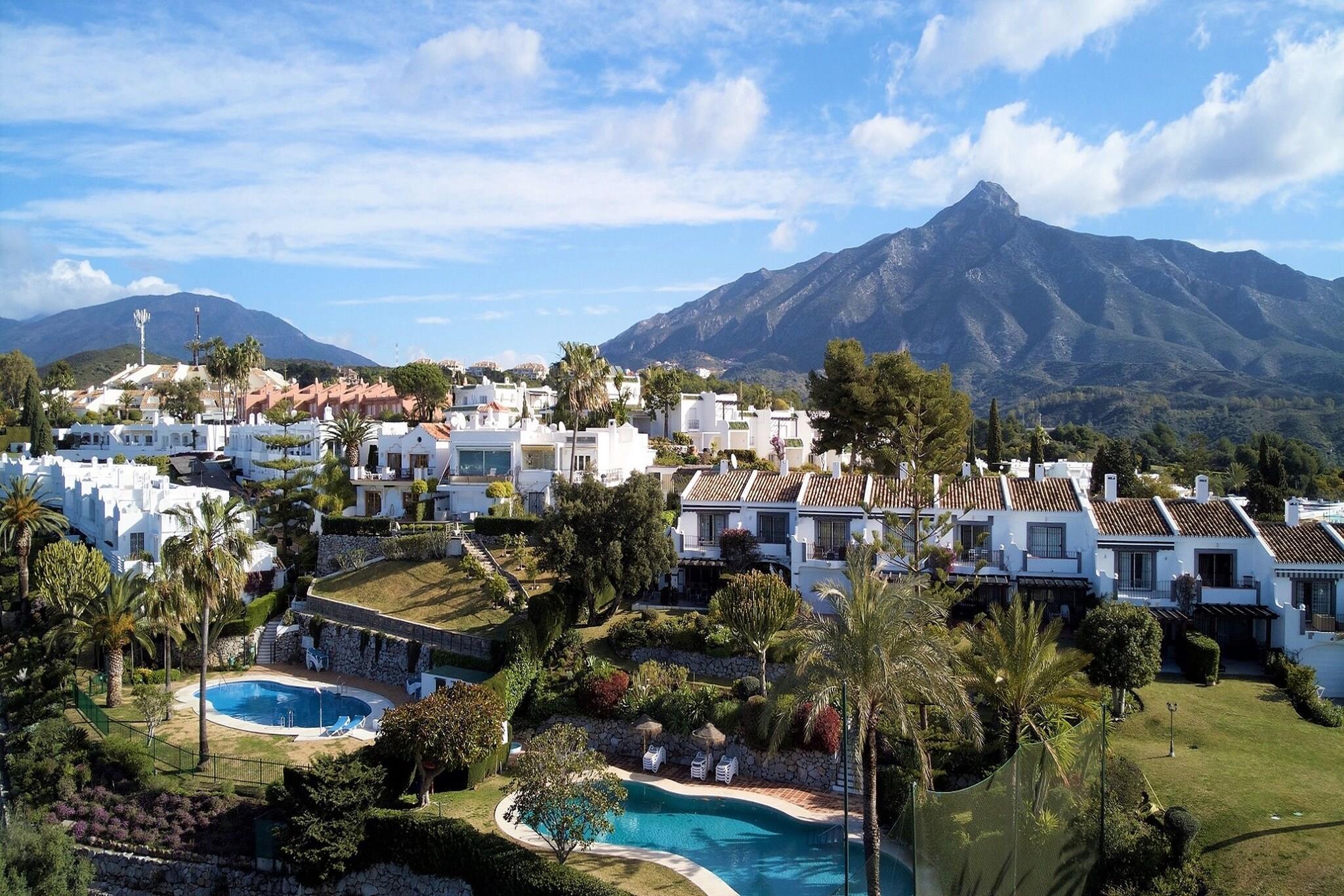 Dieses schöne Haus liegt in einer ruhigen und gehobenen Gegend von Marbella im Golf Valley, wo es 6 wunderschöne Golfplätze gibt. Es eignet sich sehr gut für einen erholsamen Urlaub mit der Familie oder zu zweit. Das Anwesen befindet sich auf dem Golfplatz des Aloha Golf Club in Nueva Andalucía. Sie können in der Region spazieren gehen und es gibt viele schöne Geschäfte in und um Marbella. Es gibt lokale Restaurants 5 Autominuten entfernt und den Strand und Puerta Banus erreichen Sie mit dem Auto oder Taxi in nur 10 Minuten. Die Altstadt von Marbella, Estepona und San Pedro sind alle nur eine kurze Autofahrt entfernt. Sie können die weißen Bergdörfer besuchen. Granada und Sevilla sowie das Skigebiet Sierra Nevada sind nur 2,5 Autostunden entfernt. Das Haus ist nach Süden ausgerichtet und verfügt über einen schönen Außenbereich mit einer großen Veranda mit Gartenmöbeln und einem Gasgrill, eine große Terrasse neben dem Hauptschlafzimmer mit Pool- und Bergblick und seitlichem Meerblick sowie einen privaten Eingang zum Innenhof. Es gibt einen gemeinsamen tropischen Garten und einen abgeschiedenen Swimmingpool sowie einen Tennisplatz. Hinweis: Die Urbanisationen sind extrem klein, nur 18 Häuser, sehr friedlich und ruhig, ohne Lärm. Aus Gründen der Ruhe ist dieses Haus daher nicht für junge Singles oder Gruppen geeignet.
