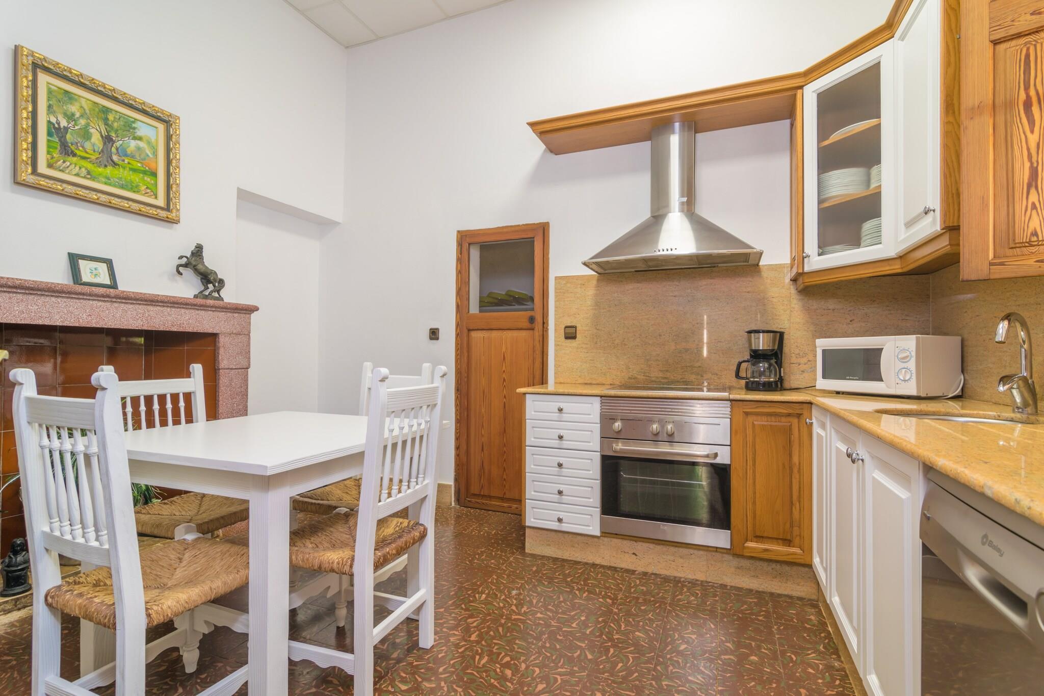Die Außenbereiche sind schön und gepflegt: ein 9x5 großer Pool mit Chlorwasser, eine möblierte Terrasse, zwei möblierte Veranden, ein Grillplatz und ein Holzoffen. Das 244m2 große Haus ist auf zwei Etagen verteilt und ist geschmackvoll in mallorquinischem Stil eingerichtet. Es gibt fünf Schlafzimmer: vier im Erdgeschoss (zwei mit Ehebetten und zwei mit Einzelbetten). Zwei Schlafzimmer davon sind klimatisiert und mit En-Suite Bad ausgestattet. Auf dem 1.Stock befindet sich ein klimatisiertes Doppelbett mit Ehebett mit En-Suite Bad. Zwei Schlafzimmer im Erdgeschoß erreicht man von draußen, sie haben keinen Zugang zu dem Innenbereich des Hauses. Außerdem, zwei Schlafzimmer sind mit einem Vorhang abgetrennt. Ein Babybett und ein Hochstuhl können auf Anfrage gestellt werden. Außer zwei En-Suite Badezimmer gibt es ein anderes Bad mit Dusche auf dem 1.Stock. Im gemütlichen klimatisierten Wohnzimmer kann man ruhige Stunden auf einem der drei Sofas verbringen, Sat-TV schauen oder im Internet (WLAN) surfen. Es gibt noch ein zweites Wohzimmmer. Das Esszimmer hat genug Platz für die Familie oder Gruppe von Freunden. Die Küche hat eine Essecke und ist vollausgestattet und bietet alle notwendigen Utensilien. Waschmaschine, Bügel und Bügelbrett sind auch vorhanden. Der Ort Maria de la Salut hat sich sein authentisches Flair über die Jahre bewahrt. Freitags findet der Wochenmarkt statt, wo man frische Lebensmittel aus der Region kaufen kann. Im Ortskern finden Sie Geschäfte, Cafés und Restaurants. In ca. 15 Minuten Autofahrt erreichen Sie den Strand Can Picafort, der für feinen Sandstrand bekannt ist. Im Sommer ist dort immer etwas los und man kann auch abends weggehen. Wassersportarten und Bootsausflüge werden ebenfalls angebote. Wenn Sie es lieber etwas ruhiger mögen, empfehlen wir Ihnen den Sandstrand Playa de Muro, die Bucht Cala Torta und S’Arenalet des Verger. Eventuelle Nebenkosten müssen beim Anbieter nachgefragt werden. Haustiere sind verboten. Partys oder ähnliche Veranstaltungen sind nicht gestattet. Entfernungen Strand: 15 km - Can Picafort Flughafen: 40.5 km - Son Sant Joan Golfplatz: 17.9 km - Reserva Rotana Ortsmitte: 0.17 km - Maria de la Salut Bahnhof: 7.7 km - Petra Bushaltestelle: 0.4 km - Carrer Jaume Bergas, Maria de la Salut Fähre: 23.8 km - Port d'Alcúdia Krankenhaus: 16.4 km - Hospital Comarcal d'Inca Touristen Lizenz: ETV/5877Einheitsregister: ESFCTU00000701100020922800000000000000000000ETV/58777Bei der Anreise muss die Ecotasa (Touristensteuer der Balearen) bar bezahlt werden. Der zu zahlende Betrag beträgt zwischen 0.55EURO pro Nacht und Gast in der Nebensaison und 2.2EURO pro Nacht und Gast in der Hochsaison. Ab dem 9. Tag reduziert sich die Steuer um die Hälfte. Personen unter 16 Jahren sind davon ausgenommen.Die Kaution ist bei Ankuuft direkt an den Eigentümer zu übergeben. Stromverbrauch (Jan - Dezember): 0.35 EUR/Kw (obligatorisch)
