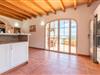 Vom Pool oder der Terrasse gelangt man über mehrere bodentiefe Fenster in das Innere des Hauses. Der großzügige Küchenbereich liegt hinter großen Fensterelementen, deren bogenförmige Formen an einen Weidenkorbgriff erinnern und den Raum mit angenehmer Helligkeit durchfluten. Die Küche verfügt über zahlreiche Schränke und eine Theke im amerikanischen Stil mit mehr als ausreichend Stauraum. Die 3 farbigen Hocker unterstreichen den modernen und offenen Charakter dieses Bereichs. Unter „vollmöbliert“ versteht man nicht nur die fest installierten Elektrogeräte wie Backofen, Mikrowelle, große Kühl-Gefrierkombination und Herd, sondern auch Mixer, Kaffeemaschine, Toaster, Wasserkocher und vieles mehr. Der Wohnbereich mit den braunen Bodenfliesen und bequemen Sofas rundet seine gemütliche Atmosphäre mit Hilfe eines Kamins ab. Die Schlafzimmer sind alle modern eingerichtet, verfügen über bequeme Betten und sind teilweise mit hochwertigen Mustertapeten geschmückt. Von einigen Schlafzimmern im ersten Stock gelangen Sie auf den großen Balkon, den Sie bei Sonnenuntergang unbedingt nutzen müssen, um bei einem guten Glas mallorquinischem Rotwein die Stille und den herrlichen Naturblick zu genießen. Es stehen 4 moderne Badezimmer, teilweise mit Eckbadewanne oder Dusche, zur Verfügung, wobei 2 Badezimmer en-suite sind.