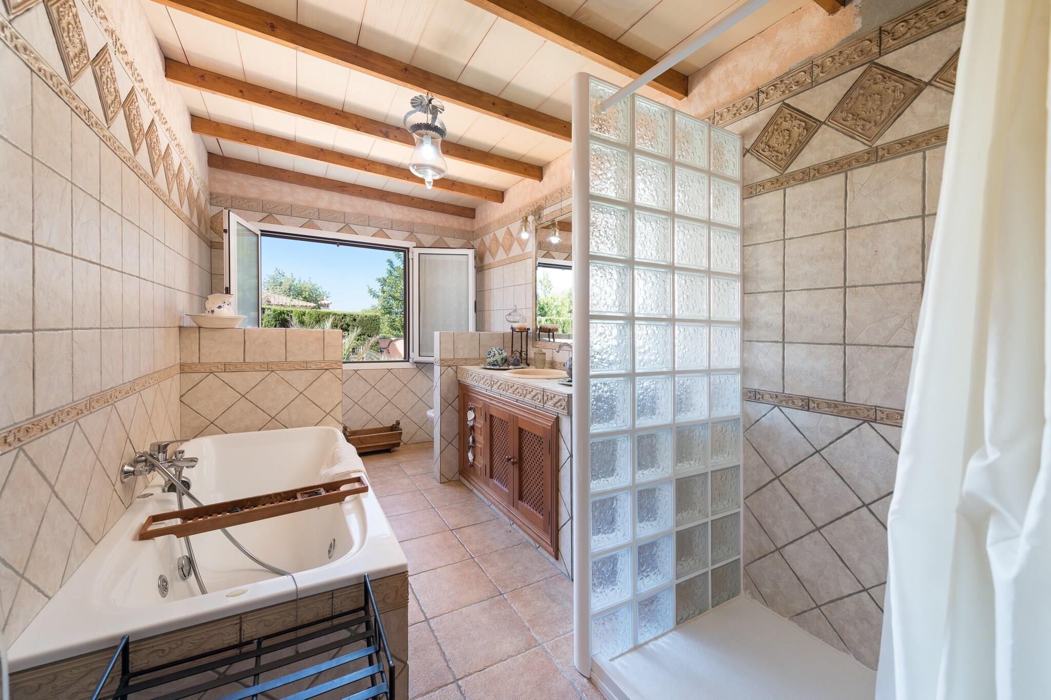 Zur Außenanlage gehört der 10 x 5 m große Privatpool, der zu einem erfrischenden Bad einlädt. Er ist zwischen 0,8 m und 2,2 m tief und wird mit Chlor gereinigt. Die Veranda befindet sich neben dem Schwimmbad und ist ideal für einen Grillabend mit Freunden oder zum relaxen. Der private Tennisplatz sorgt für sportliches Vergnügen. Zwei Schläger und ein Ball sind vorhanden. Die Kinder können sich im Garten austoben. Das Haus von 250 m2 auf zwei Etagen verteilt, hat vier Schlafzimmer, drei im Erdgeschoss, zwei mit Doppelbetten, eines davon mit Klimaanlage, und eines mit einem Rollbett für 2 Personen; und ein im ersten Stock mit einem Doppelbett und mit Klimaanlage ausgestattet. Ein Kinderbett und ein Hochstuhl sind vorhanden. Es gibt drei Badezimmer, die das ganze Haus versorgen, eines mit Dusche und Badewanne, beide mit Hydromassage, während die anderen beiden Duschen haben. Die Wohnküche ist eine Mischung aus rustikalen und modernen Elementen. Sie verfügt über 1 Sofa, TV-Sat und Klimaanlage. Das Esszimmer hat 1 Tisch mit Stühlen. Die Küche, im gleichen Raum und Induktion, hat alle notwendigen Utensilien zum Kochen ohne Probleme. Es gibt eine Waschmaschine, Bügeleisen und Bügelbrett. Es gibt 5 elektrische Heizkörper. Der Ort Marratxí ist wegen der Nähe zu Palma ein gutes Feriendomizil. Im Ortskern finden Sie alles Notwendige, um sich selbst zu versorgen. Nach Palma gelangt man entweder mit dem Auto oder mit der Bahn. Palma de Mallorca verbindet gekonnt südliches Flair mit Moderne und so finden Sie Galerien, Restaurants, historische Bauwerke und Boutiquen nebeneinander. Besuchen Sie die Kathedrale von Palma, den Almudaina-Palast, das Baluard-Museum der Modernen Kunst, den Hafen oder das Schloss Bellver mit Blick auf die Bucht von Palma. Abends kann man im Santa Catalina Viertel hervorragend essen und ausgehen. Etwas außerhalb der Stadt gibt es verschiedene Themenparks, u.a. Aqualand, Westernpark und Katmandu. Der Süden Mallorcas hält auch viele schöne Strände bereit, u.a. Playa de Palma, Can Pastilla, Cala Blava oder Portals Nous. Der Kamin kann nicht benutzt werden. Falls Sie den Hausmüll nicht beim Check-out entsorgen, wird eine Gebühr von 100 EUR von der Kaution abgezogen. Hinweis: Diese Unterkunft richtet sich an Familien und Gäste über 25 Jahre, die einen ruhigen Aufenthalt suchen. Buchungen für Partys oder Feiern werden nicht akzeptiert. Eine Kopie des Ausweisdokuments aller Gäste ist erforderlich, um die Reservierung zu bestätigen. Eventuelle Nebenkosten müssen beim Anbieter nachgefragt werden. Haustiere sind verboten. Partys oder ähnliche Veranstaltungen sind nicht gestattet. Entfernungen Strand: 11 km - Palma Flughafen: 13.5 km - Son Sant Joan Golfplatz: 6 km - Son Termes Ortsmitte: 7 km - Marratxi Bahnhof: 10 km - Marratxí Bushaltestelle: 0.20 km - Camí de Son Sales, Garrovers Fähre: 15 km - Port Palma Krankenhaus: 6 km - Son Espases Touristen Lizenz: ETV/7578Einheitsregister: ESFCTU00000702500019343200000000000000000000ETV/75785Bei der Anreise muss die Ecotasa (Touristensteuer der Balearen) bar bezahlt werden. Der zu zahlende Betrag beträgt zwischen 0.55EURO pro Nacht und Gast in der Nebensaison und 2.2EURO pro Nacht und Gast in der Hochsaison. Ab dem 9. Tag reduziert sich die Steuer um die Hälfte. Personen unter 16 Jahren sind davon ausgenommen.Die Kaution ist bei Ankuuft direkt an den Eigentümer zu übergeben. Stromverbrauch (Jan - Dezember): 0.35 EUR/Kw (obligatorisch)