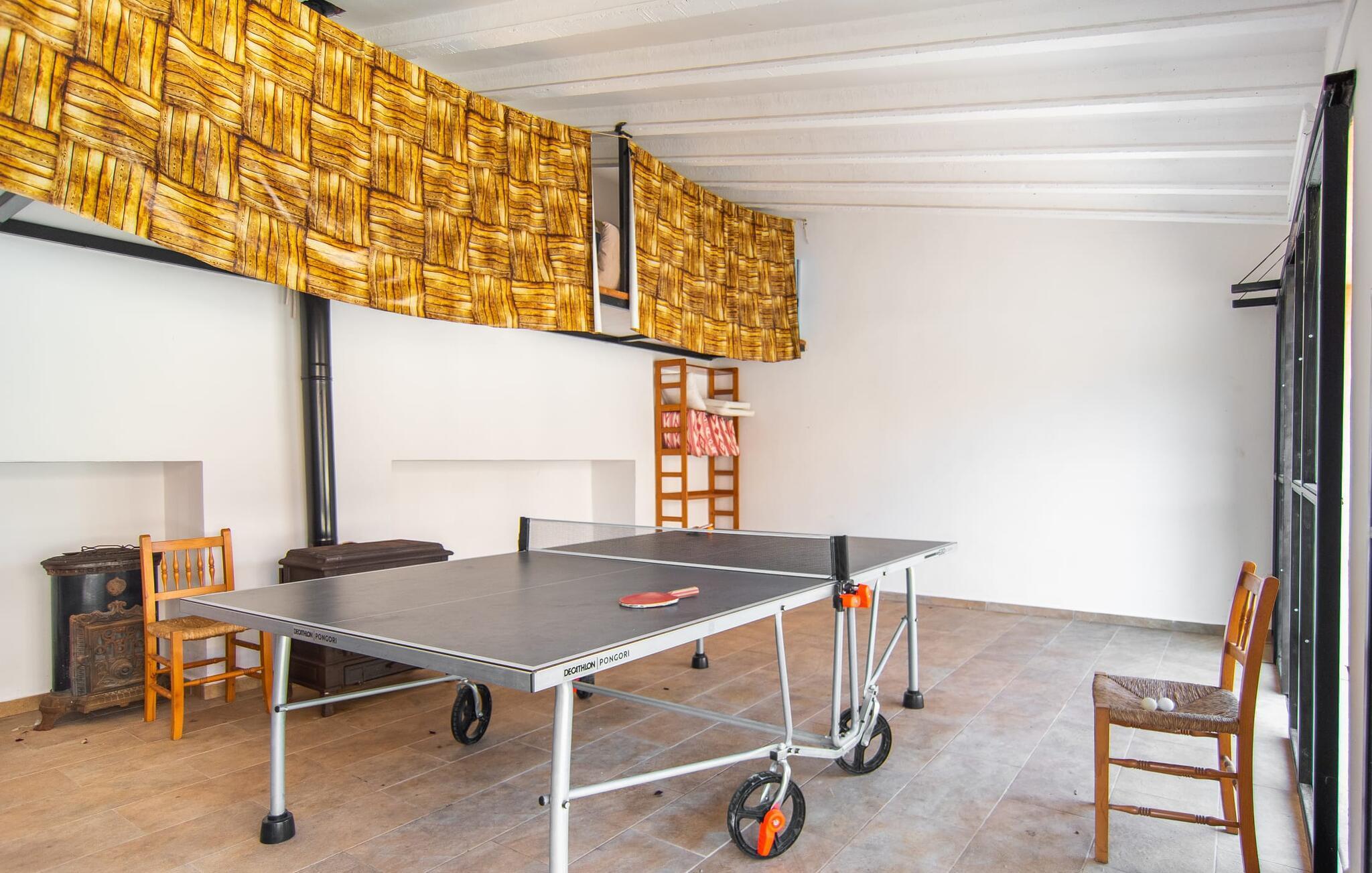 „Martijoan“ ist ein Paradebeispiel für ein privates mallorquinisches Landhaus. Unsere Luftaufnahmen heben die Lage am „Campo“ hervor, auch wenn man im Hintergrund bereits die Skyline von Manacor sieht. Das Gebiet wird von landwirtschaftlich genutzten Flächen dominiert, die zusammen mit dem schönen Garten den Charme der Villa ausmachen. Machen Sie einen gemütlichen Spaziergang über das Anwesen, wo Sie sowohl im Garten als auch im Haus attraktive Sitzgelegenheiten finden. Schattige Terrassen mit Tagesbett, Frühstücksplätze für Ihren Morgenkaffee, Bambus- oder Stoffsonnenschirme mit coolen Möbeln, ein Essbereich auf der Veranda, eine Sitzgruppe auf dem Balkon im Obergeschoss, die gemütliche Ecke im Garten davor Teich – das sind nur einige der Bereiche, die es zu entdecken lohnt und die vor allem Ihre Kinder begeistern werden. Neben der Entdeckungstour im freien Gelände steht für Groß und Klein eine Art Fitness- und Spieleraum in der Garage zur Verfügung. Auch bei einem Fußballspiel gibt es Tore und einem Tischtennis- oder Kickerturnier steht nichts mehr im Wege. Zwei weitere Highlights müssen noch erwähnt werden: der große Pool und die überdachte Außenküche mit Grill und Backofen. Der Pool ist in eine Terrasse eingebettet, die mit Sonnenliegen und einer Chill-Lounge aus Korbmöbeln ausgestattet ist. Besonders praktisch ist die Outdoor-Toilette, da Sie so Ihre Aktivitäten nicht zu lange unterbrechen müssen. In der Sommerküche können Sie ein Barbecue aus frischem Fisch, Fleisch und Gemüse zubereiten und so die geschmacksintensiven Produkte genießen, die Mallorca zu bieten hat.