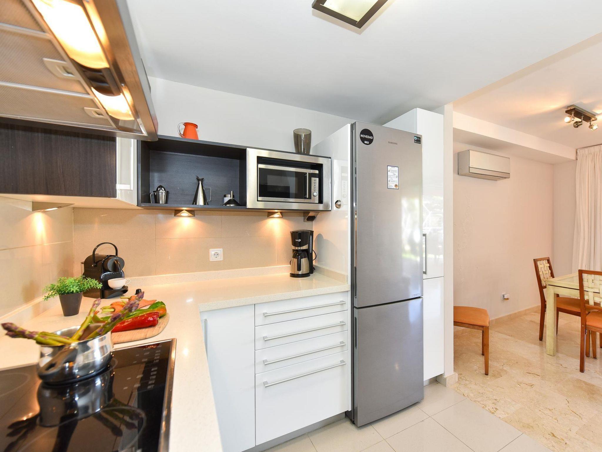 "Tipo Nº6", 3-Zimmer-Haus 105 m2 auf 2 Stockwerken. Komfortabel und modern eingerichtet: Wohn-/Esszimmer mit Esstisch, Sat-TV, Digital-TV, Stereoanlage, DVD und Klimaanlage. Ausgang zum Gartensitzplatz, zum Schwimmbad. 1 Zimmer mit 1 franz. Bett, Bad/Bidet/WC und Klimaanlage. Ausgang zum Garten, zum Schwimmbad. Offene Küche (Backofen, Geschirrspüler, 4 Glaskeramikplatten, Toaster, Wasserkocher, Mikrowelle, Tiefkühler, elektrische Kaffeemaschine). Obergeschoss: 1 Zimmer mit 2 Betten, Bad/WC und Klimaanlage. Ausgang zur Terrasse. Gartensitzplatz. Terrassenmöbel, Gartengrill, Liegestühle. Sicht auf die Berge und den Garten. Zur Verfügung: Waschmaschine, Wäschetrockner, Safe, Bügeleisen, Kinderhochstuhl, Babybett bis 2 Jahre, Haartrockner. Internet (WLAN, gratis). Parkplatz (1 Auto). Bitte beachten: Nichtraucher-Haus. Maximal 1 Haustier/Hund erlaubt. 2017/263 // Reg. Nr.: ESFCTU0000350120003181590000000000000VV-35-1-00003180