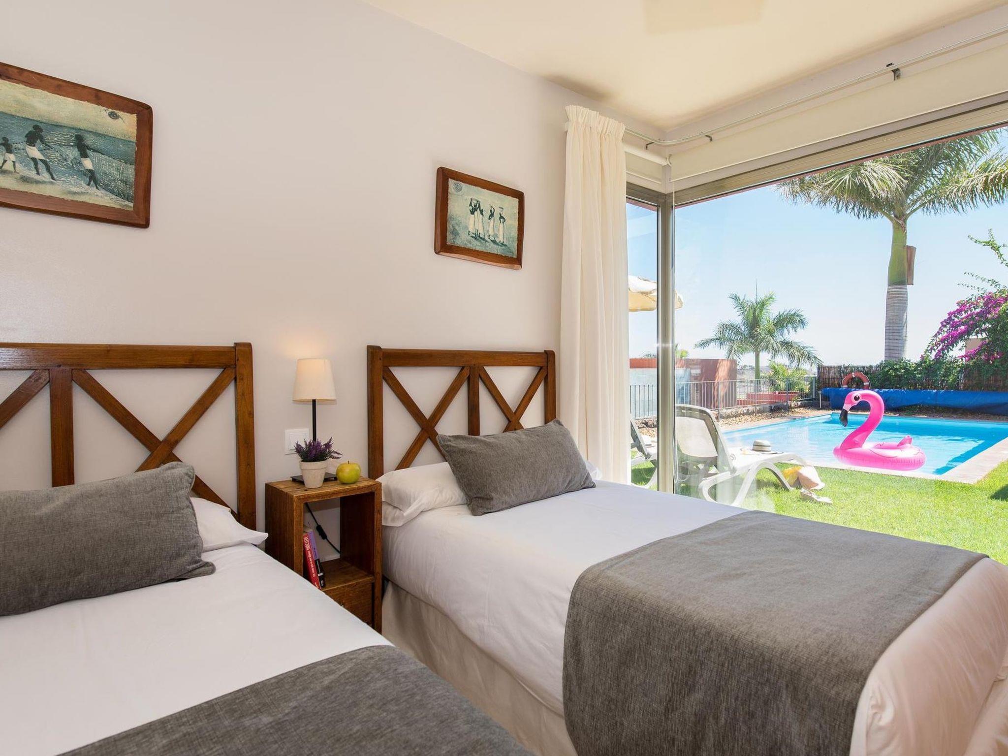 Moderne, komfortable Villa "Par4 Villa 17". Im Ortszentrum von Salobre Golf Resort, am Ortsrand Maspalomas 5 km, ausserhalb des Ortes Meloneras 7 km, ruhige, sonnige, erhöhte Lage in einem Wohnquartier. Zur Alleinbenutzung: Garten (eingezäunt) mit Rasen 80 m2, Schwimmbad eckig (8 x 4 m, 140 - 140 cm tief, saisonale Verfügbarkeit: 01.Jan. - 31.Dez.). Grill, Parkplatz auf dem Grundstück, öffentliche Parkplätze auf der Strasse. Einkaufsgeschäft 4 km, Supermarkt 3 km, Restaurant 200 m, Bushaltestelle "Las Crucitas" 19 km, Sandstrand 3 km. Golfplatz (18 Loch) 500 m. Bitte beachten: Fahrzeug empfohlen. Der Besitzer akzeptiert keine Jugendgruppen. Flugplatz 25 km vom Haus. Die Nachbarschaft ist sehr lärmempfindlich. Ruhe und gutes Benehmen wird erwartet.
